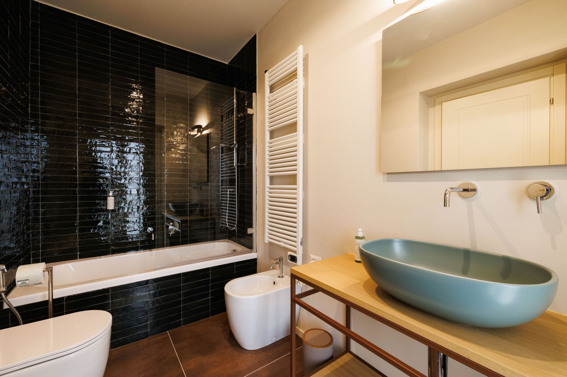 Slaapkamer met badkamer 7: tweepersoonsbed, twee eenpersoonsbedden, WIFI internet, airconditioning, wastafel, toilet , bidet, douche, haardroger, vide.