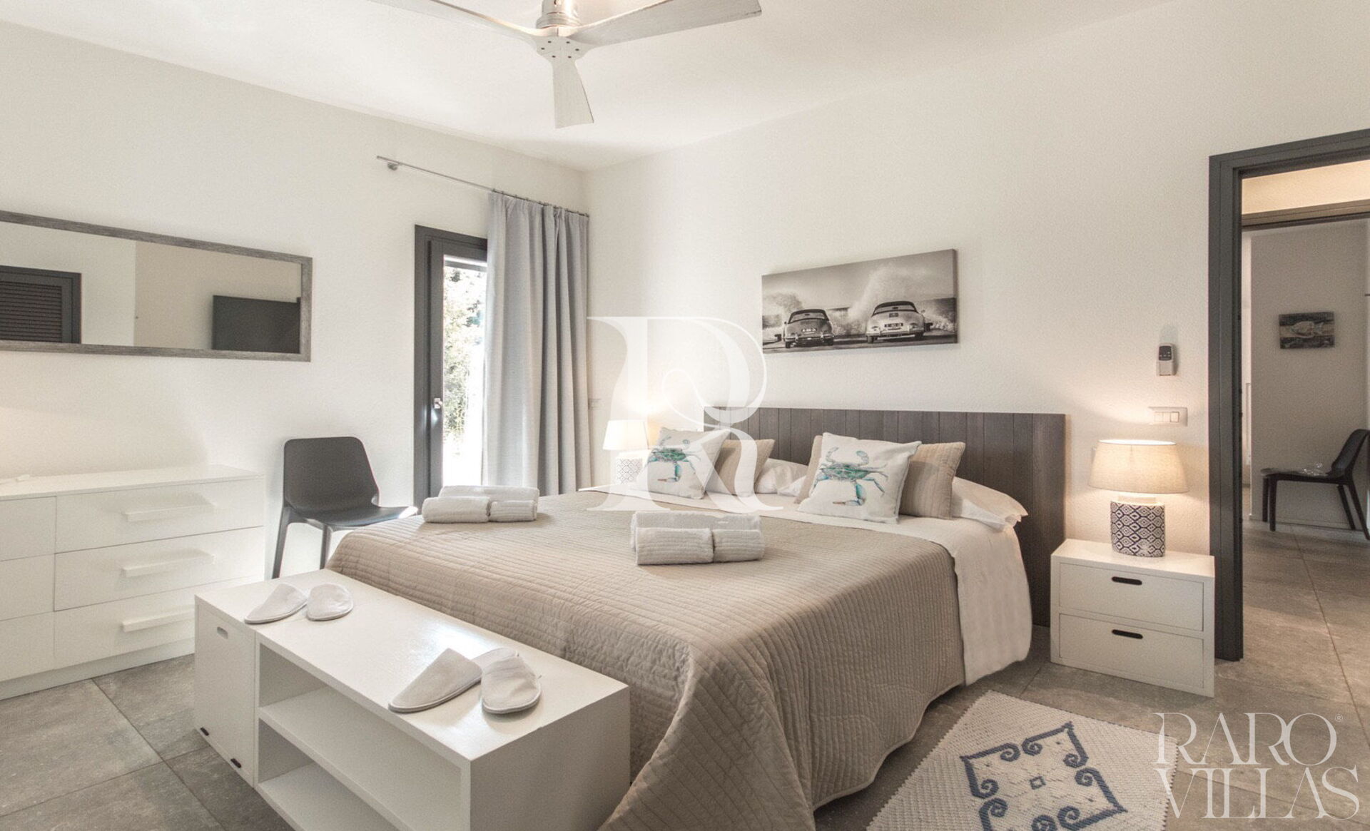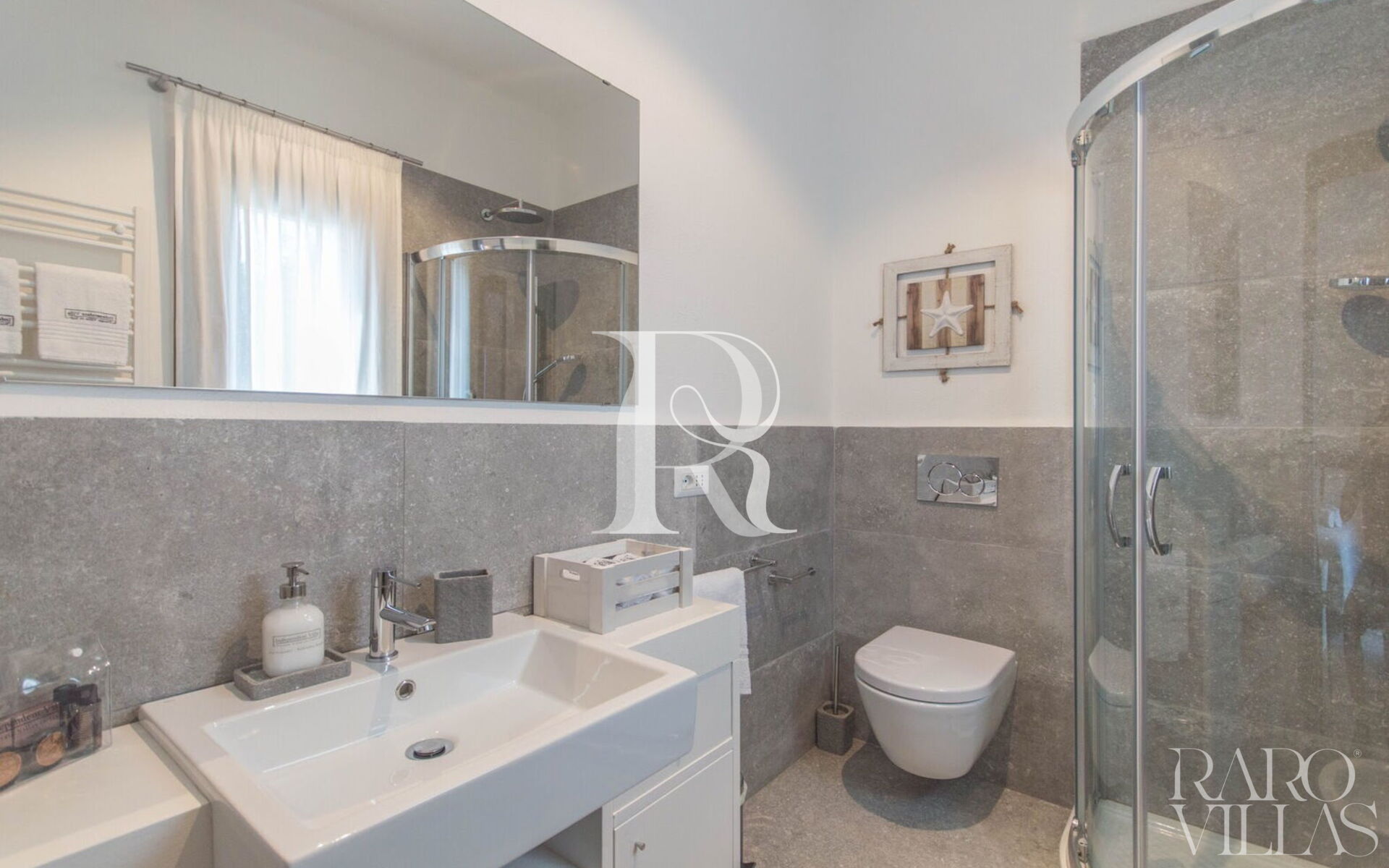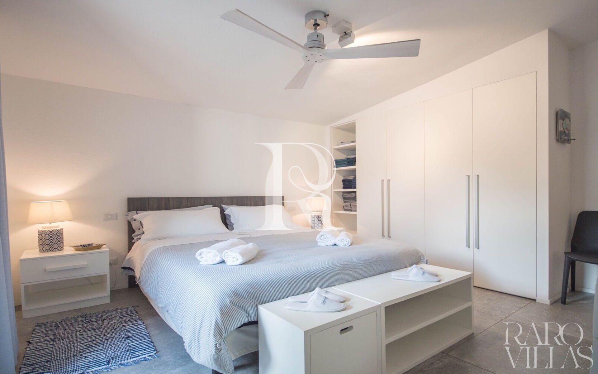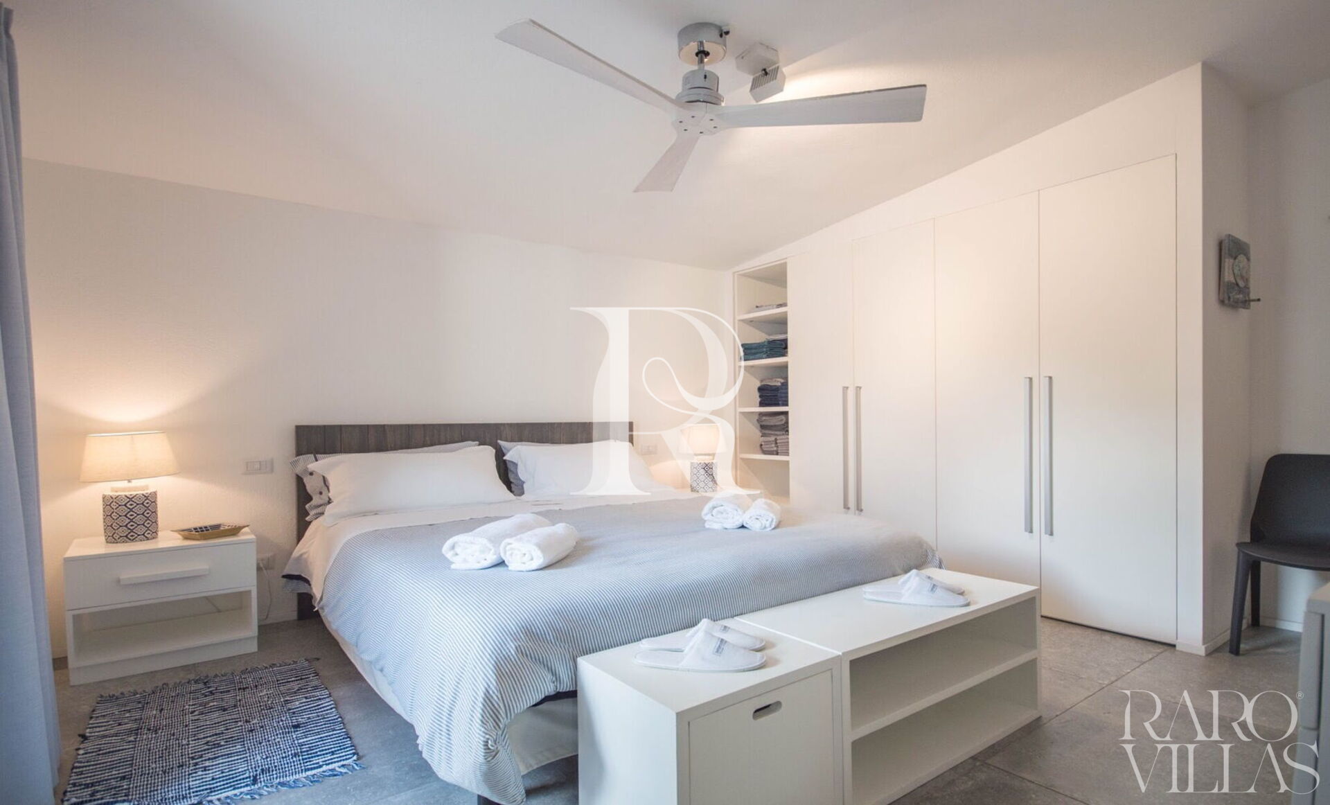 The layout of Villa Orione has been thoughtfully designed to maximize comfort and functionality. The villa features two elegant double bedrooms and two bathrooms with showers, one of which is ensuite in the master bedroom. The spacious open-plan living area welcomes guests into a modern and refined setting, complemented by a fully equipped kitchen that seamlessly blends design and practicality.