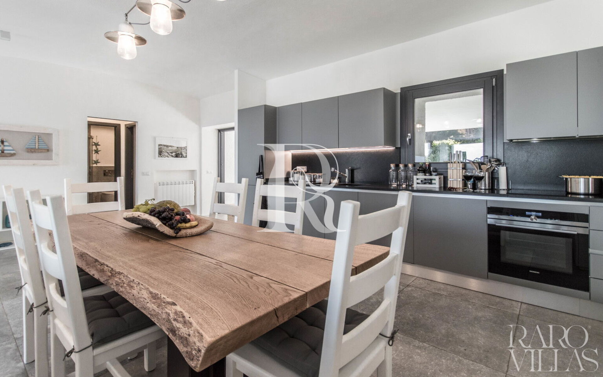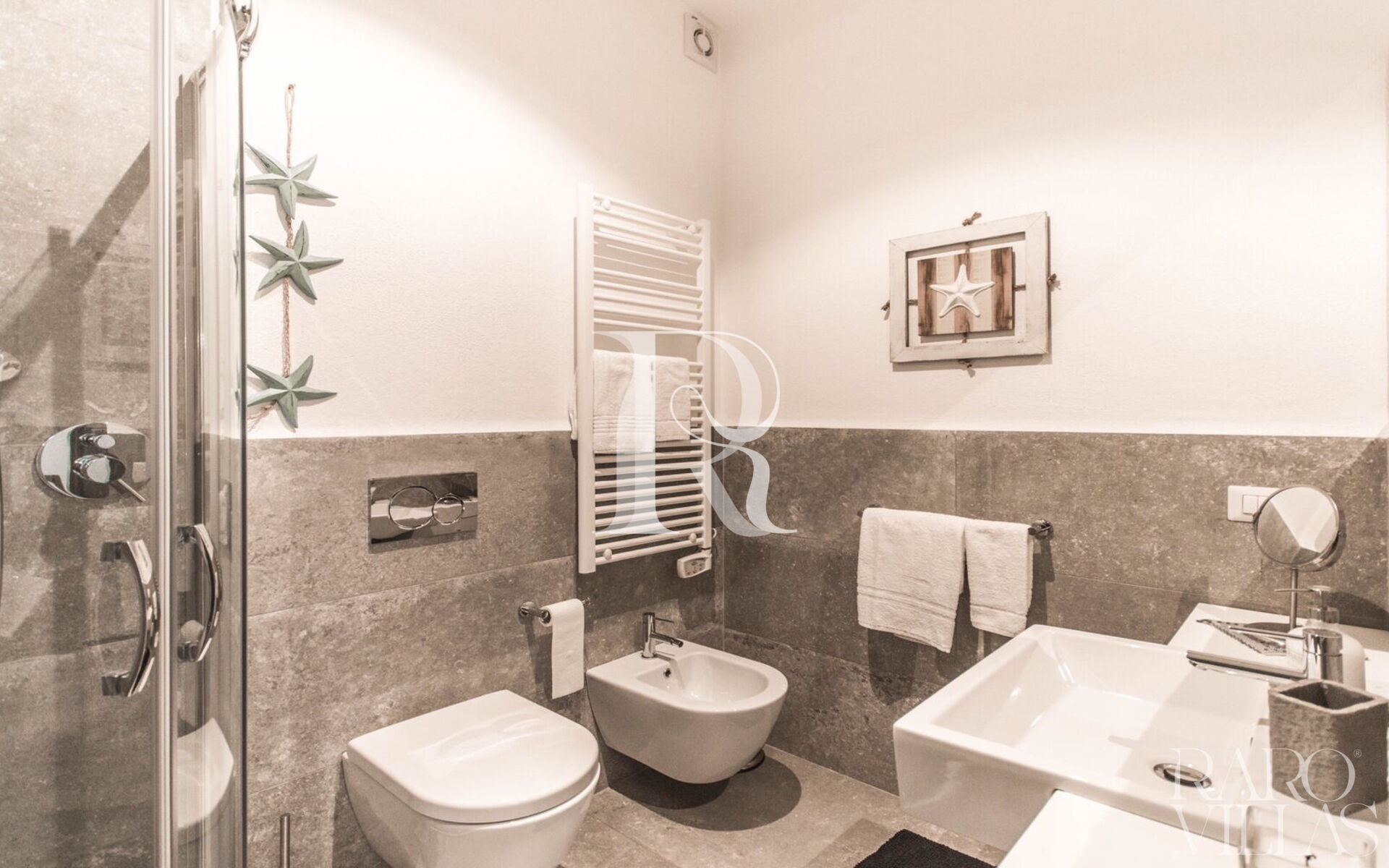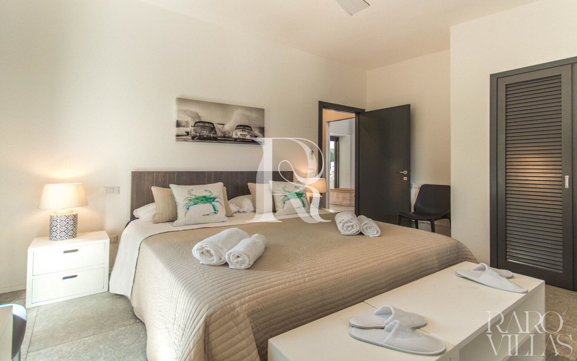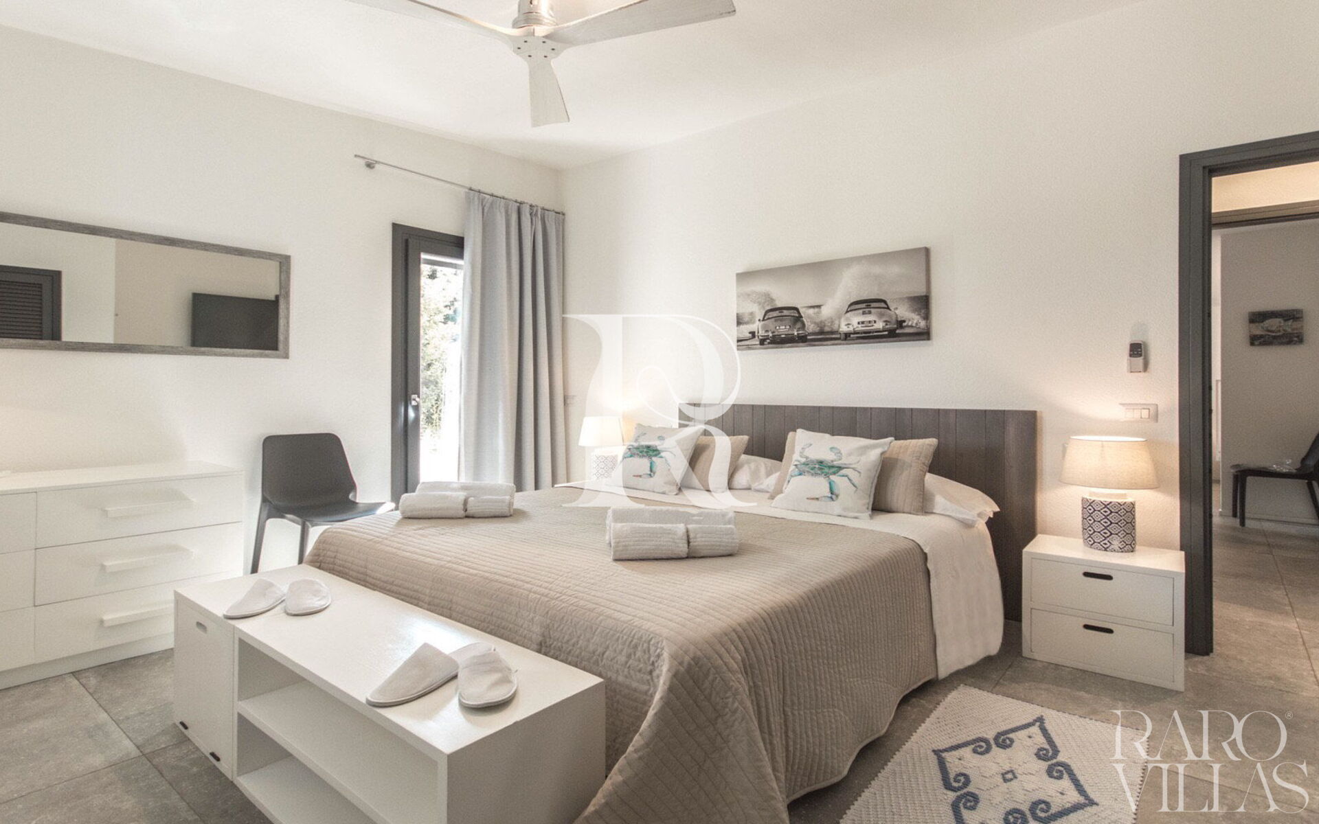 The layout of Villa Orione has been thoughtfully designed to maximize comfort and functionality. The villa features two elegant double bedrooms and two bathrooms with showers, one of which is ensuite in the master bedroom. The spacious open-plan living area welcomes guests into a modern and refined setting, complemented by a fully equipped kitchen that seamlessly blends design and practicality.