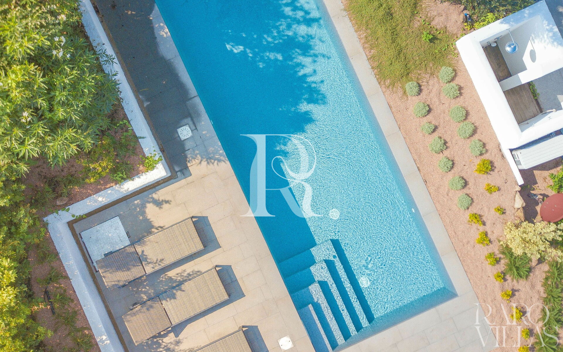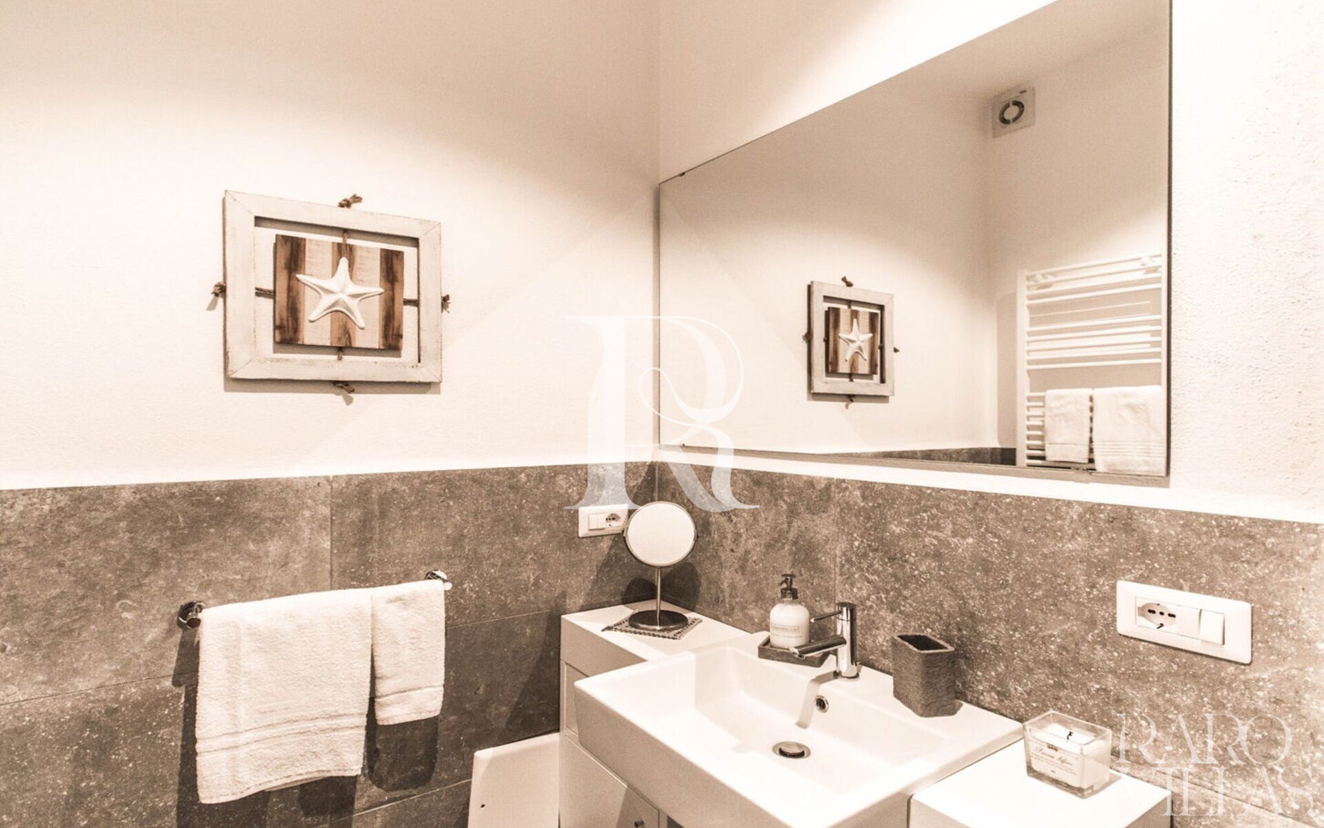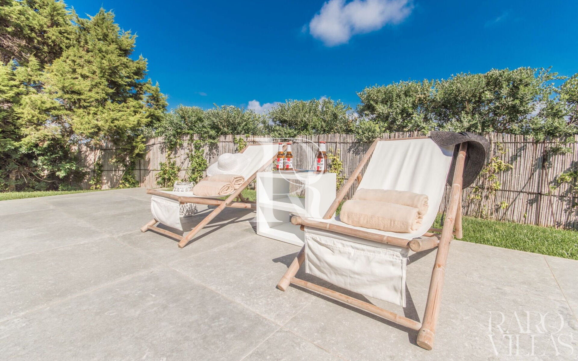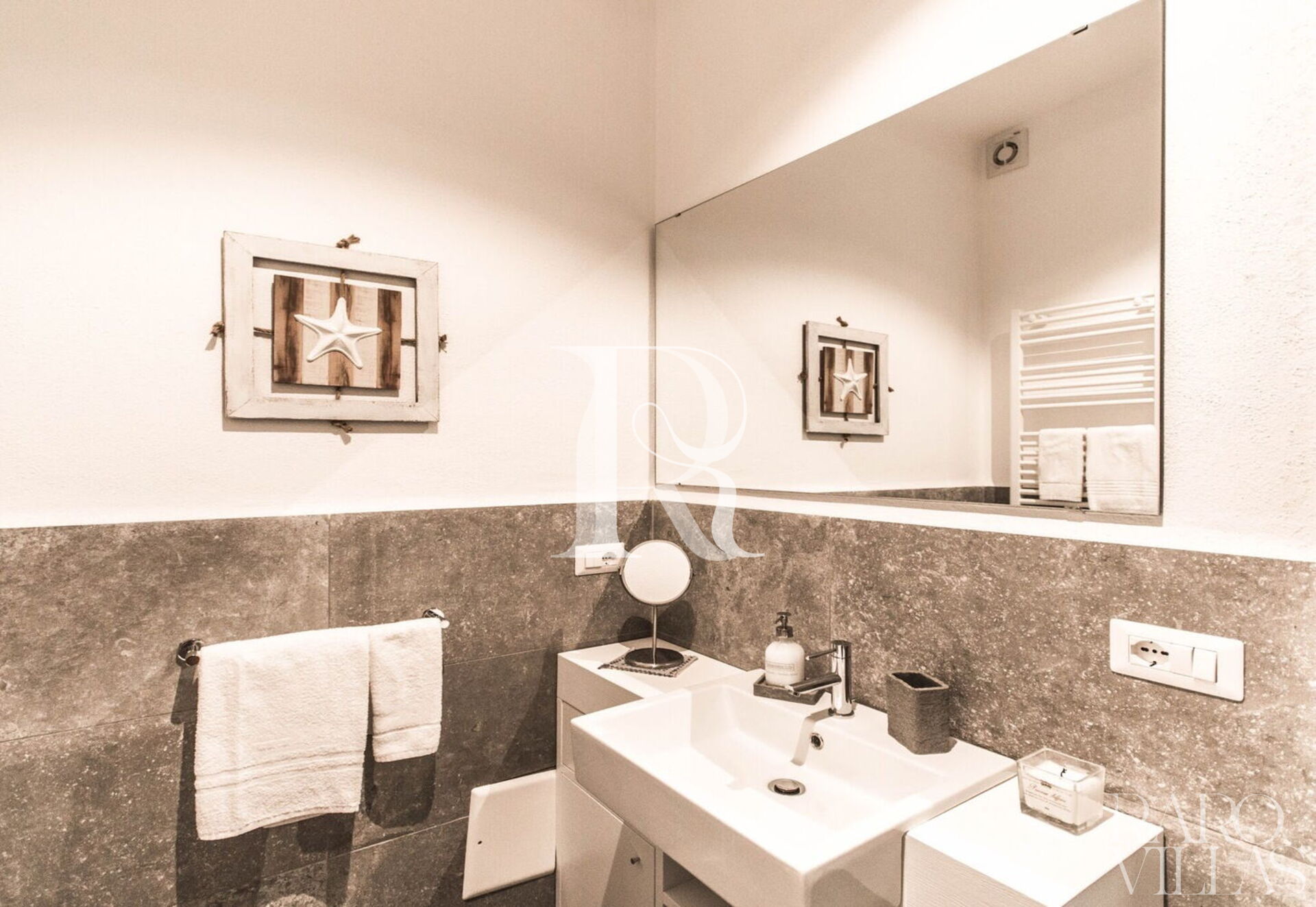 The layout of Villa Orione has been thoughtfully designed to maximize comfort and functionality. The villa features two elegant double bedrooms and two bathrooms with showers, one of which is ensuite in the master bedroom. The spacious open-plan living area welcomes guests into a modern and refined setting, complemented by a fully equipped kitchen that seamlessly blends design and practicality.