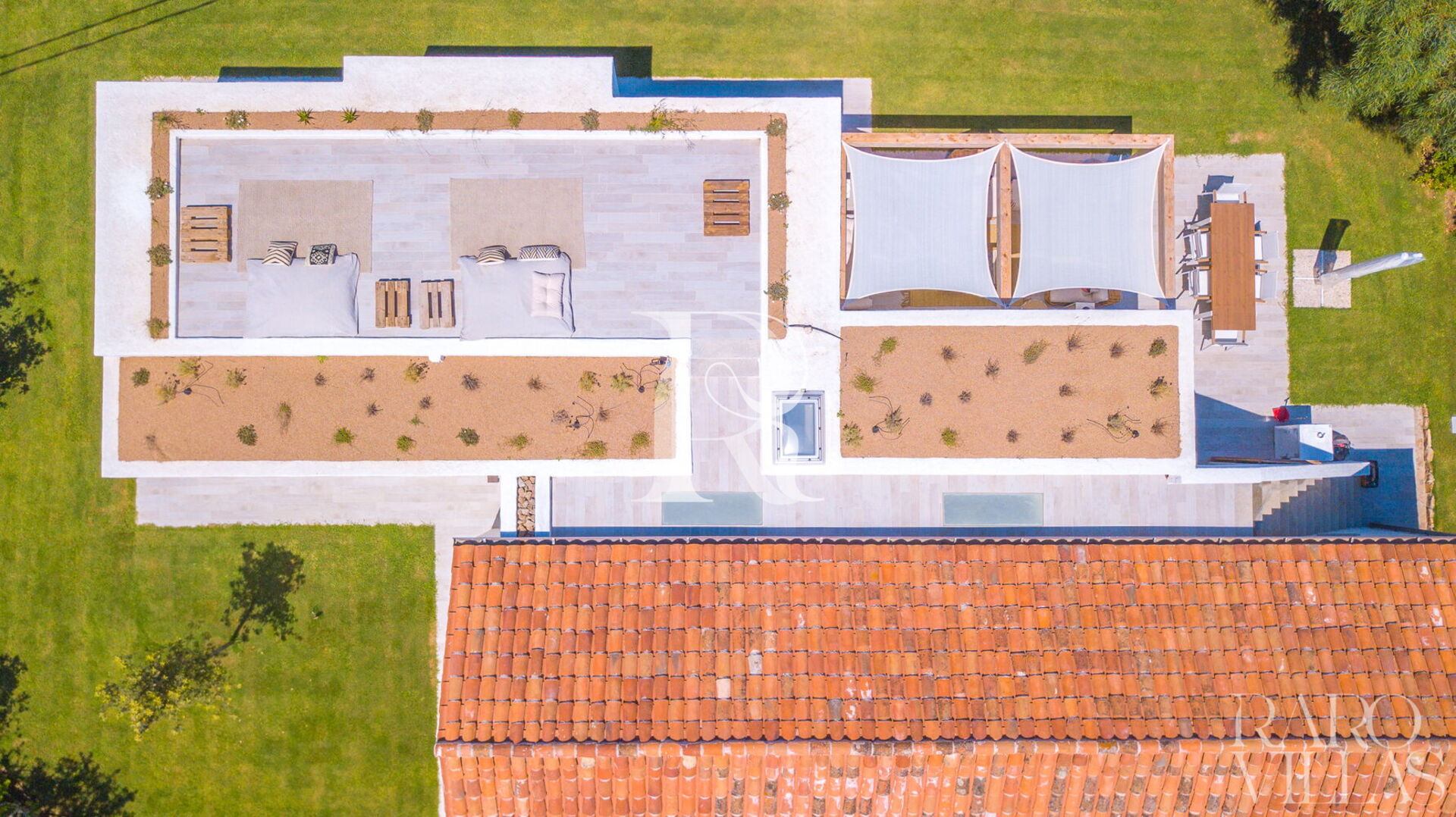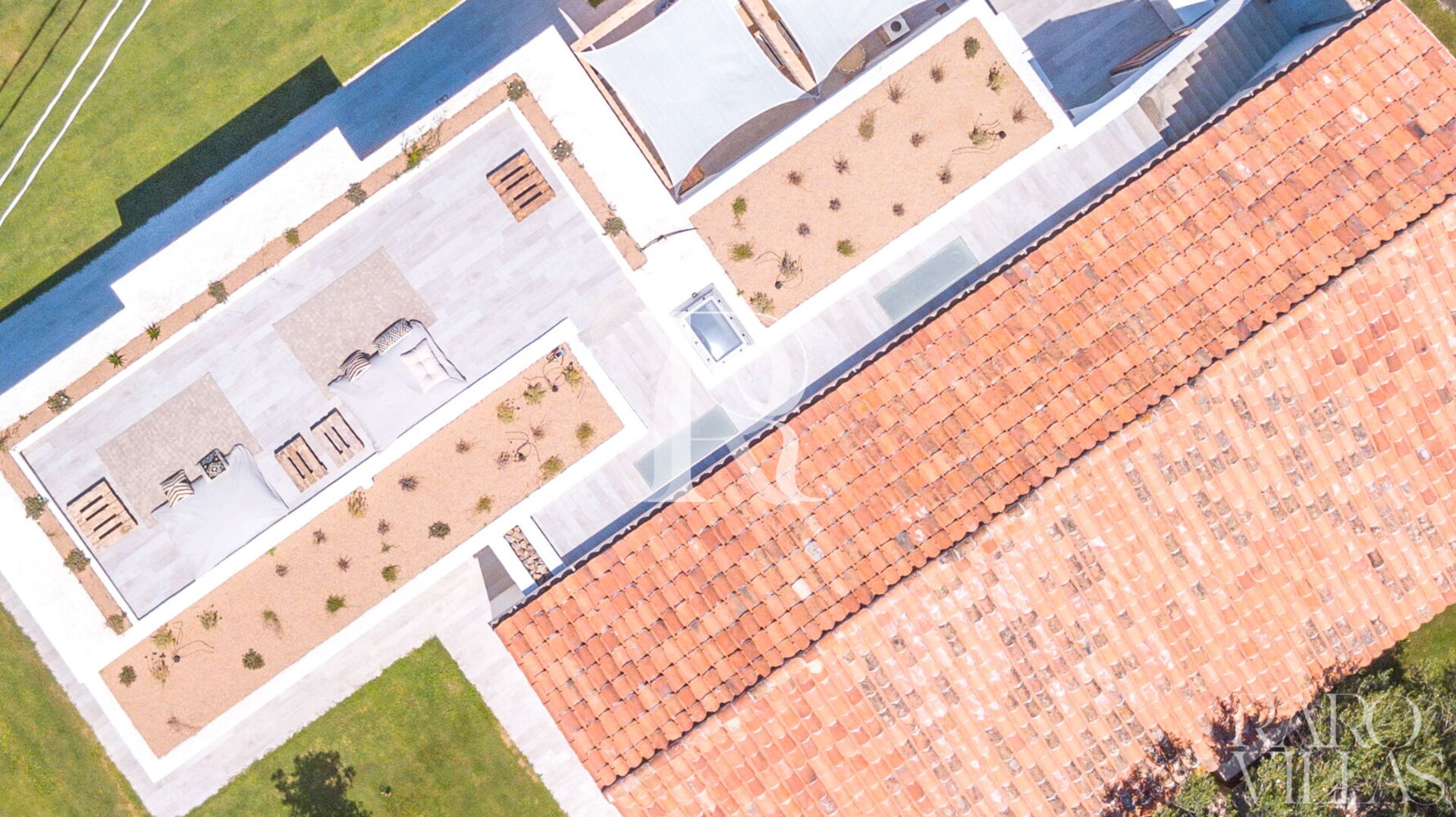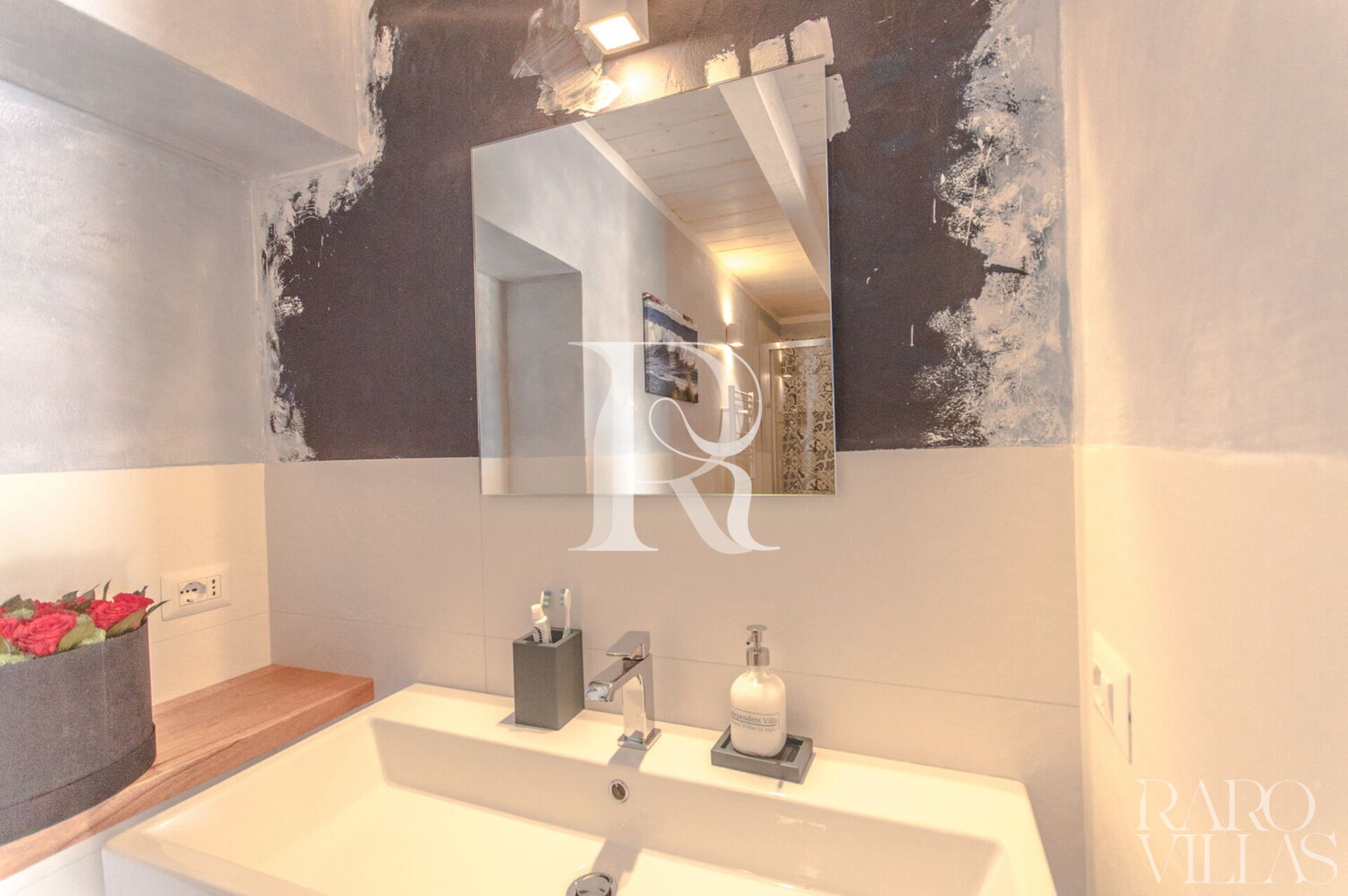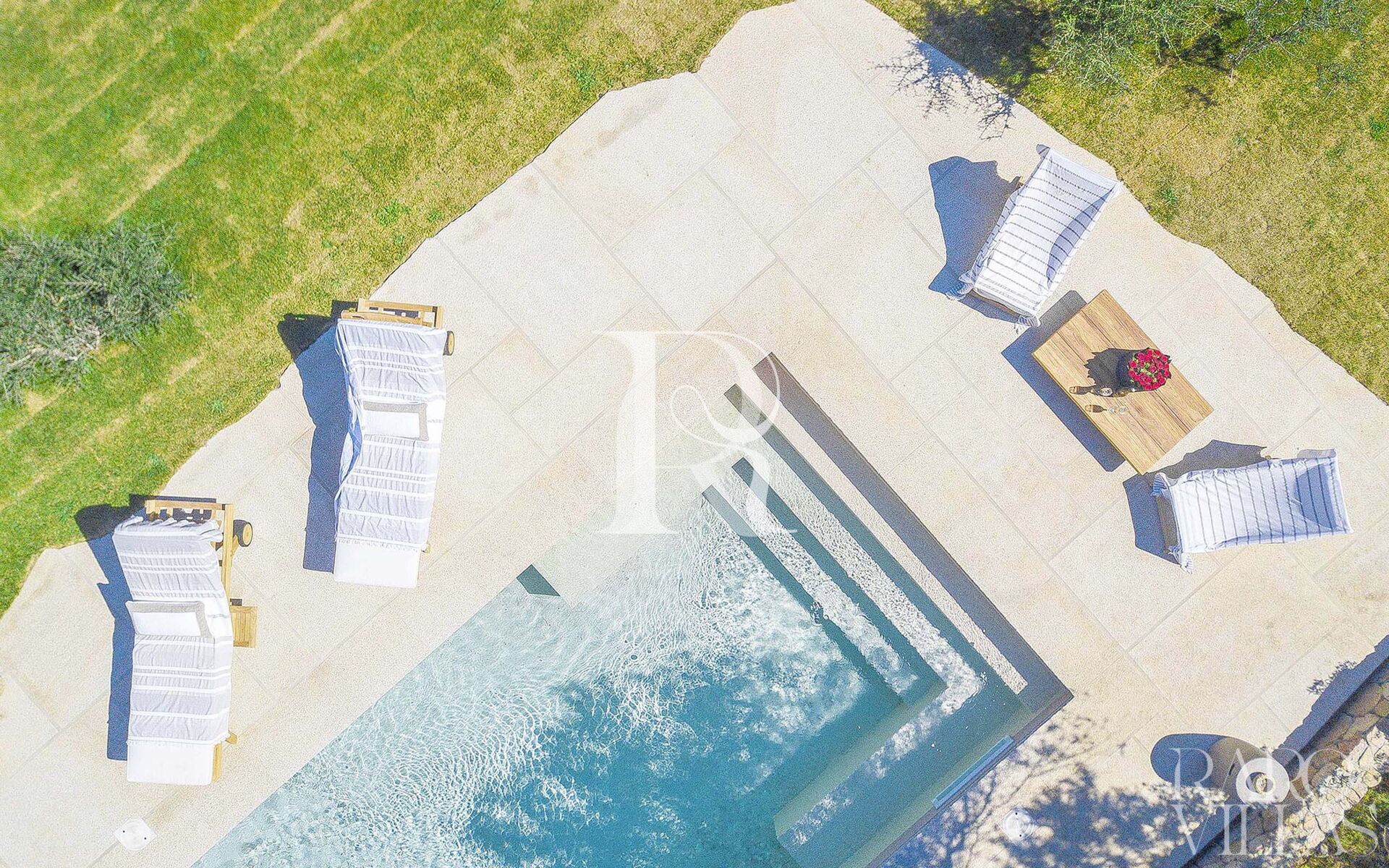 The five bedrooms, all air-conditioned and with direct access to the garden-pool, have a luxurious design. Three of them are double and have en suite bathrooms with shower, while a double bedroom offers an external bathroom with shower, which also serves the living area.