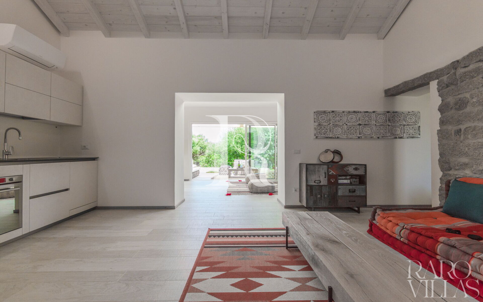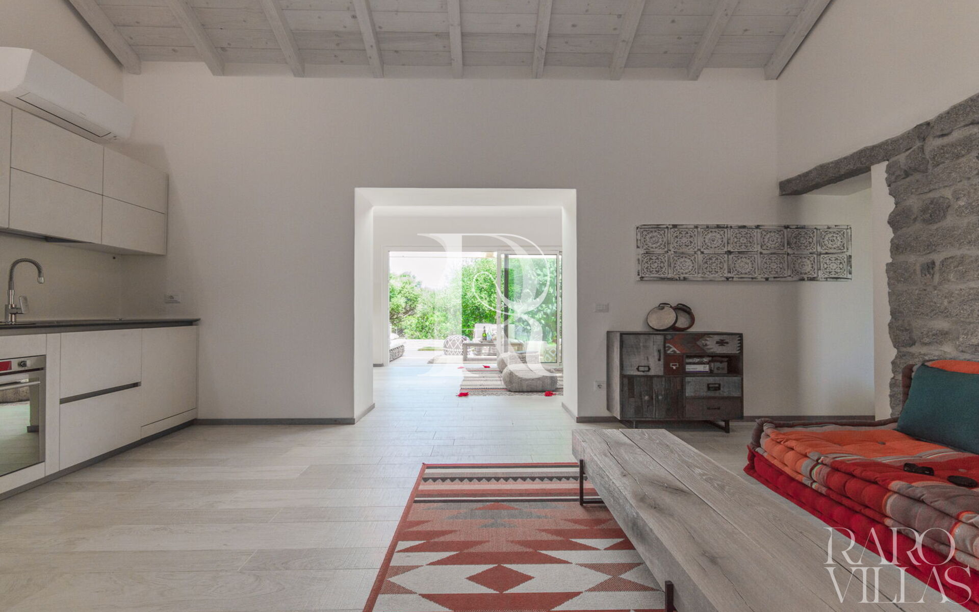 The villa, characterized by a bright living room, has two independent kitchens fully equipped with high quality appliances.