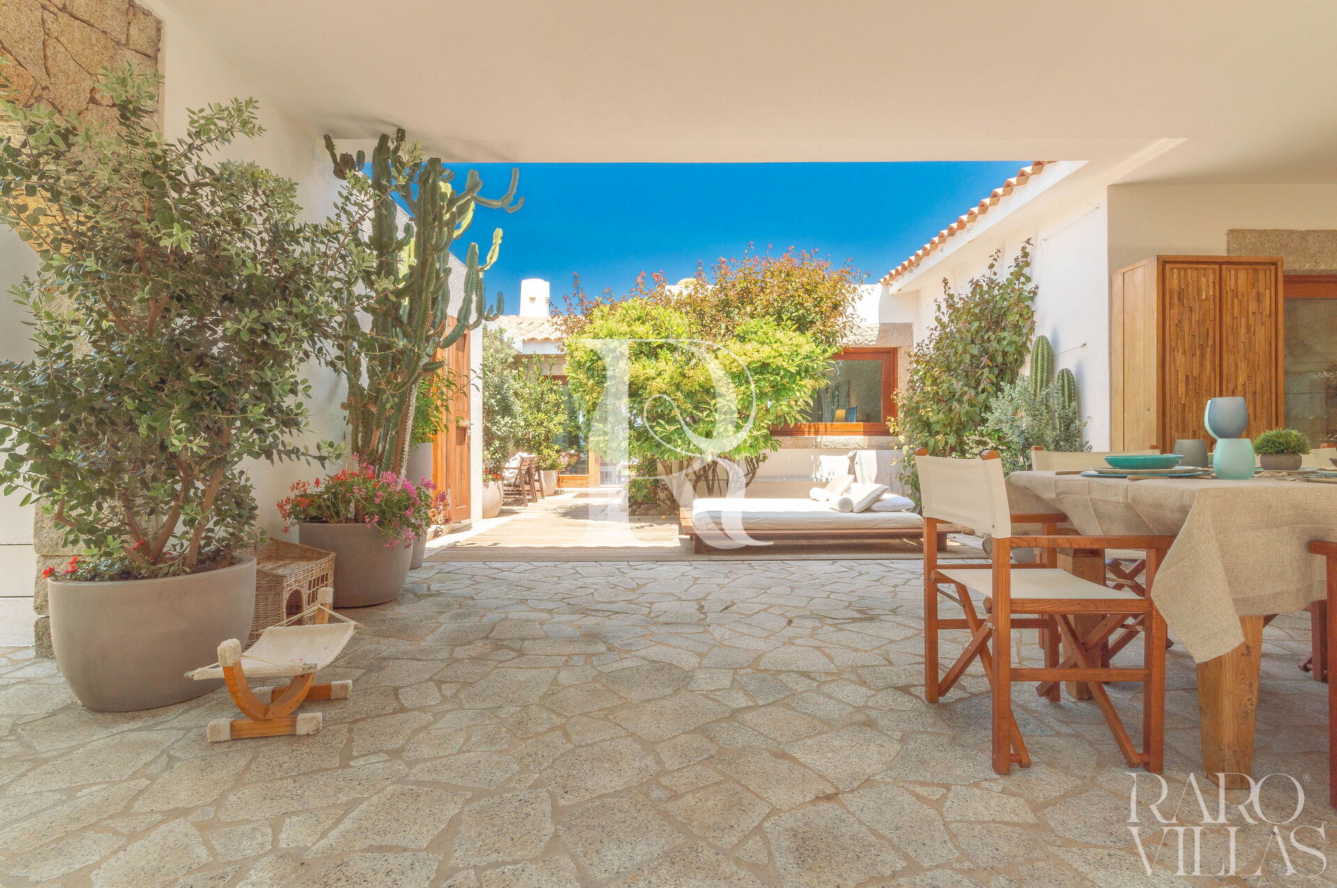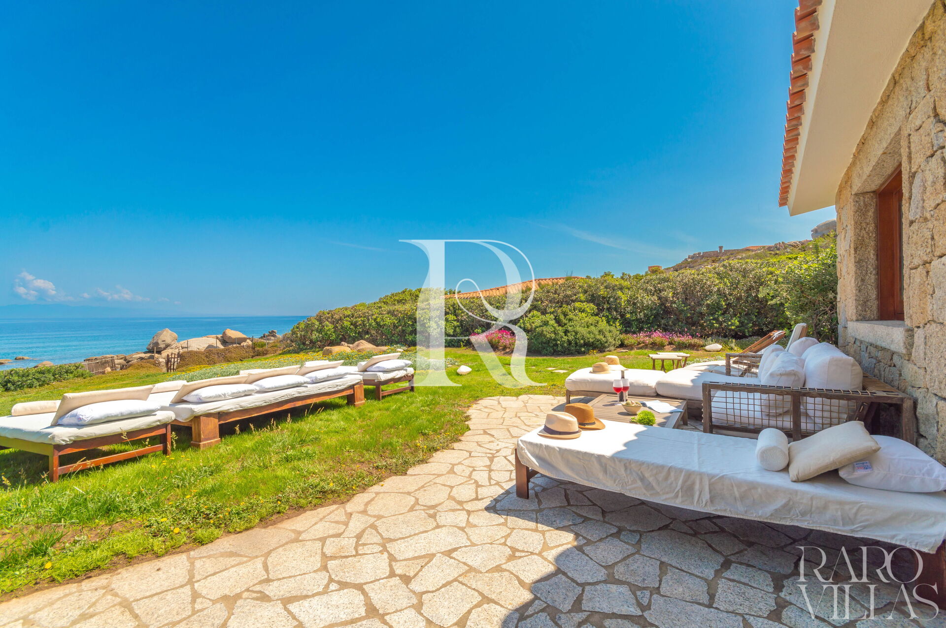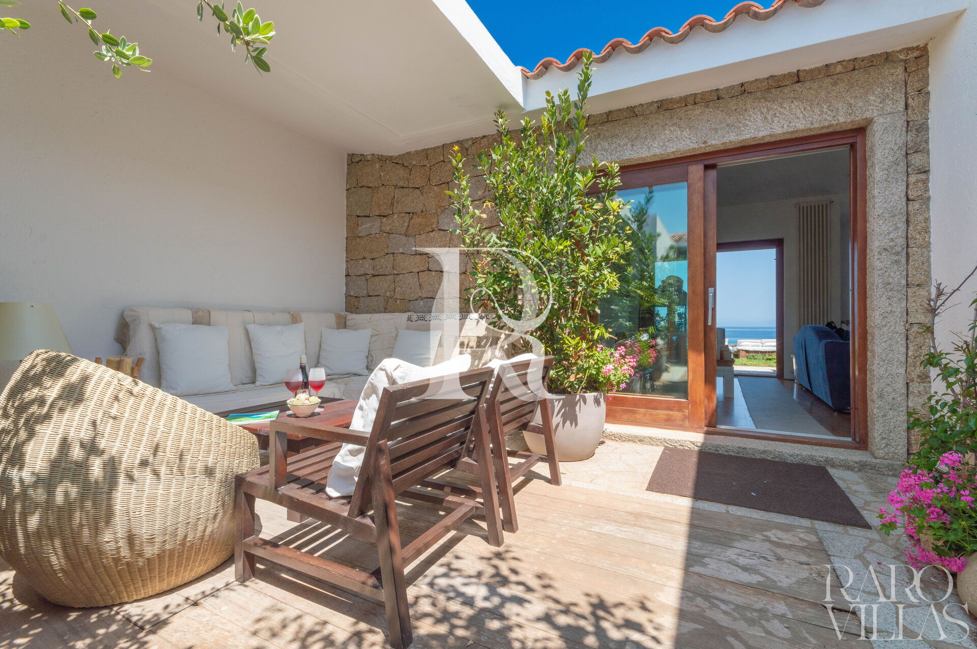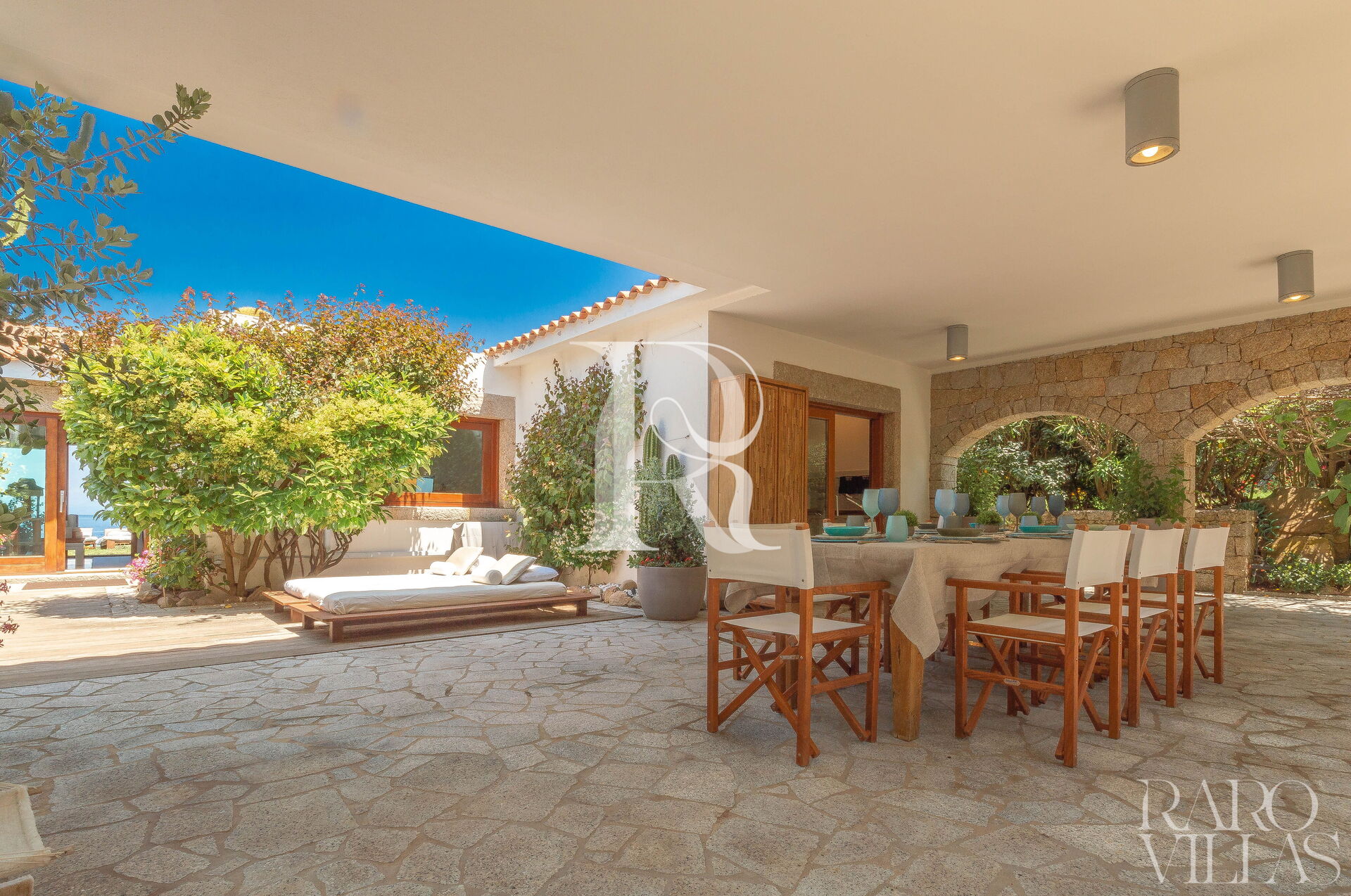 Immersed in the Mediterranean maquis and lapped by a turquoise sea, the villa offers outdoor spaces equipped as a large outdoor patio with sofas, sunbeds and dining area perfect for outdoor dining or for relaxing moments in the open air.