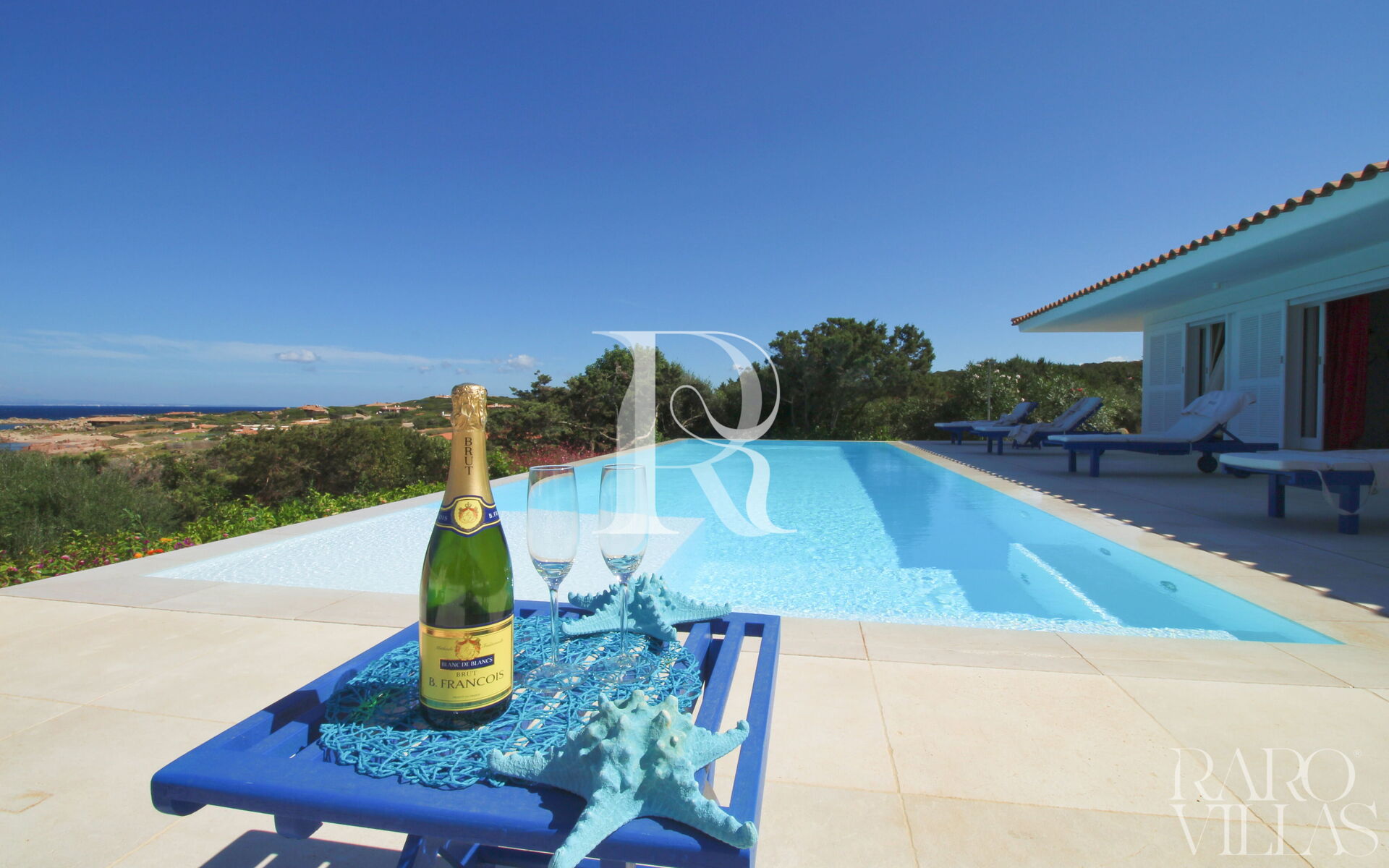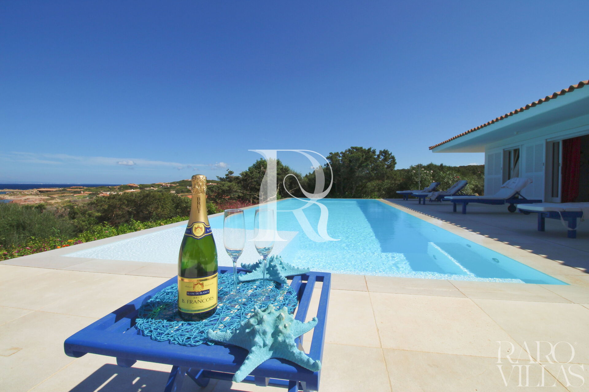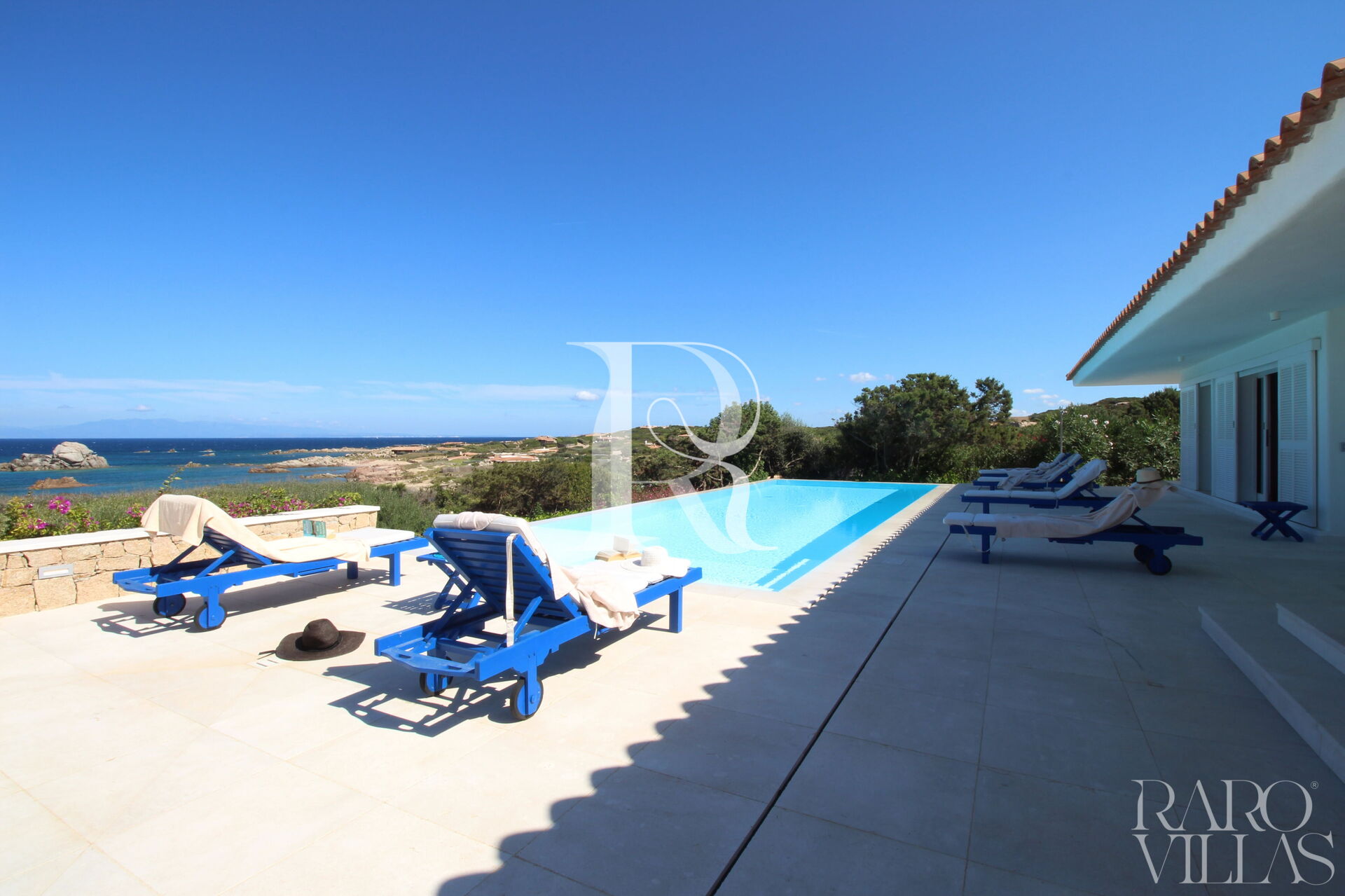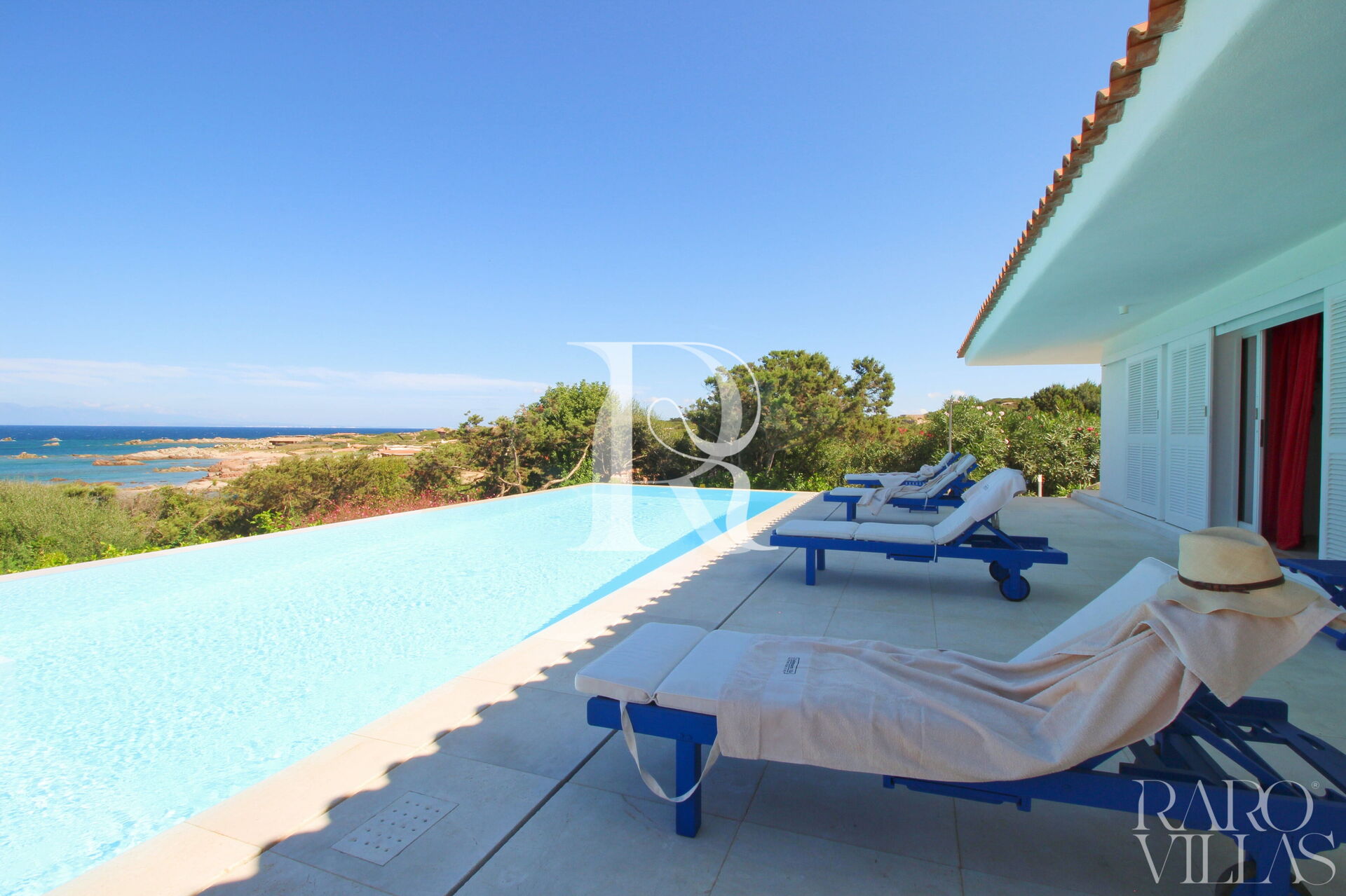 This exclusive property, recently renovated both in the rooms and in the common areas, stands out for its magnificent location and the luxurious amenities offered. The villa, located on the first line, boasts a beautiful infinity pool that offers a breathtaking view of the sea. With direct access to the shore from the private garden, the property is located a short distance from Lu Culumbu beach and the romantic Bay of Love.