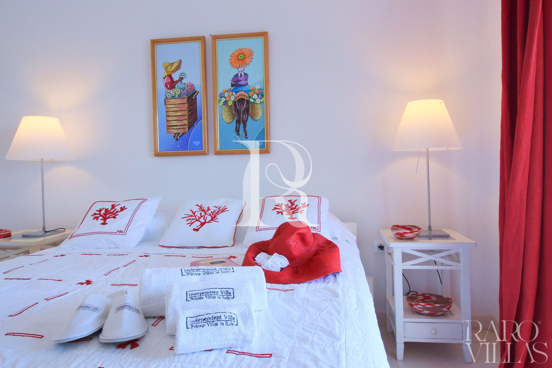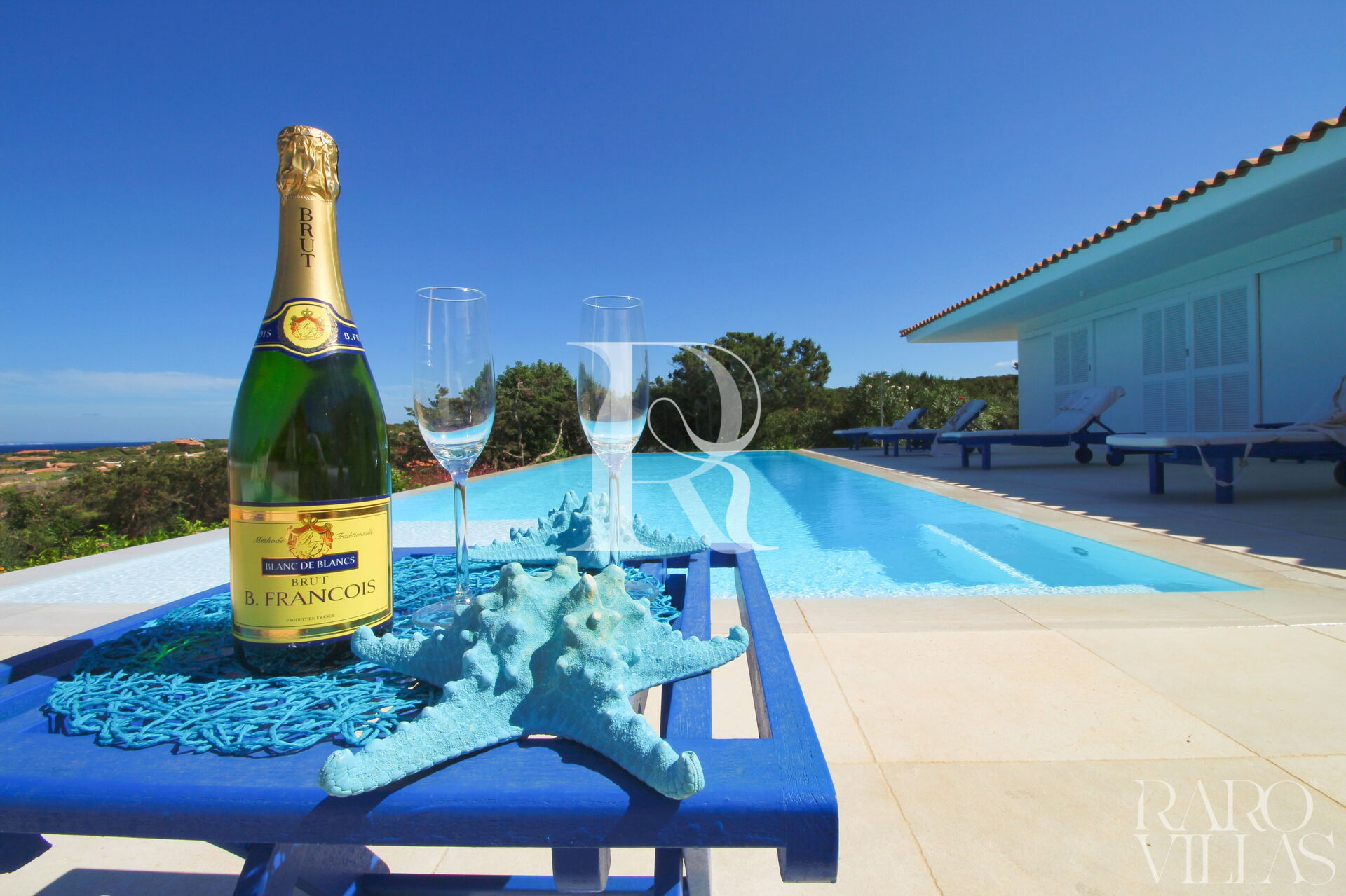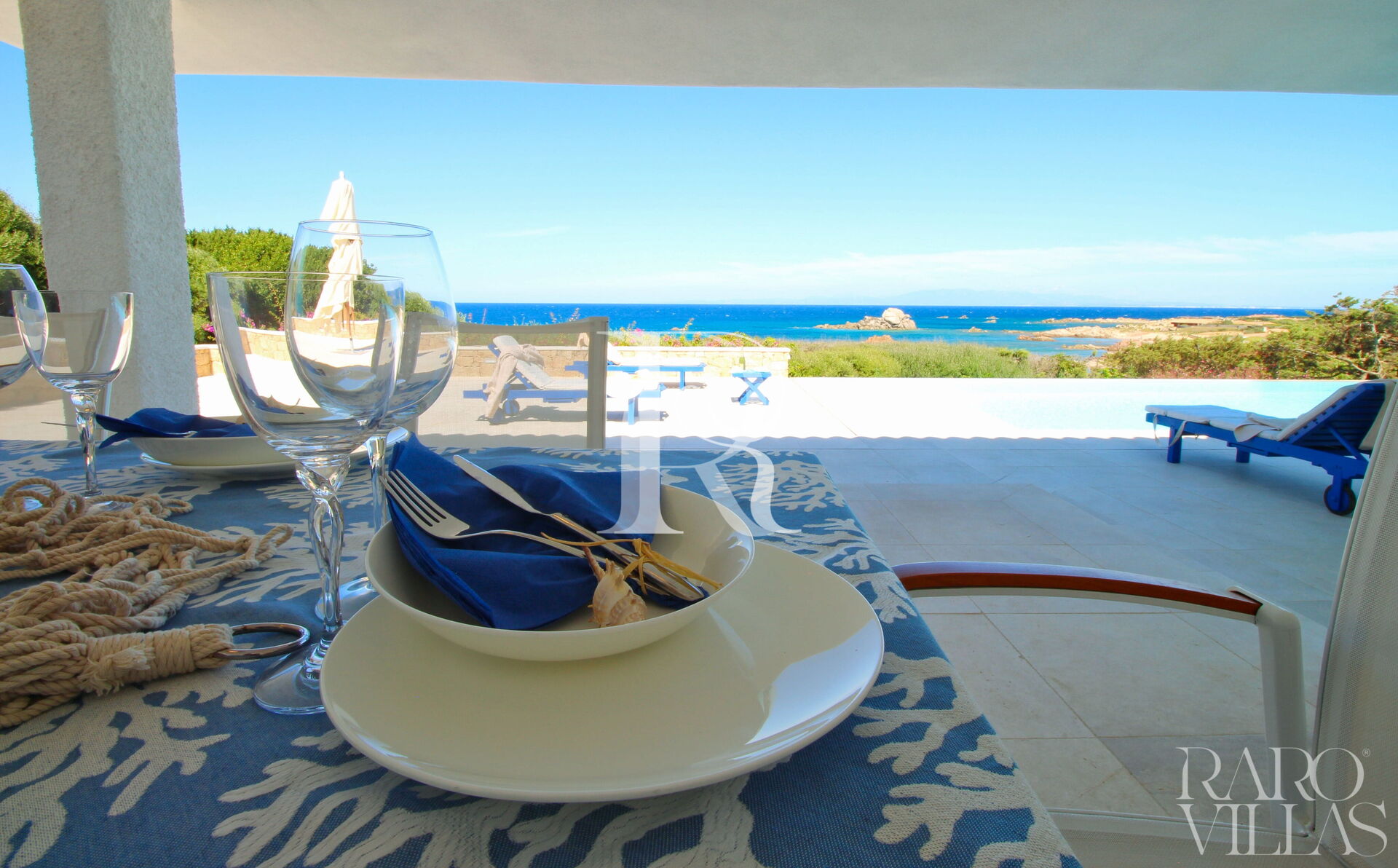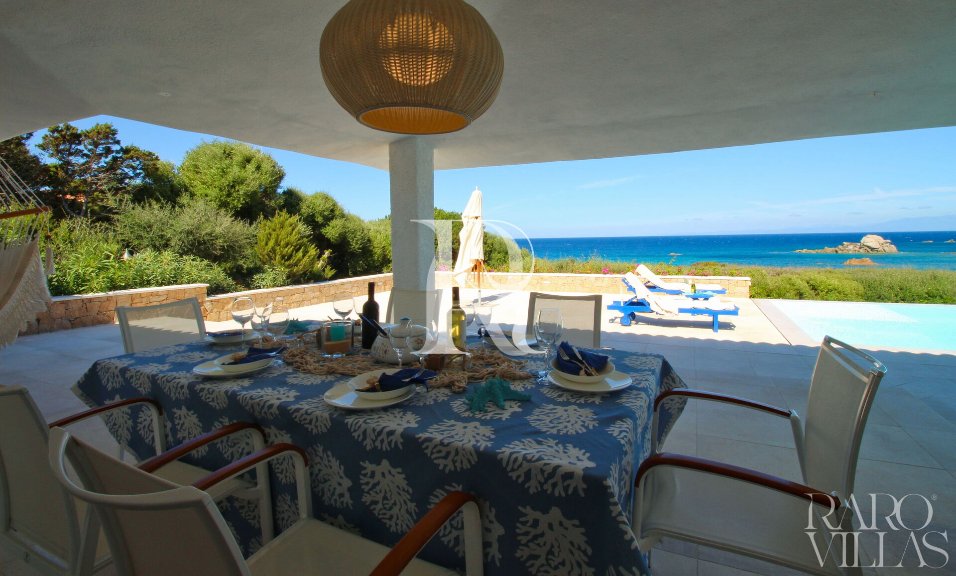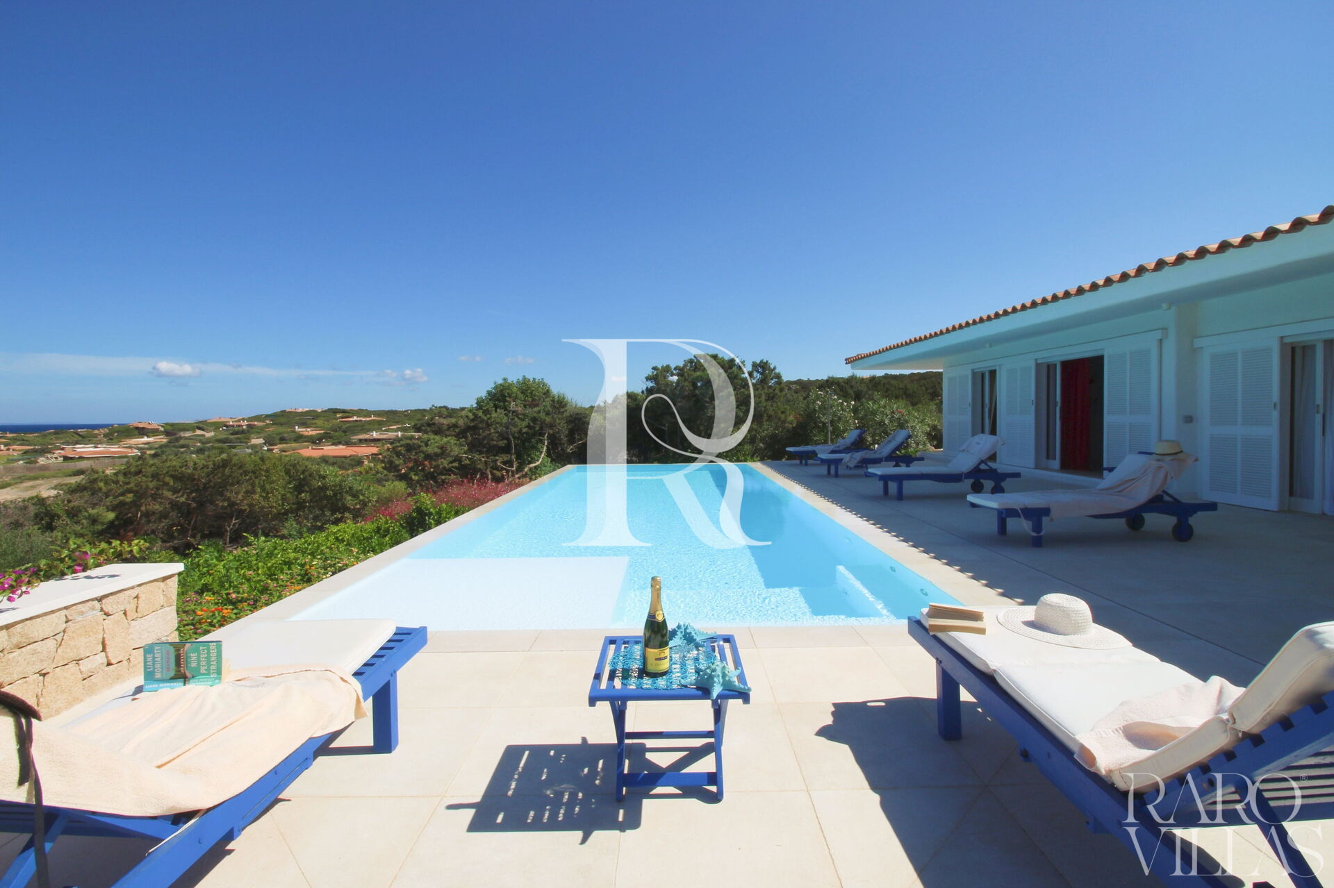 This exclusive property, recently renovated both in the rooms and in the common areas, stands out for its magnificent location and the luxurious amenities offered. The villa, located on the first line, boasts a beautiful infinity pool that offers a breathtaking view of the sea. With direct access to the shore from the private garden, the property is located a short distance from Lu Culumbu beach and the romantic Bay of Love.