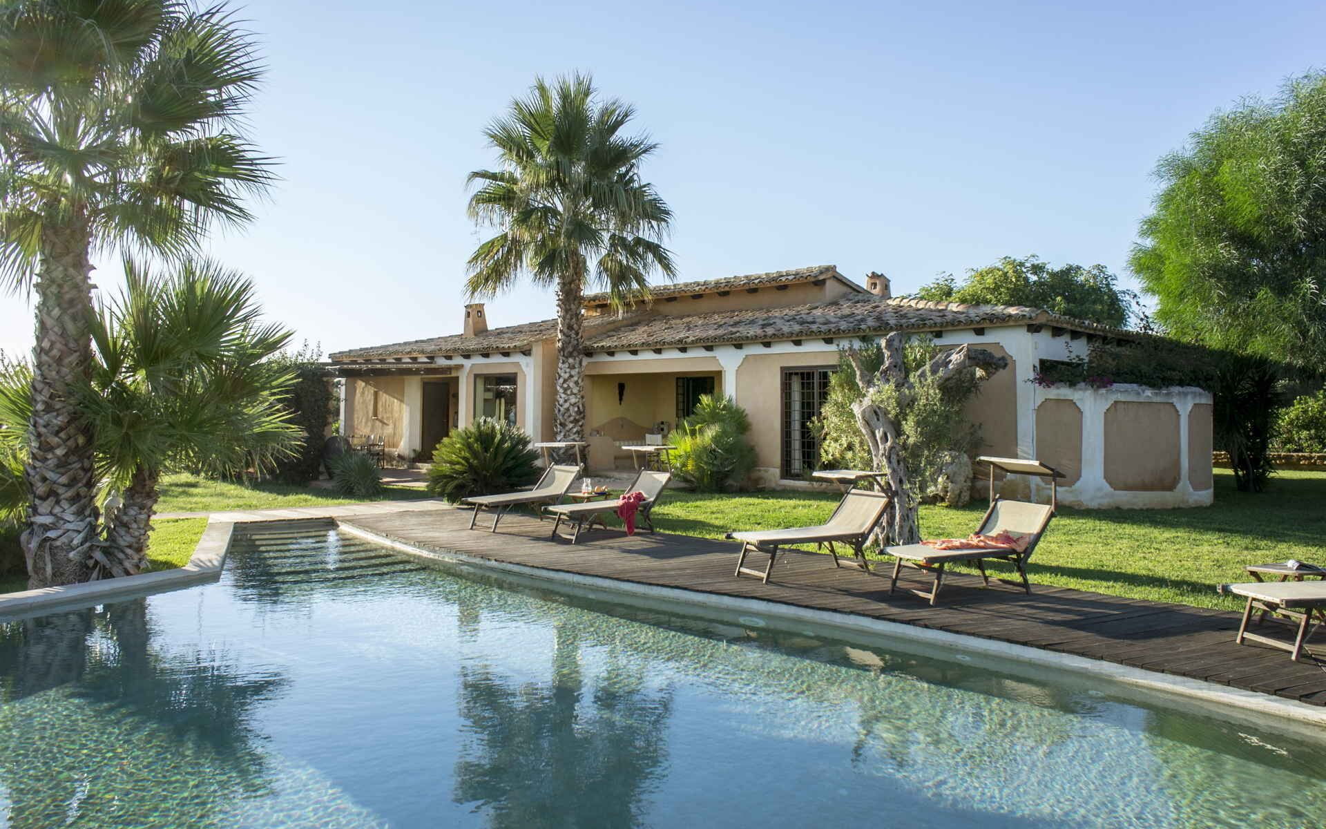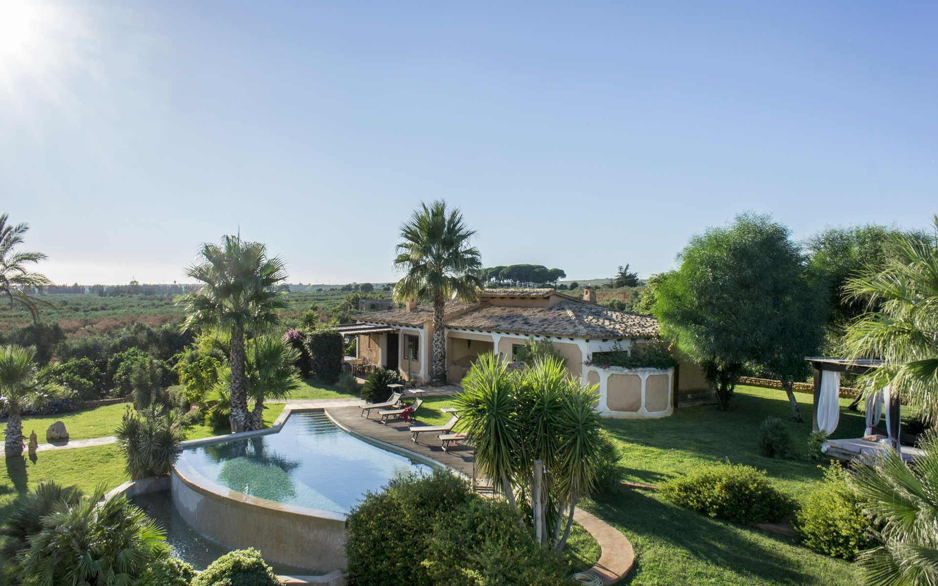 Nestled in a lush green garden, surrounded by row upon row of olive trees, some dating back centuries, Villa Vignola is a modern-day paradise at the heart of the Sicilian countryside.