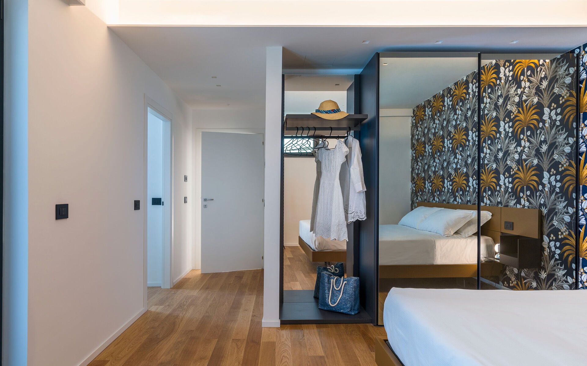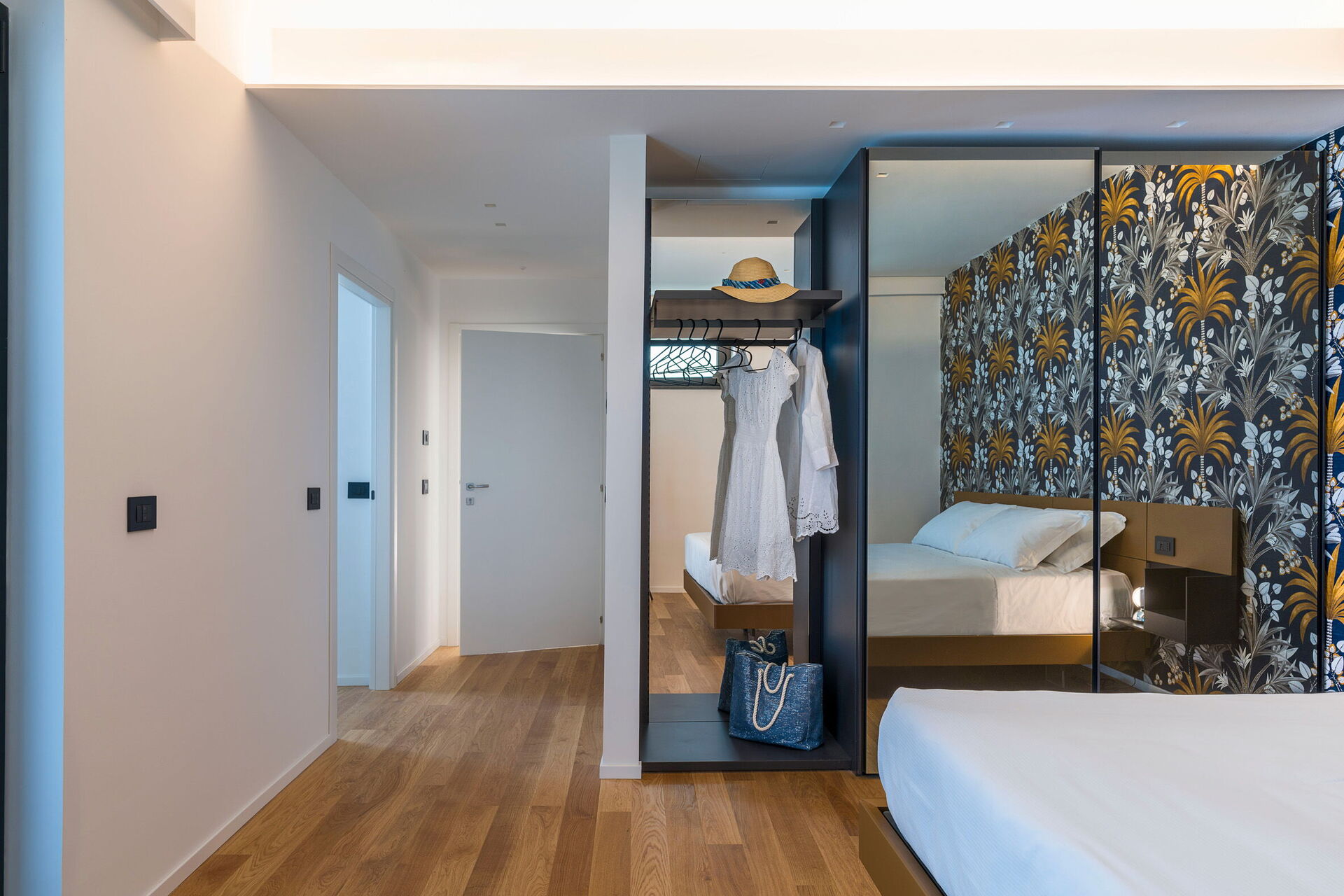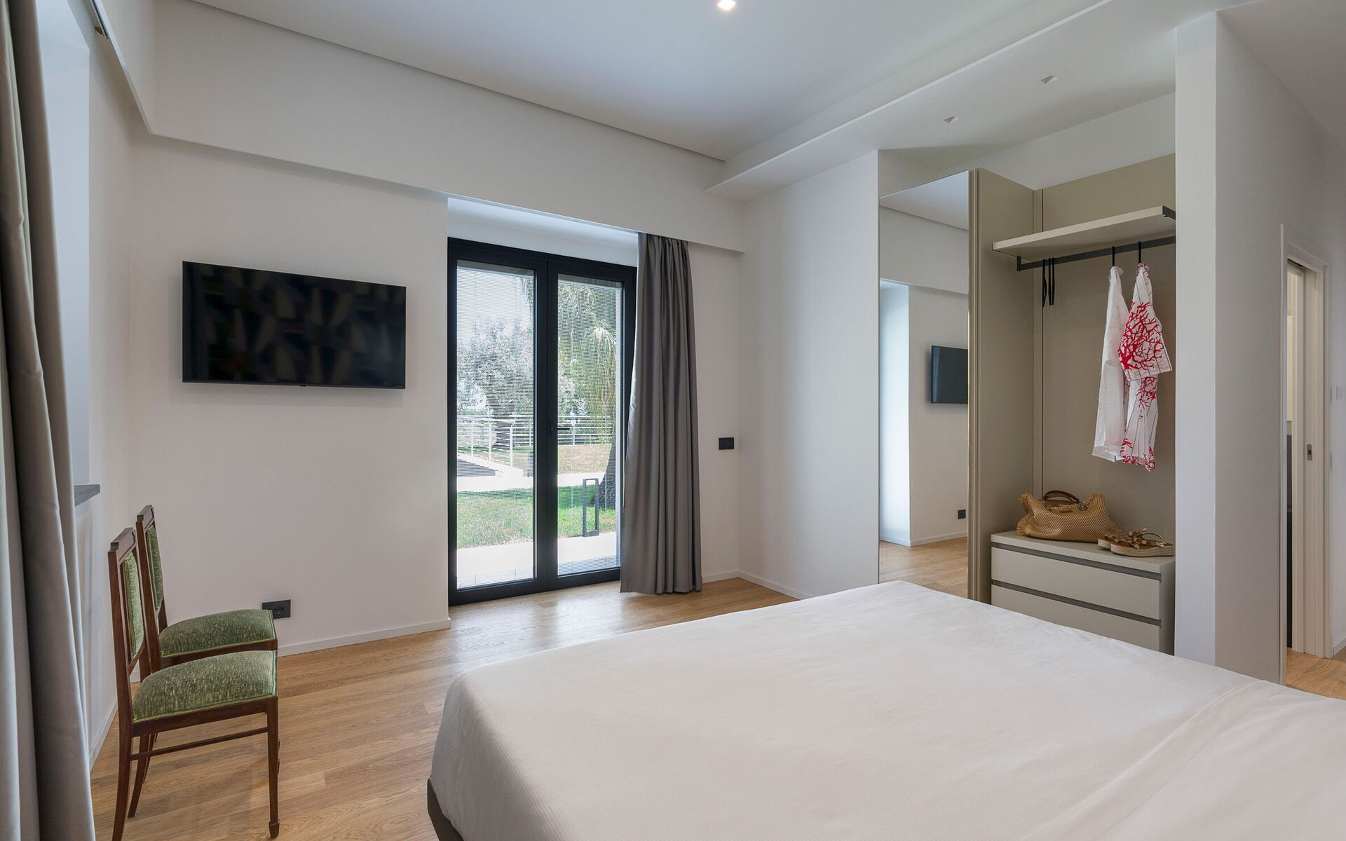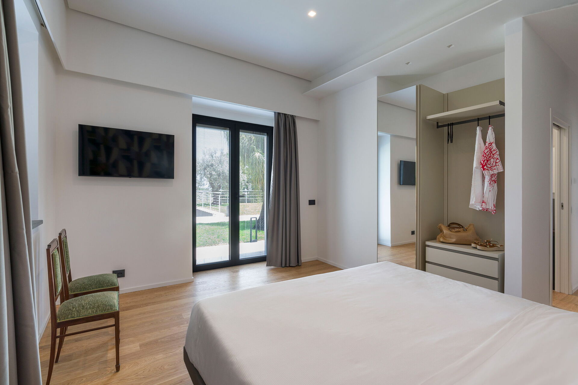 Slaapkamer met badkamer 1: king size bed, WIFI internet, internet, airconditioning, satelliet tv, wastafel, toilet , bidet, douche, haardroger, uitgang naar het terras.