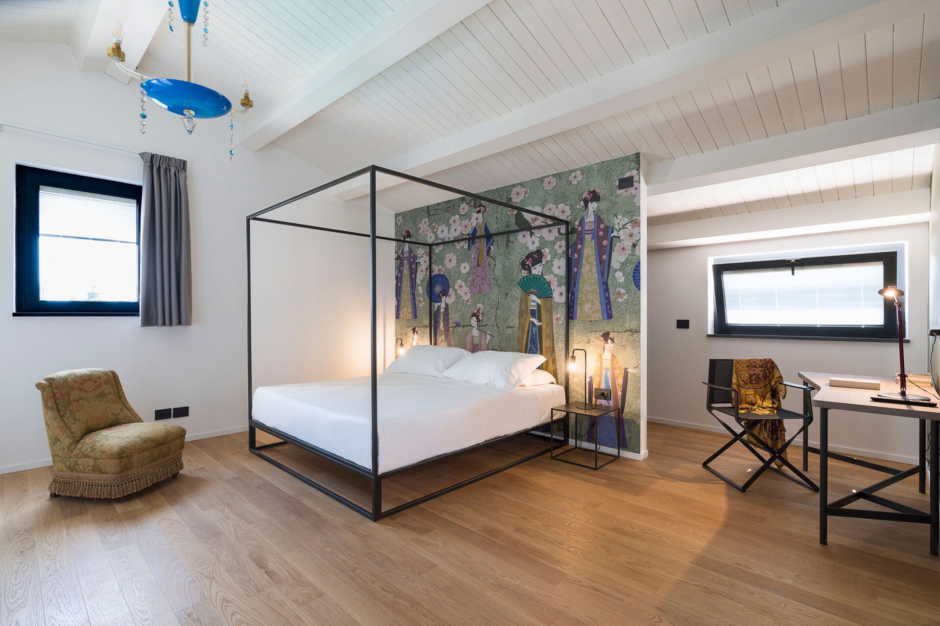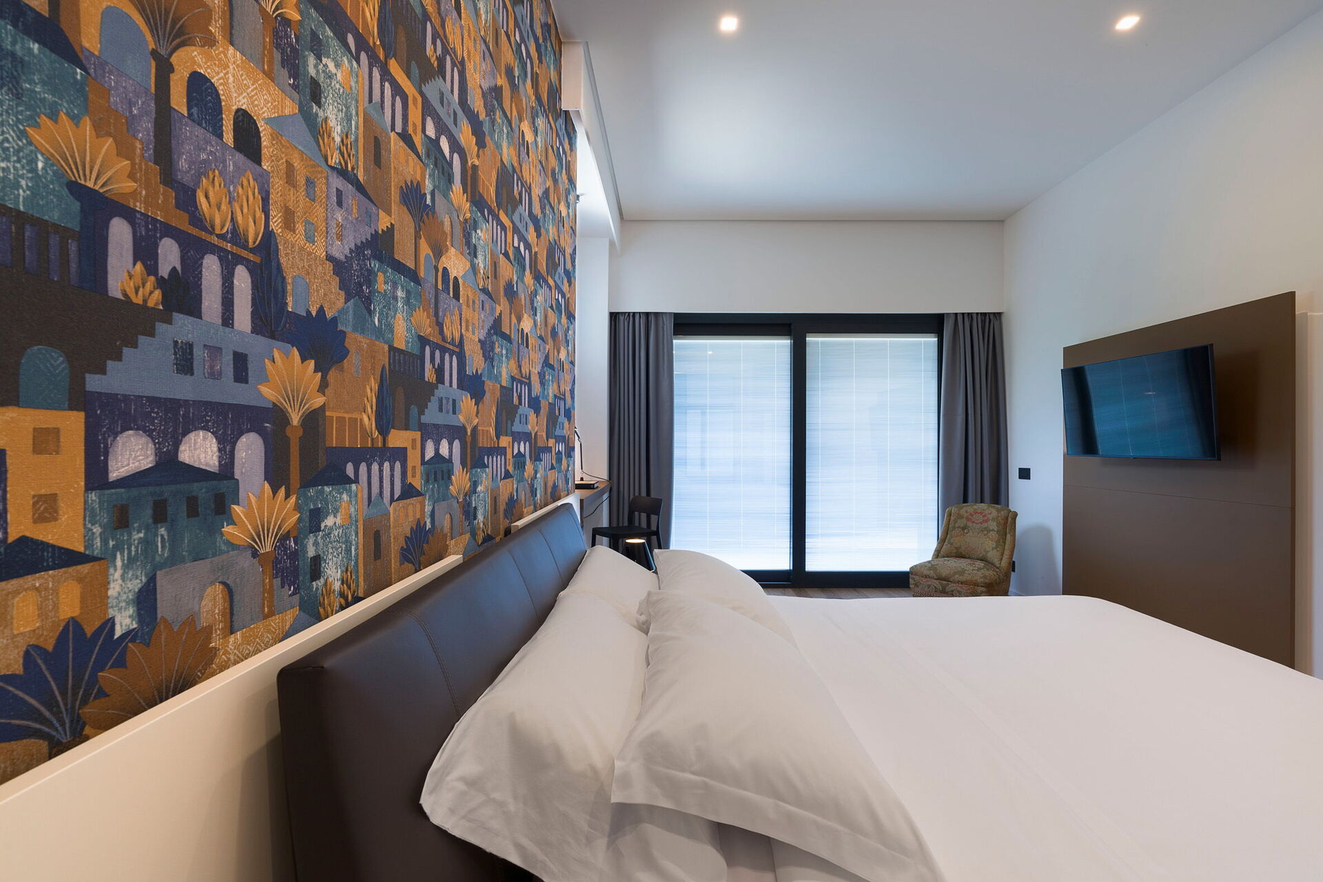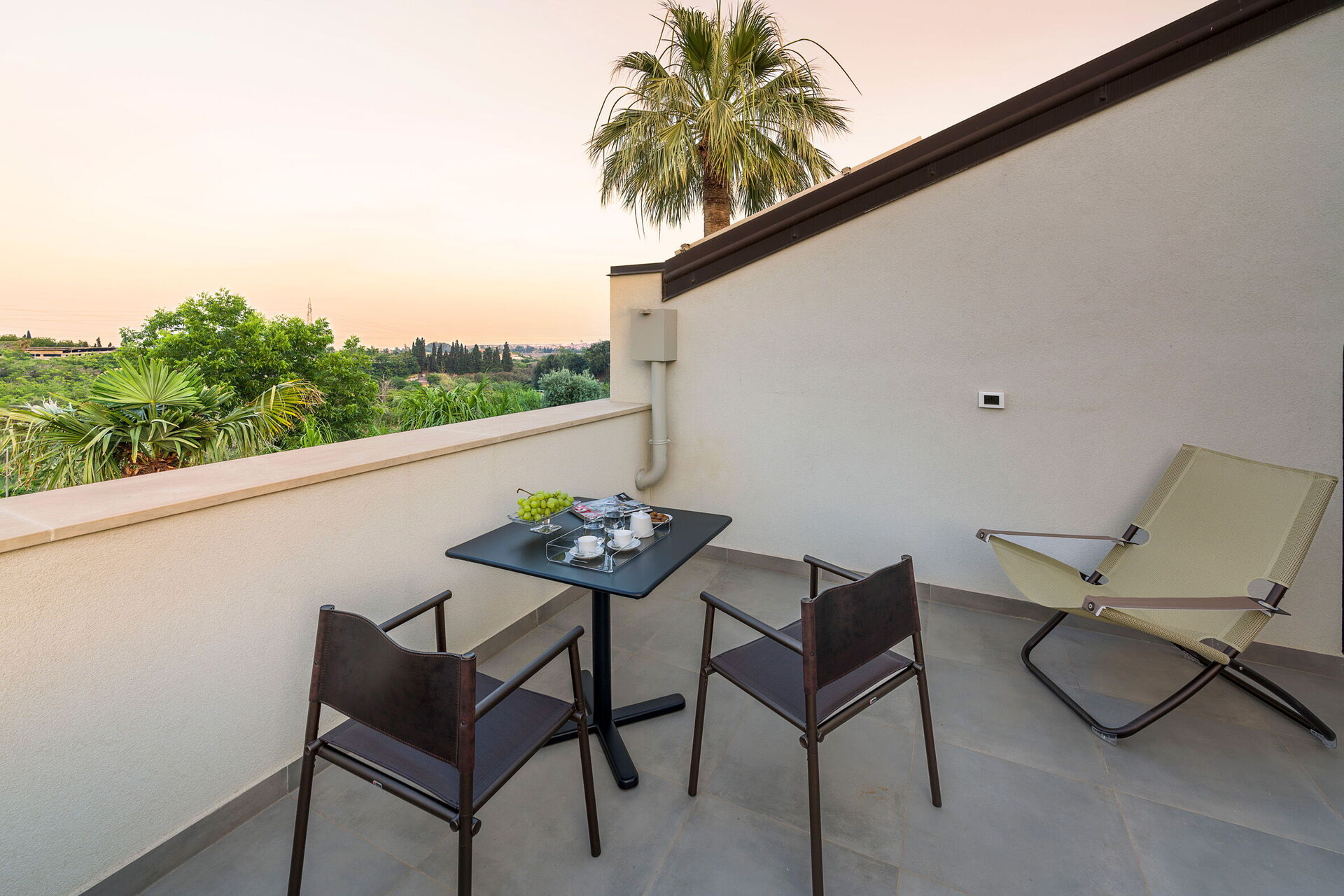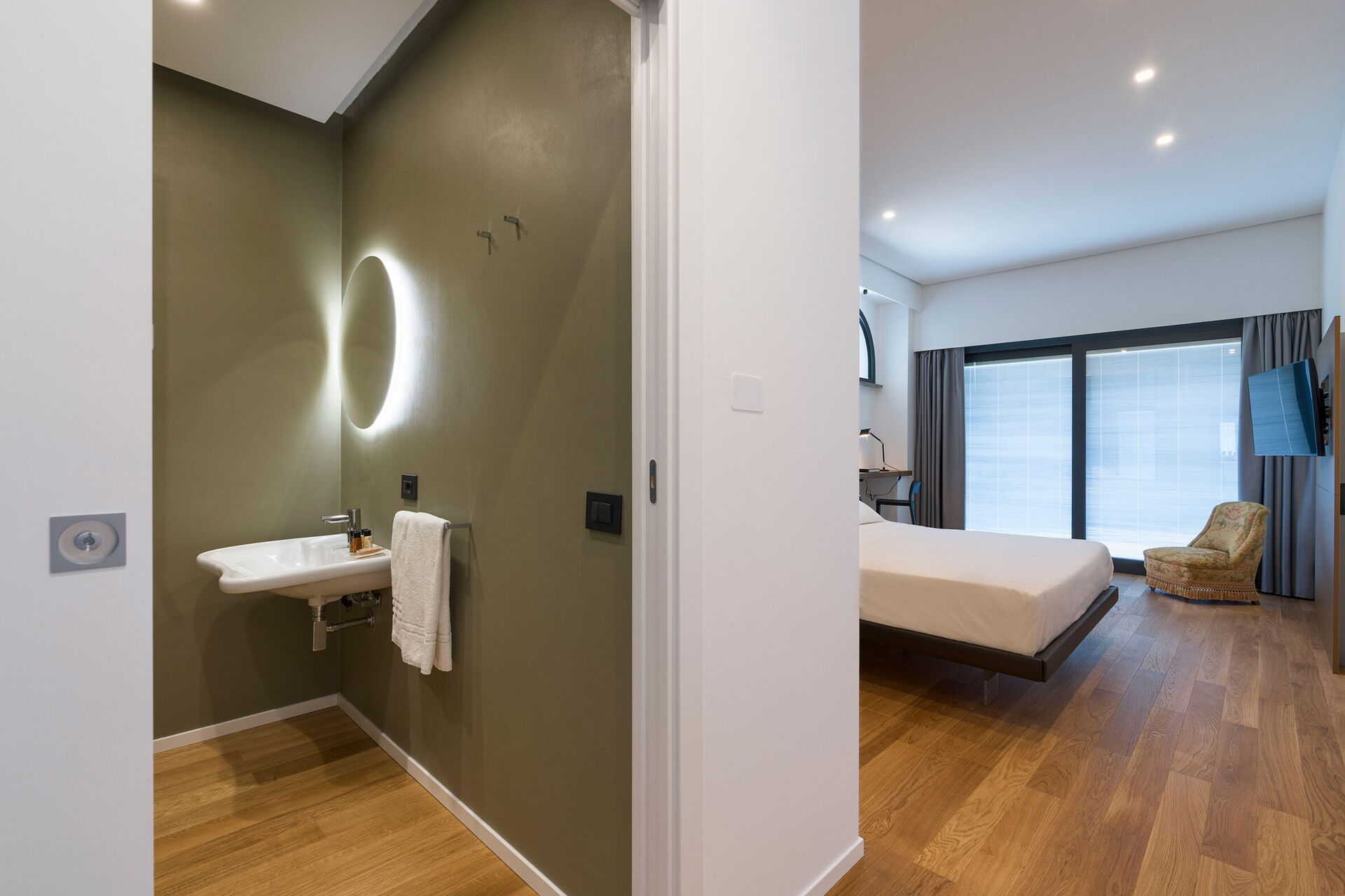 Slaapkamer met badkamer 1: king size bed, WIFI internet, internet, airconditioning, satelliet tv, wastafel, toilet , bidet, douche, haardroger, uitgang naar het terras.