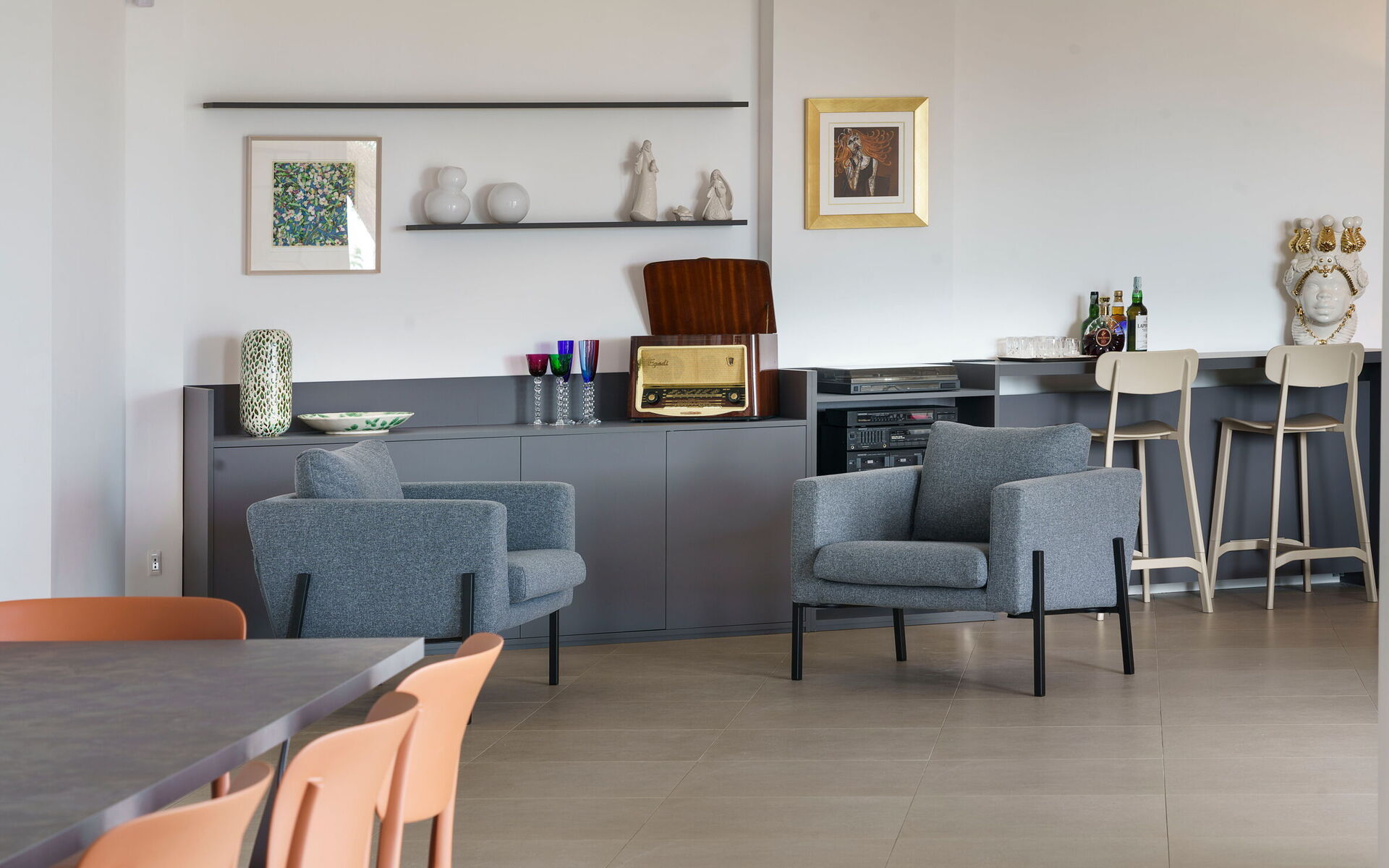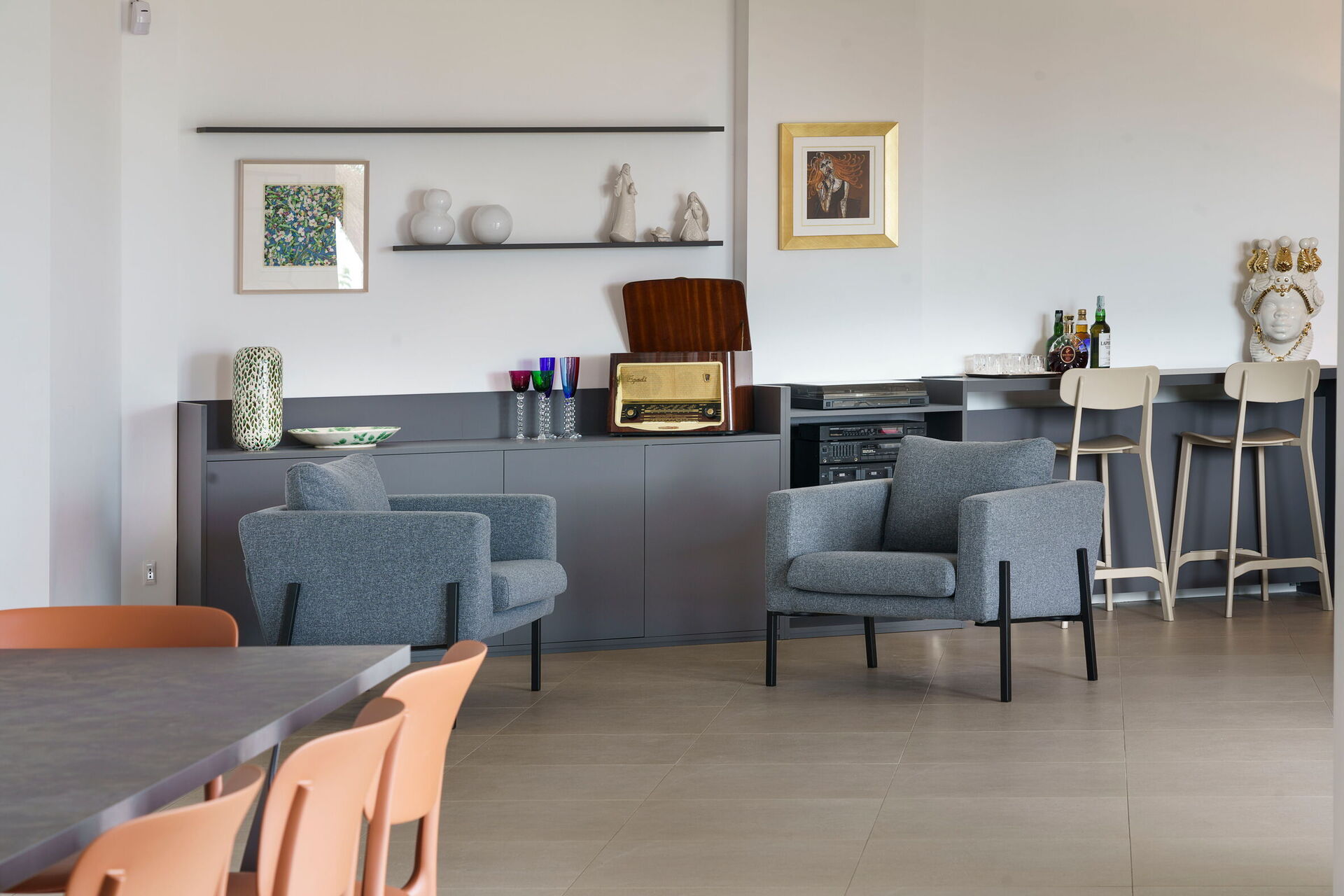 De bovenverdieping van de villa huisvest een onafhankelijke accommodatie, bewoond door de eigenaren tijdens de middel- en laagseizoen perioden, waarbij de tuin en het zwembad, die privé zijn voor alleen de gasten, niet gebruikt worden.
