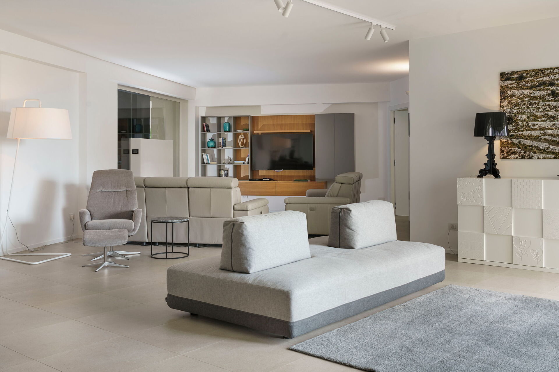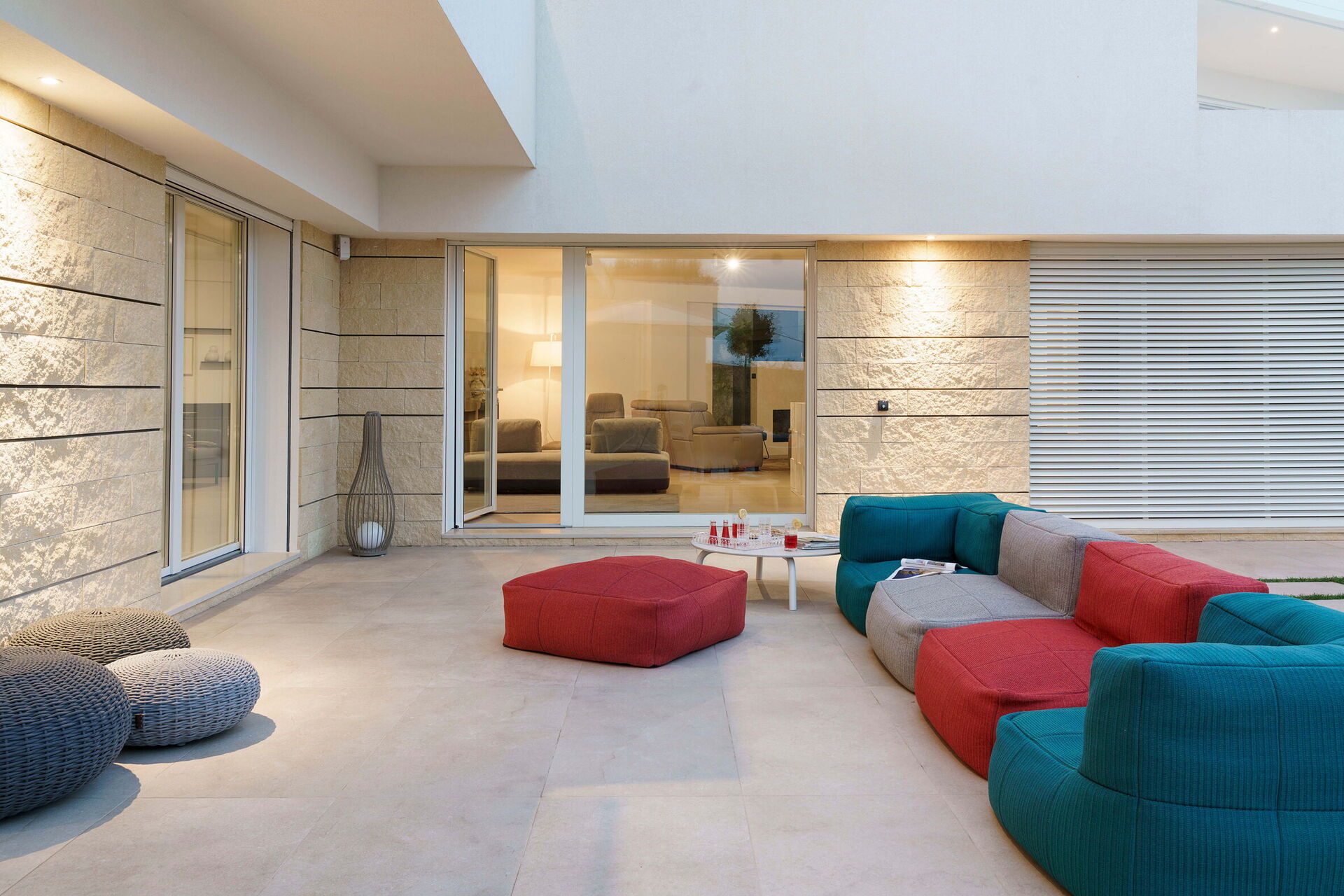 Woonkamer: drie banken (personen: 12), fauteuil, open haard, WIFI internet, internet, airconditioning, satelliet tv, hor, uitgang naar het terras.