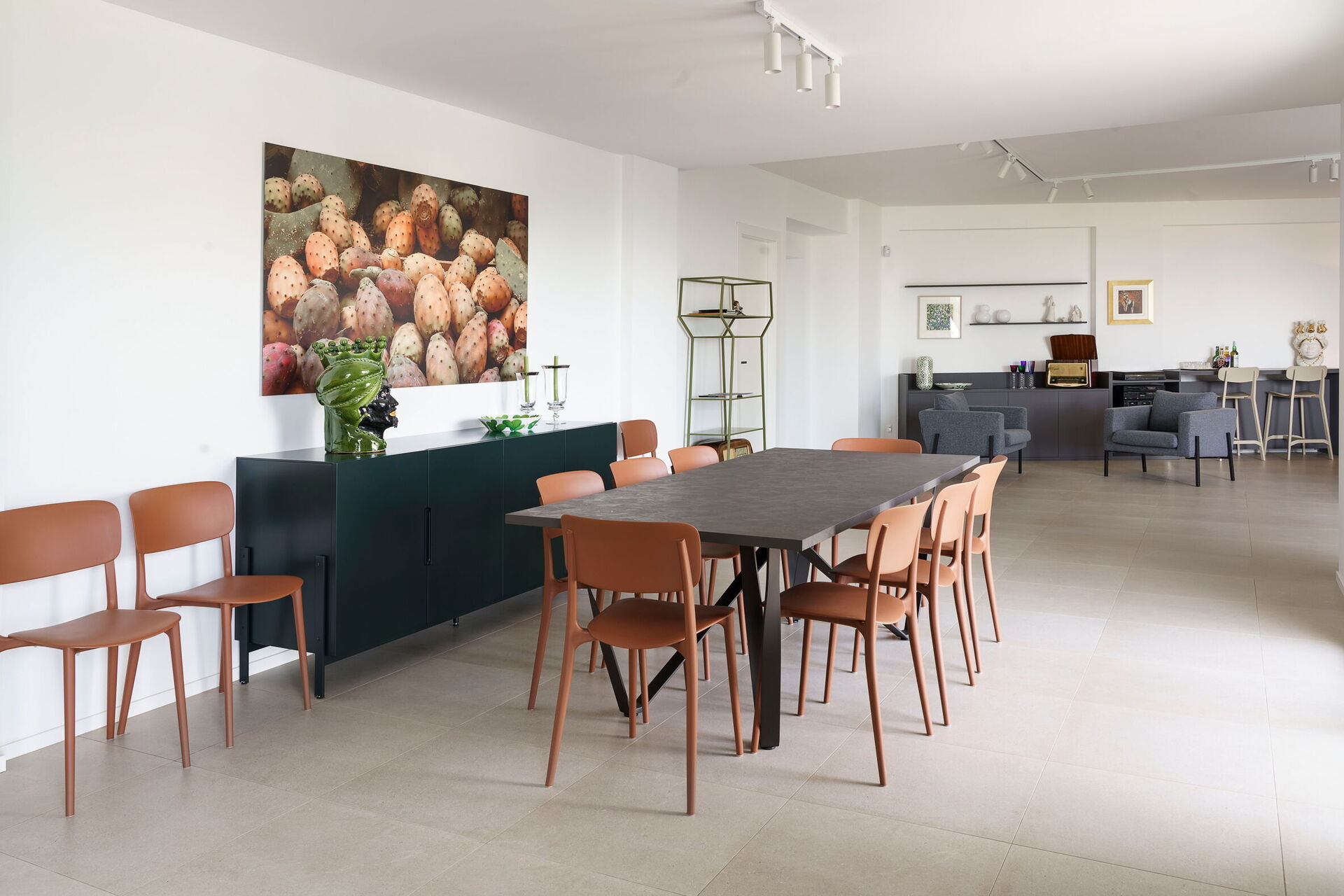 Eetkamer: eettafel (personen: 12), airconditioning, WIFI internet, internet, hor, uitgang naar het terras.