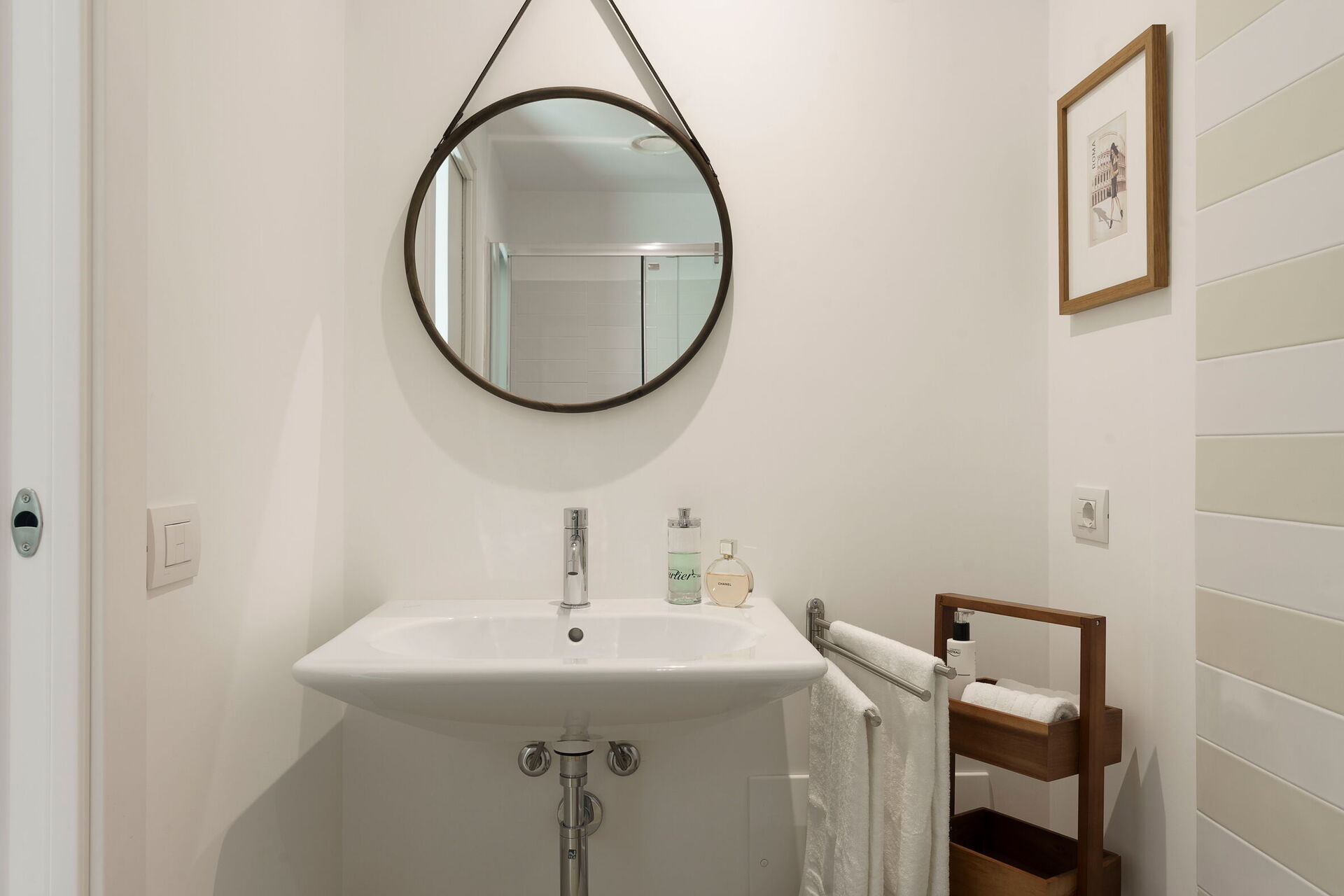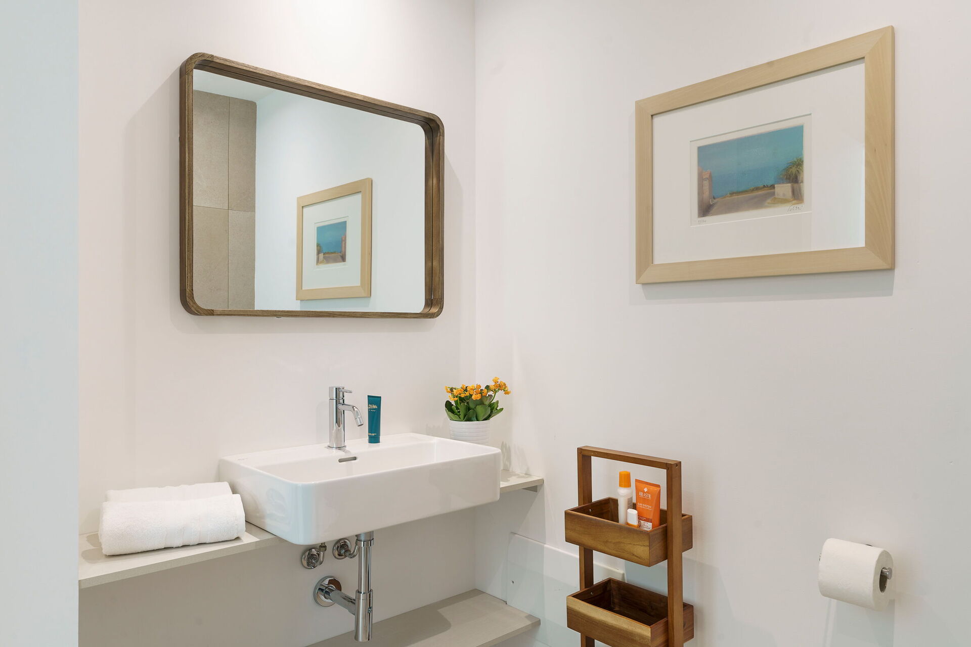 Servicekamer: wastafel, strijkijzer, wasmachine, wasdroger.
