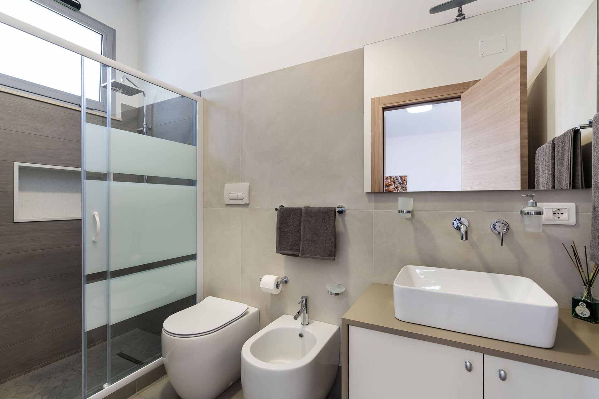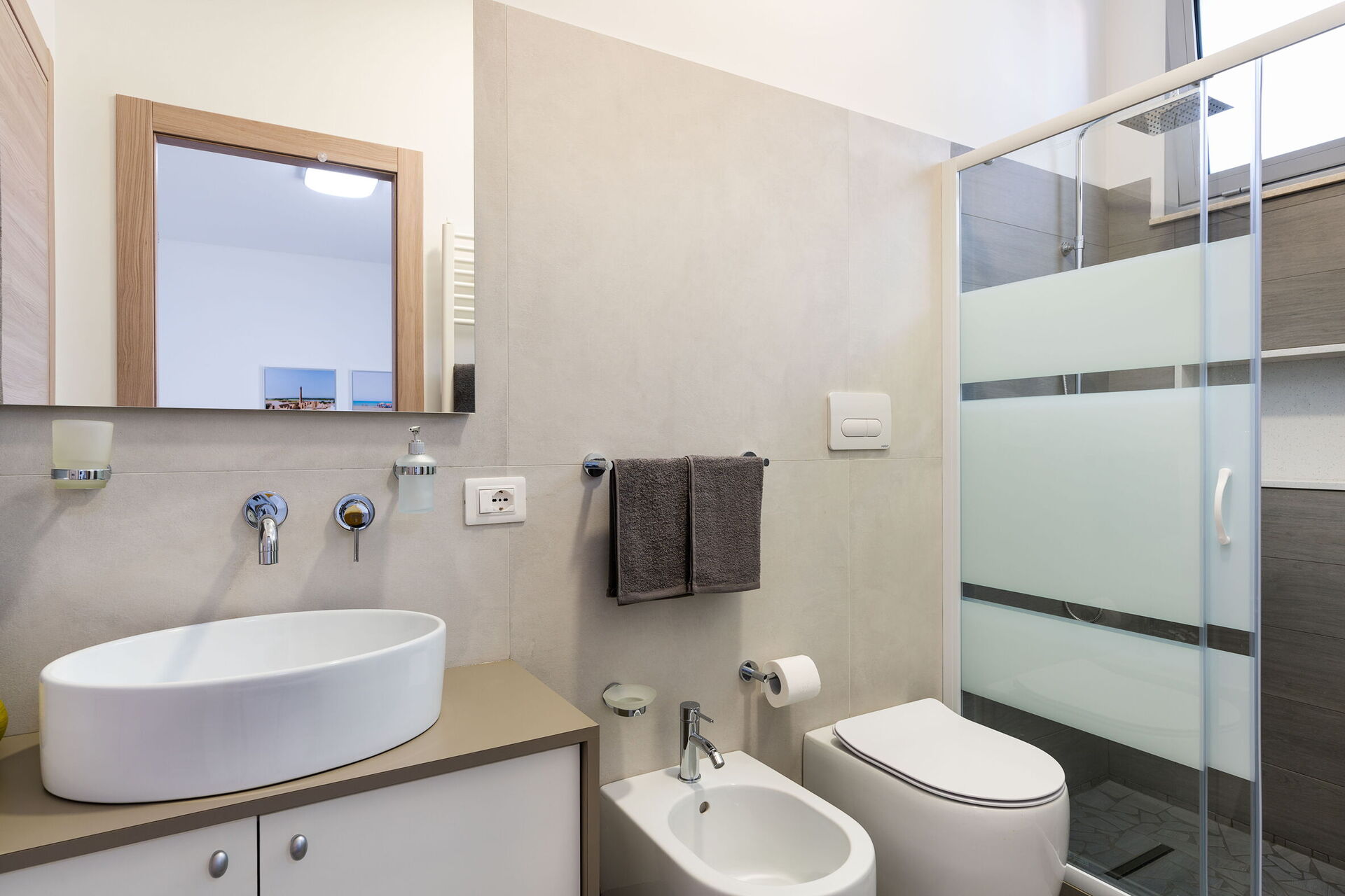 Badkamer: wastafel, toilet , bidet, douche, WIFI internet, internet.