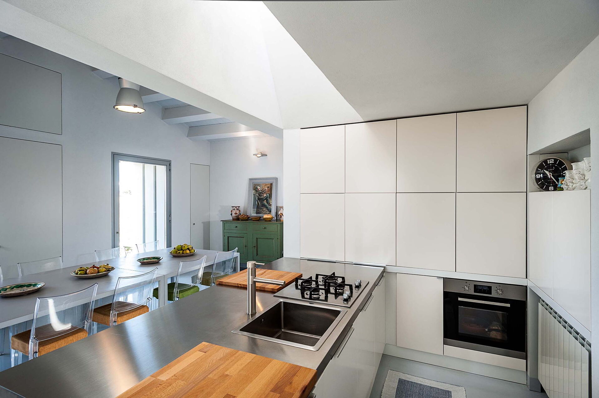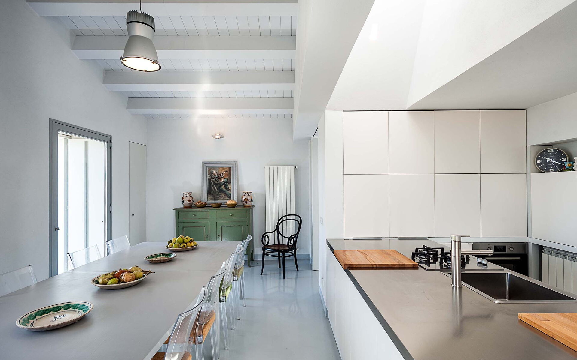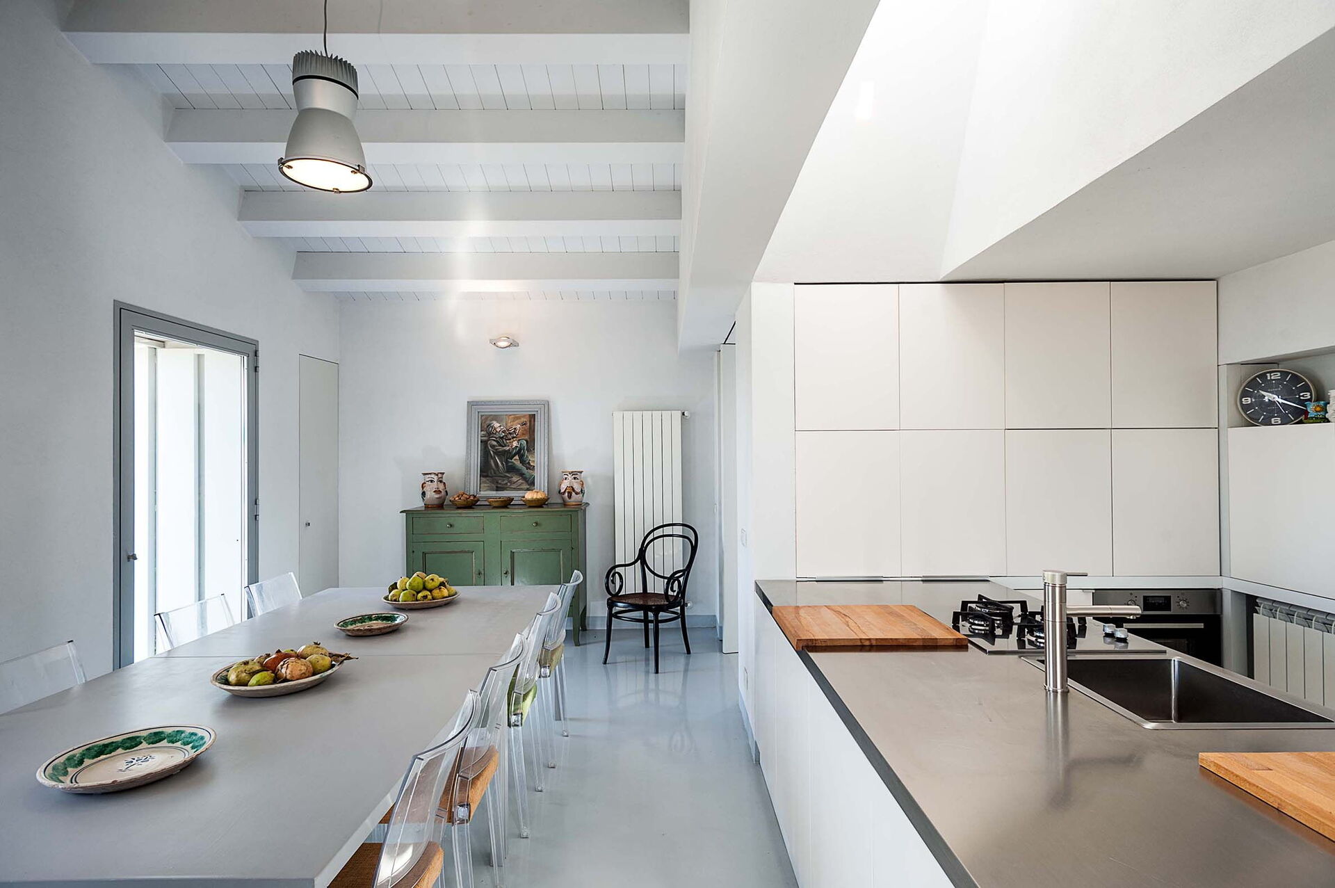 Keuken: goed uitgeruste keuken, vaatwasser, ijskast, diepvriezer, magnetron, kookplaat, oven, broodrooster, strijkijzer, italiaans koffiezetapparaat, koffiezetapparaat, WIFI internet, internet, kinderstoel, plafondventilator, plafondventilator, rookmelder, co2 detector.
