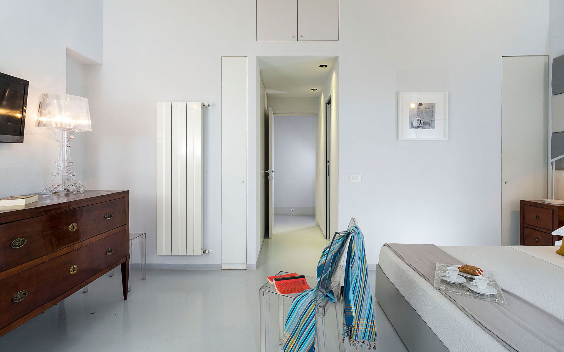 Slaapkamer met badkamer 1: tweepersoonsbed, baby wieg, WIFI internet, internet, airconditioning, hor, satelliet tv, wastafel, toilet , bidet, douche, uitgang naar de patio.