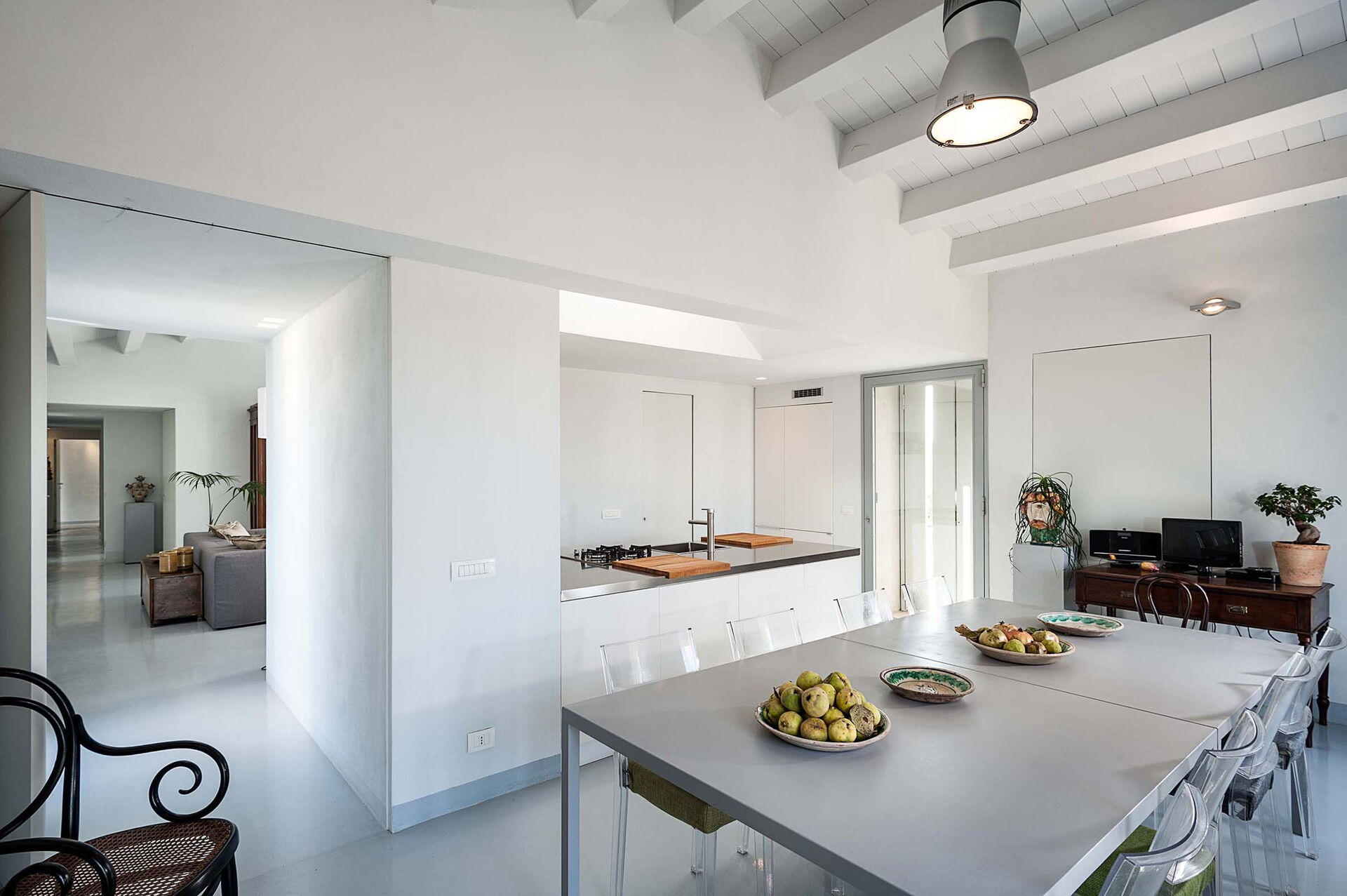 Eetkamer: eettafel (personen: 10), WIFI internet, internet, ventilator, uitgang naar de patio.