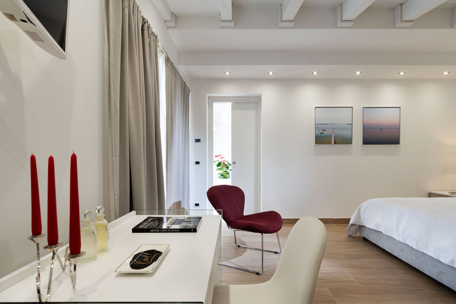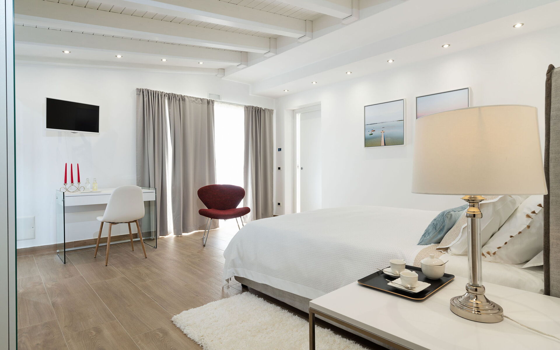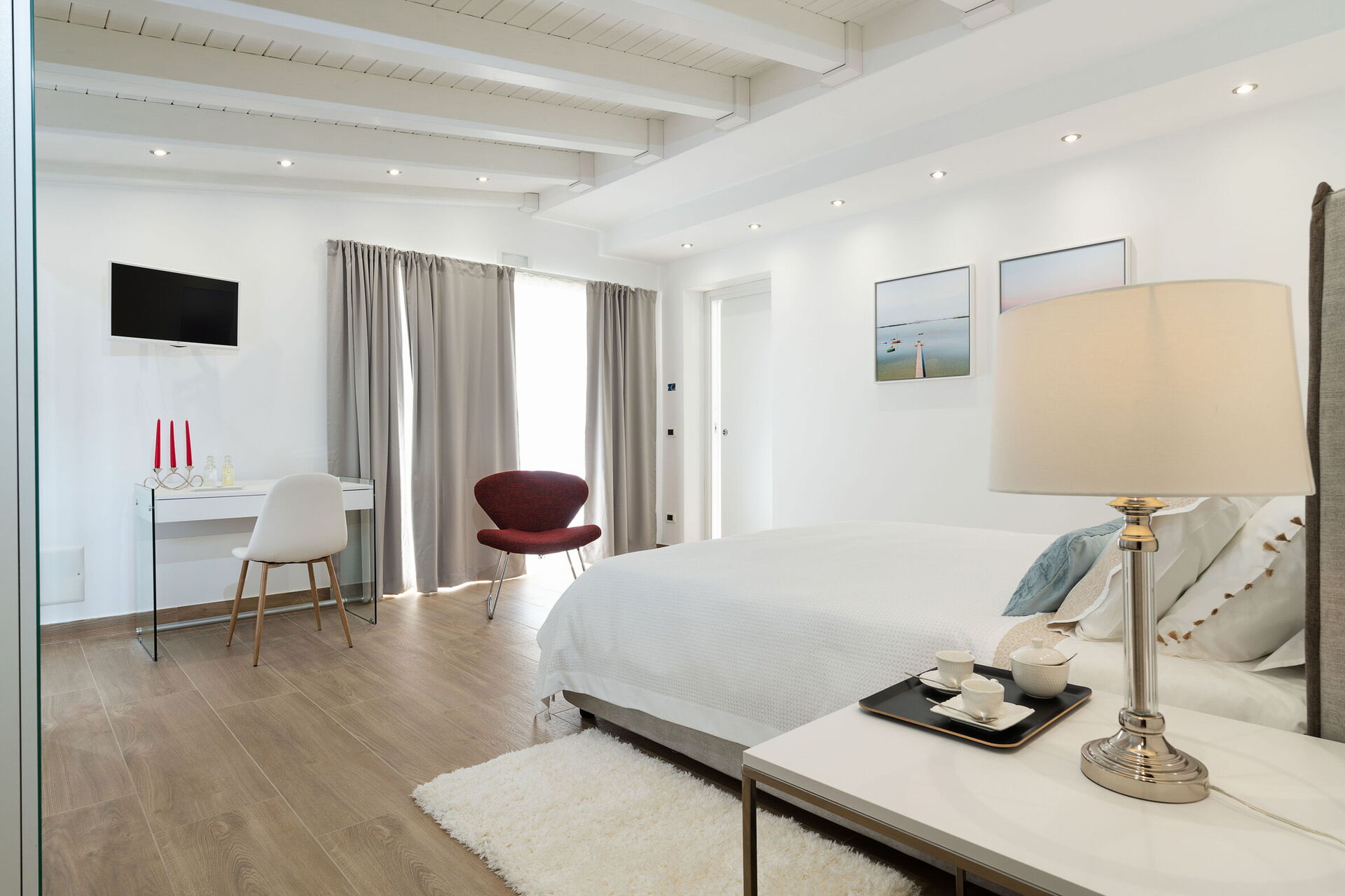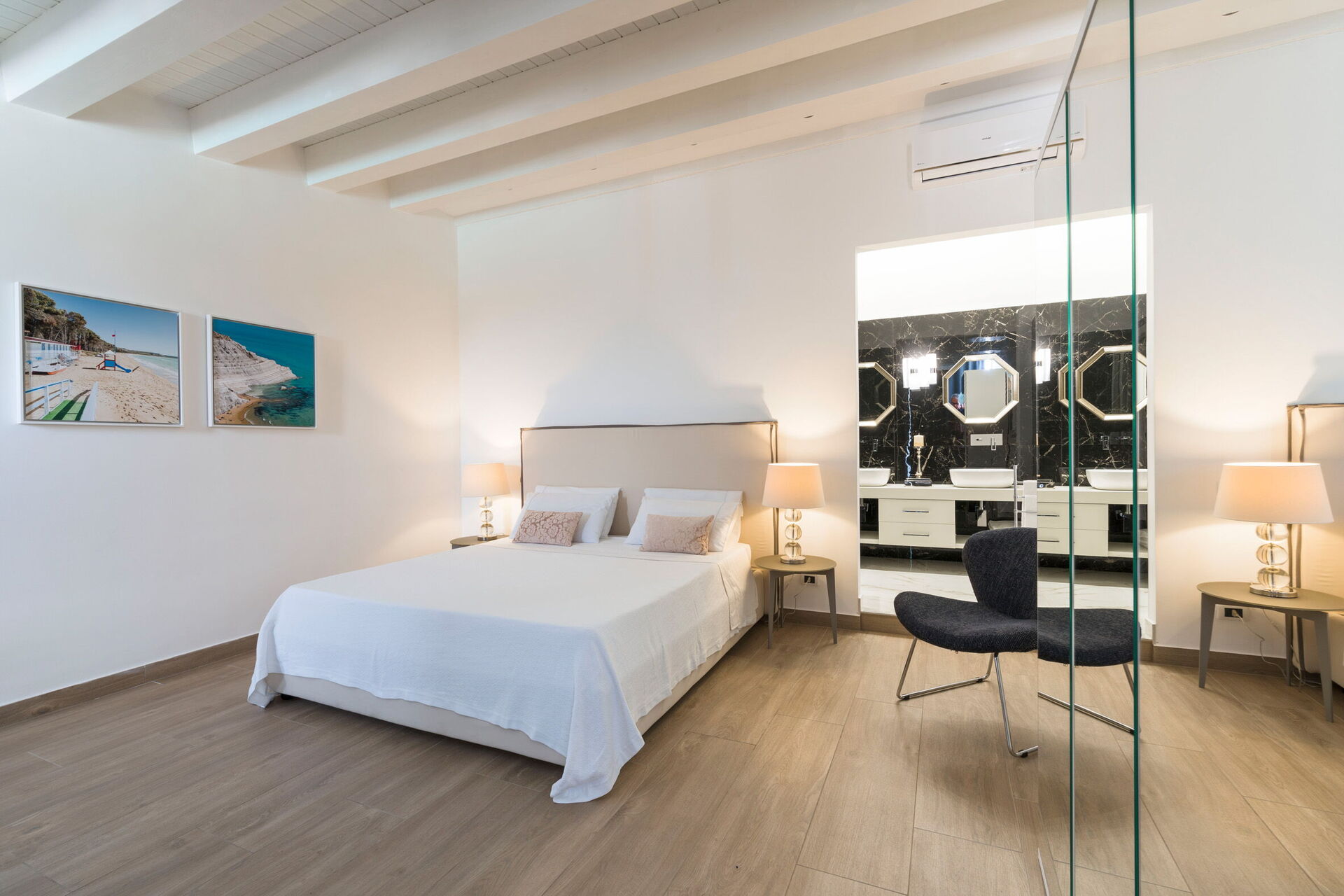 Slaapkamer: tweepersoonsbed, WIFI internet, internet, airconditioning, tv, fauteuil, bureau, uitgang naar het terras.