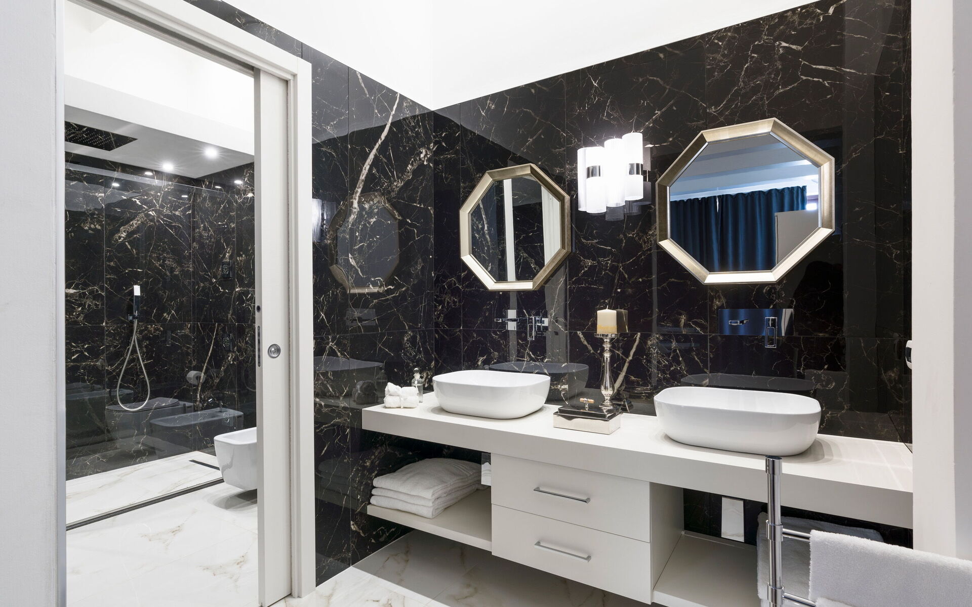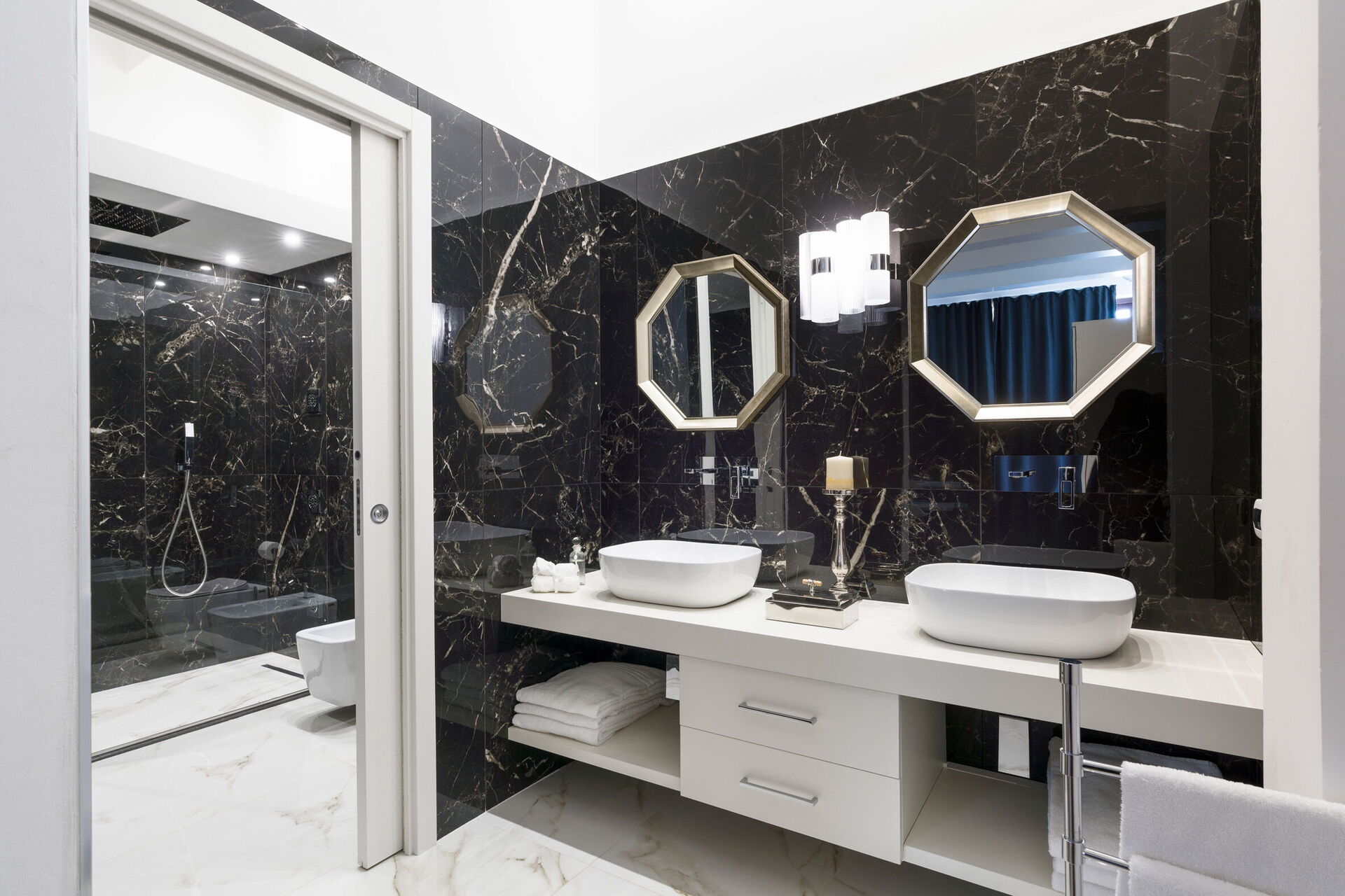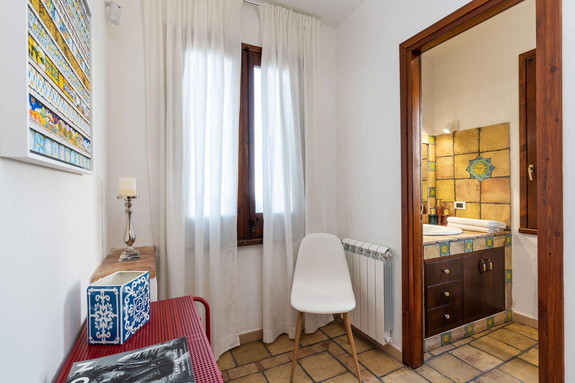 Badkamer: dubbele wastafel, toilet , bidet, douche, haardroger, wasmachine, WIFI internet, internet.