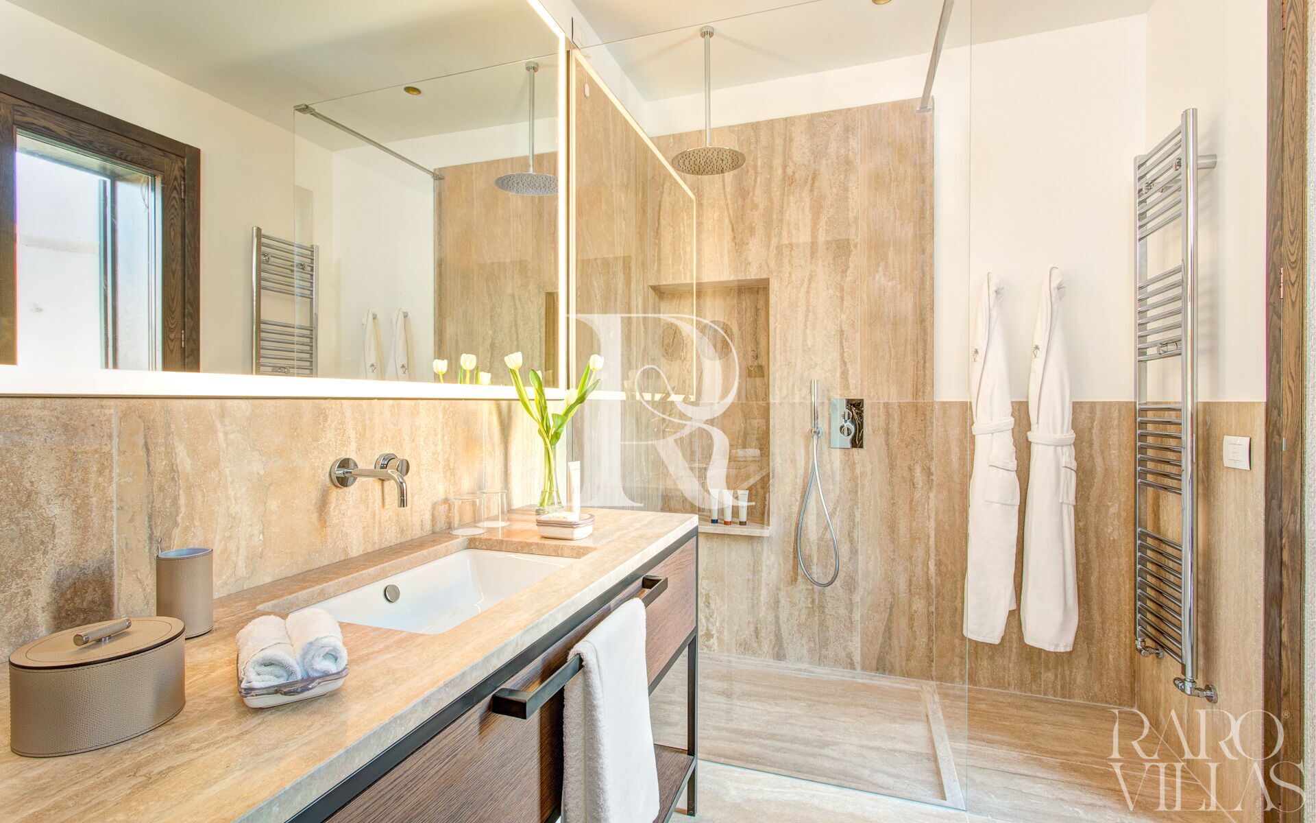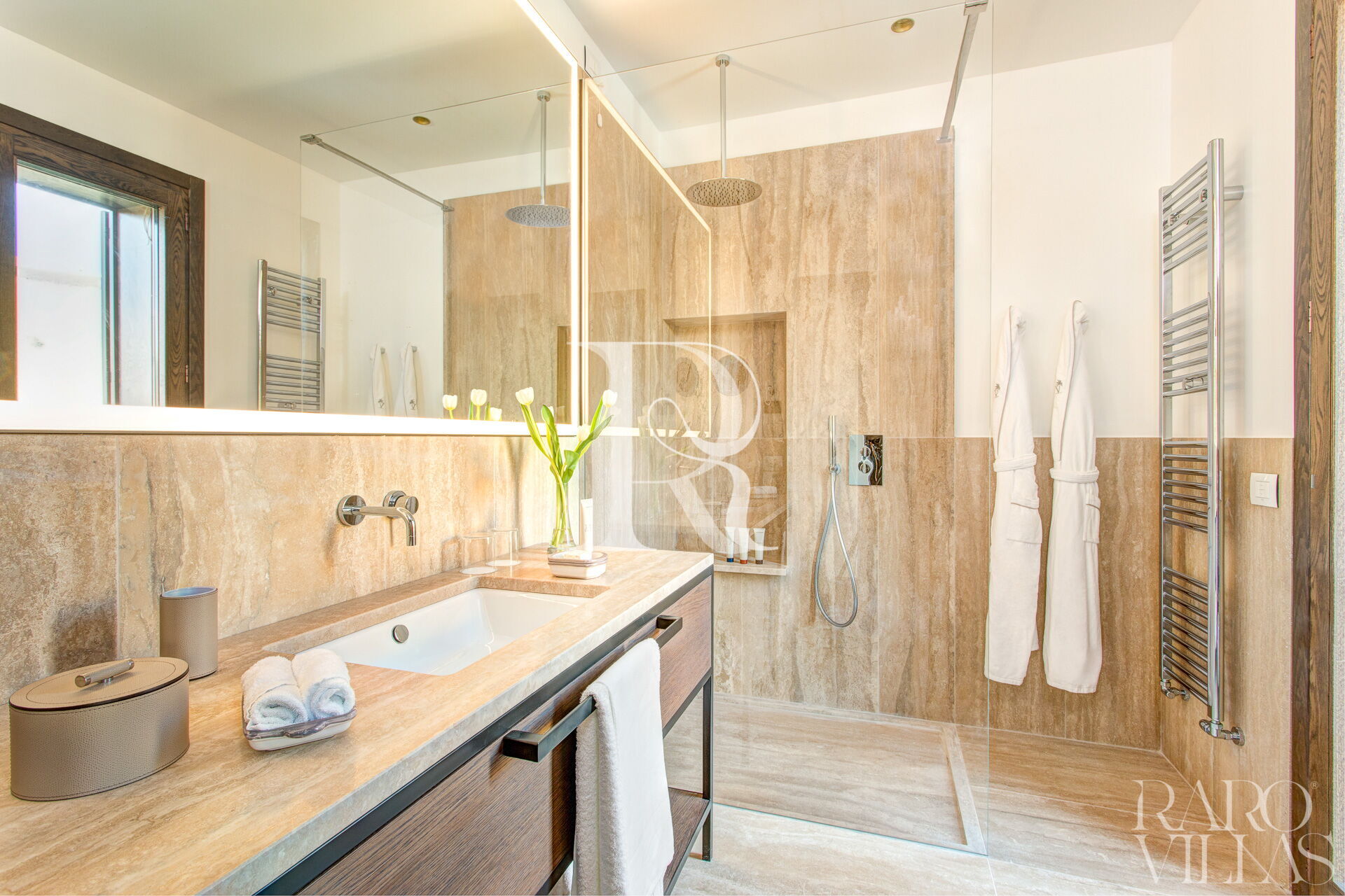 Your comfort is our priority, with each bedroom offering a king-size bed, television, in-room safe, en-suite bathroom, and a private terrace with breathtaking sea views. Indulge in luxury amenities in the bathrooms, including walk-in showers, heated towel rails, bathrobes, slippers, and Irene Forte Skincare bathroom products.