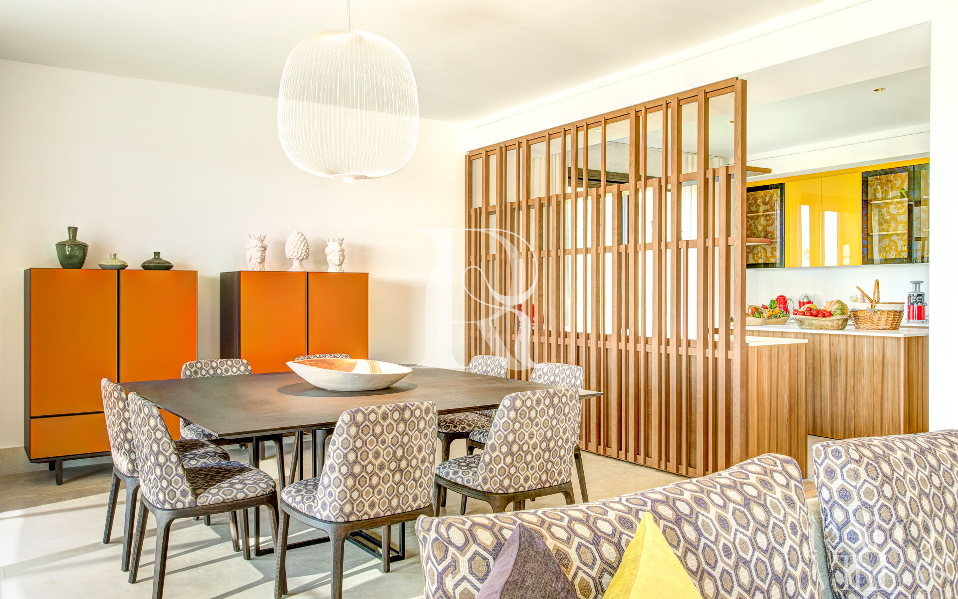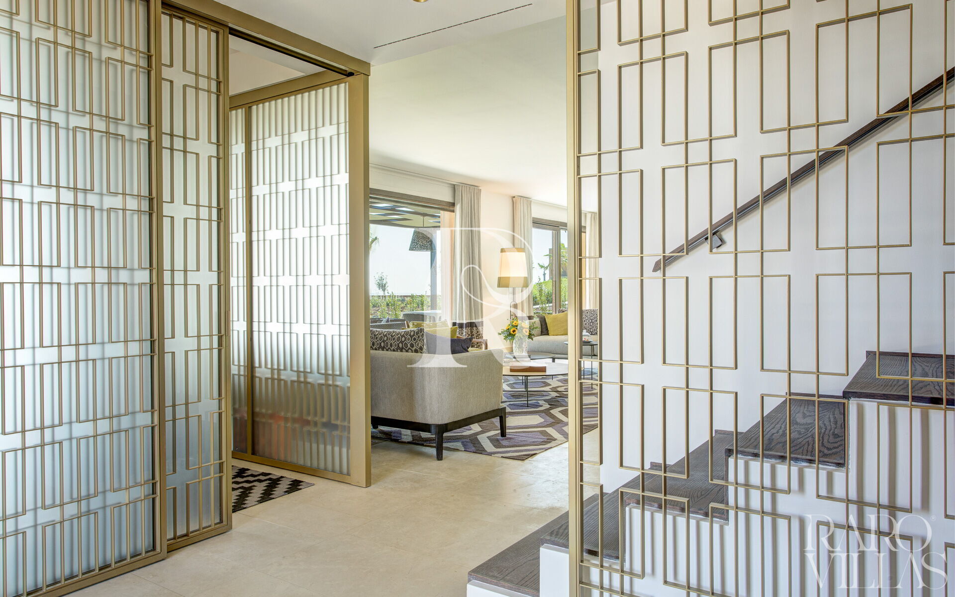 Step into a world of refined elegance as you enter the spacious open-plan ground floor, seamlessly blending a fully equipped kitchen with inviting dining and living areas bathed in natural light. With sweeping views of Verdura's prestigious golf courses and the azure horizon beyond, every moment here is infused with a sense of serenity and beauty.