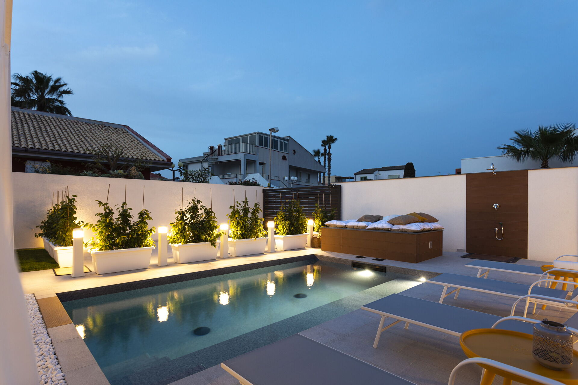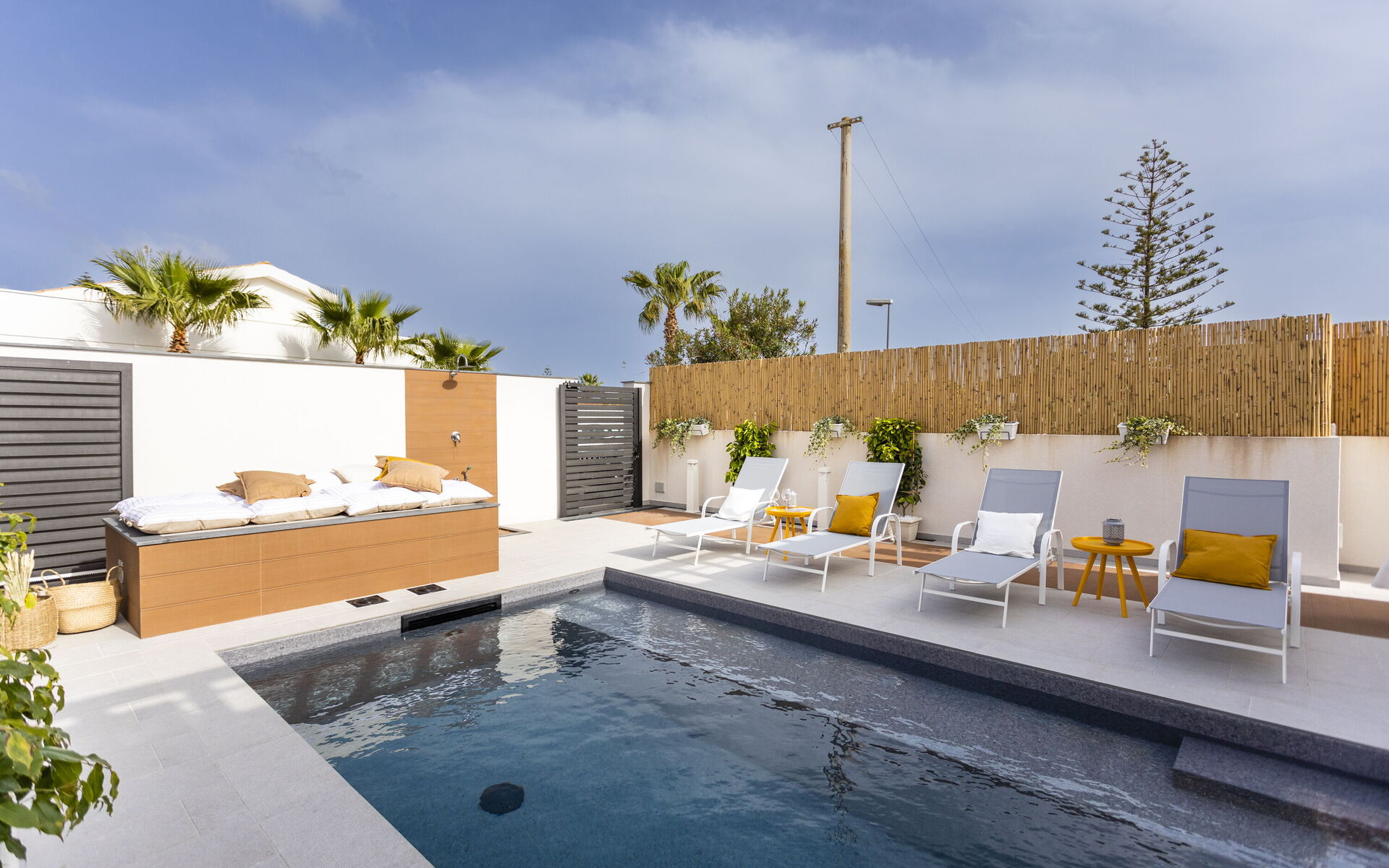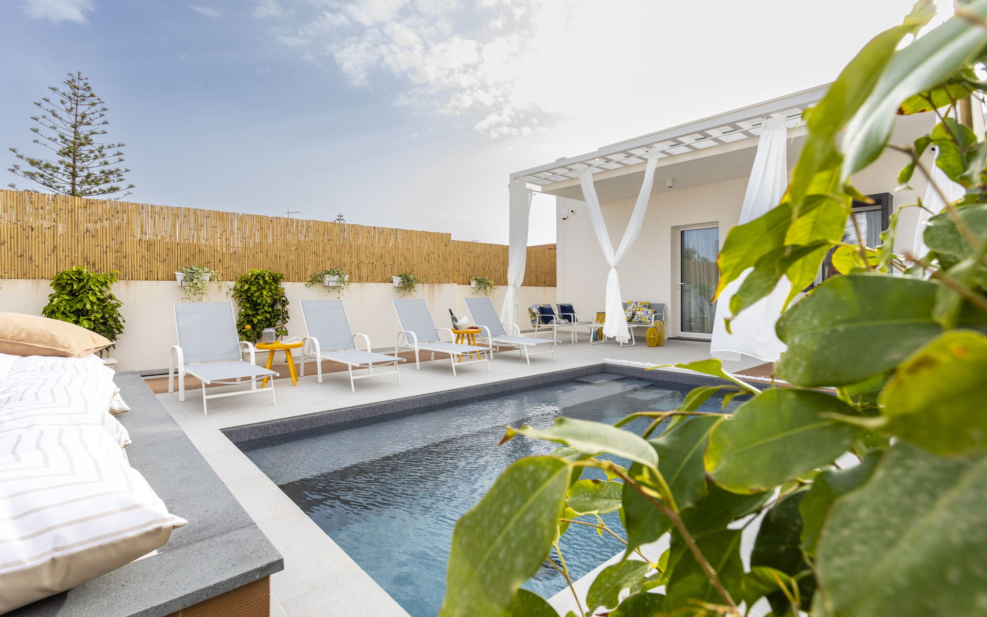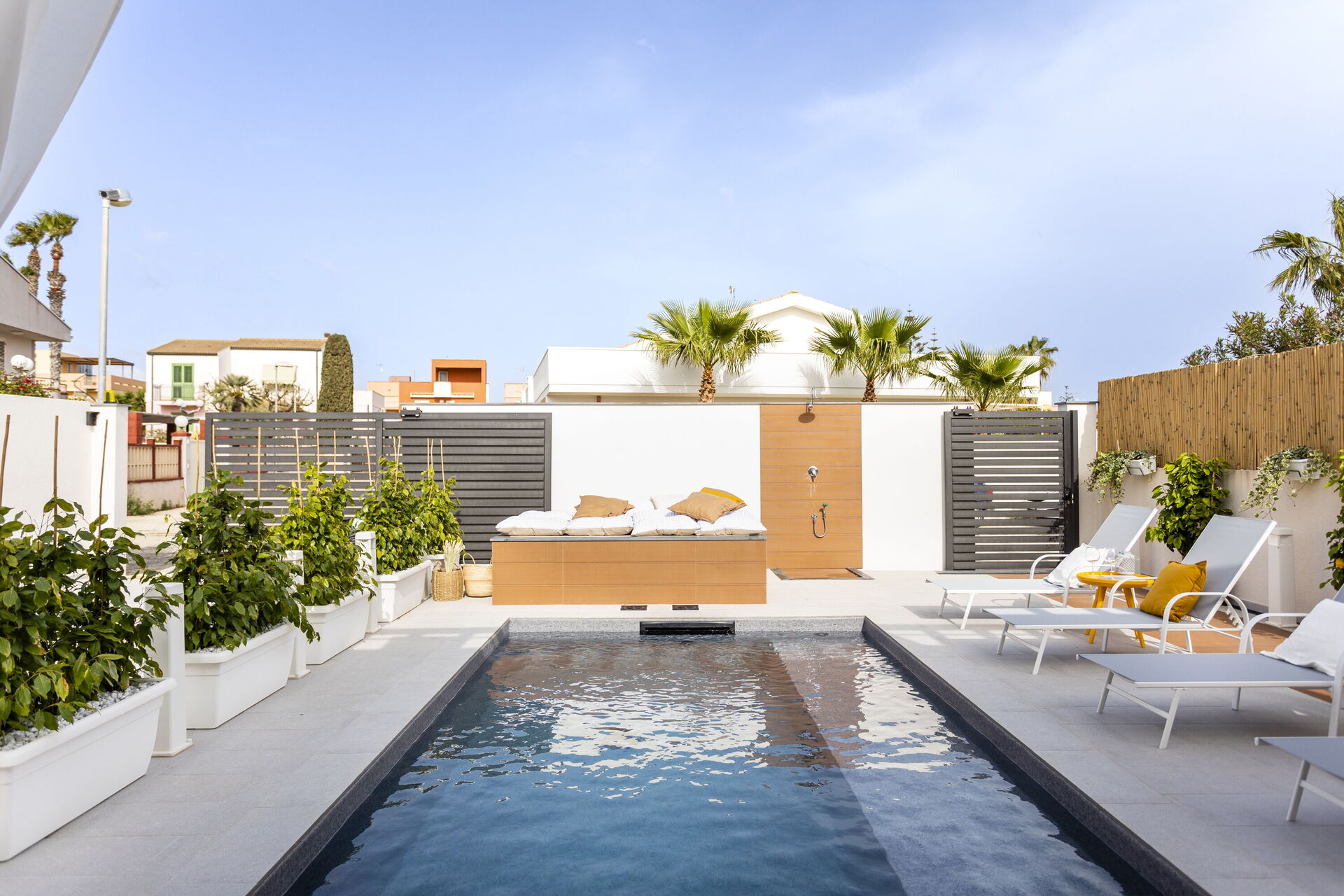 The holiday home in Sicily with pool is located in Santa Maria del Focallo, about 80 meters from the beach which, for its beauty, cleanliness and transparency of the sea, has been awarded the Blue Flag.