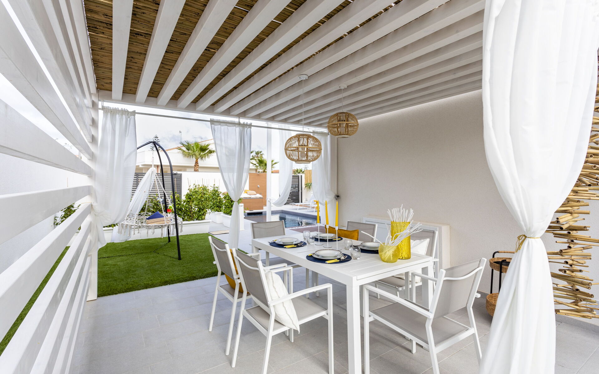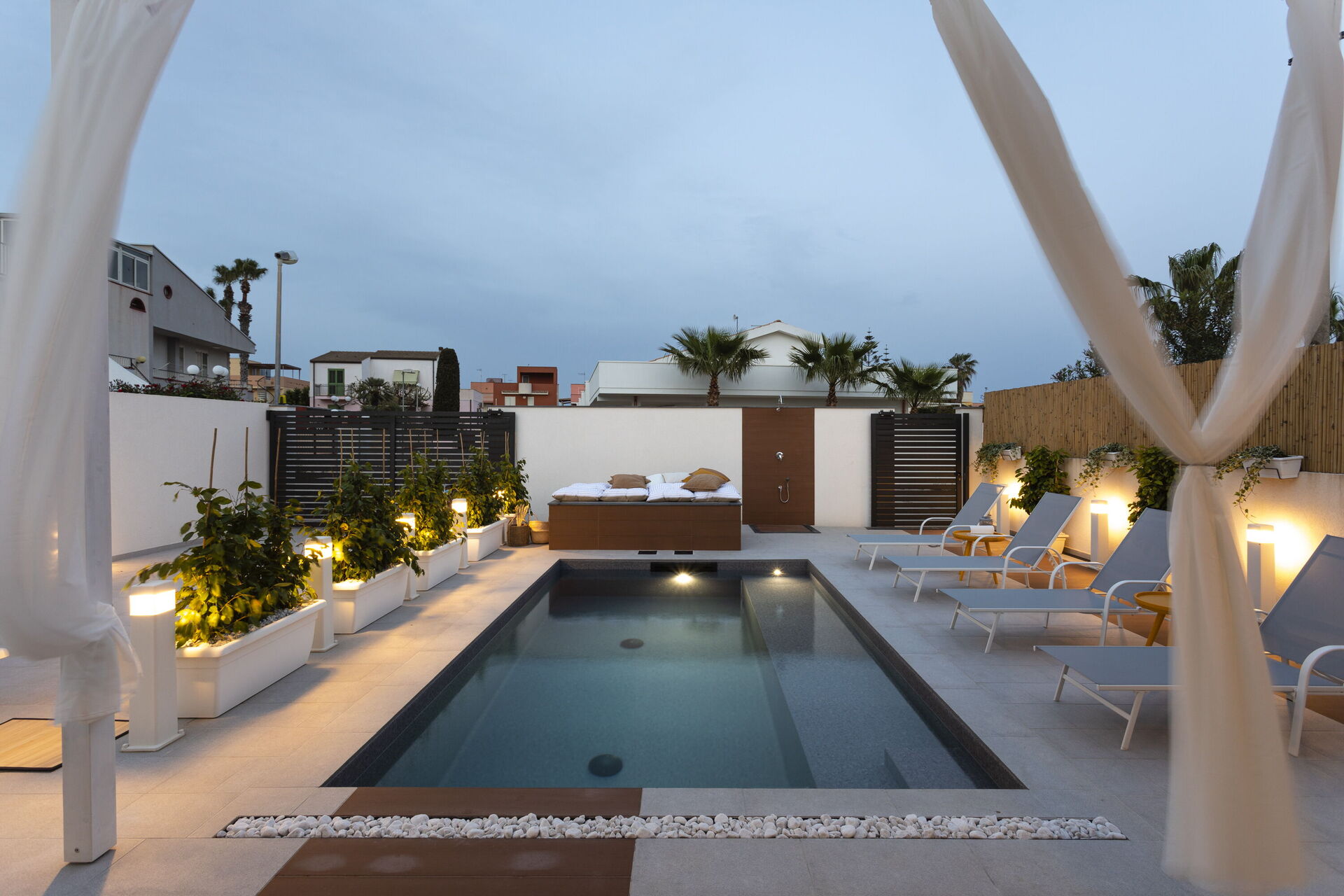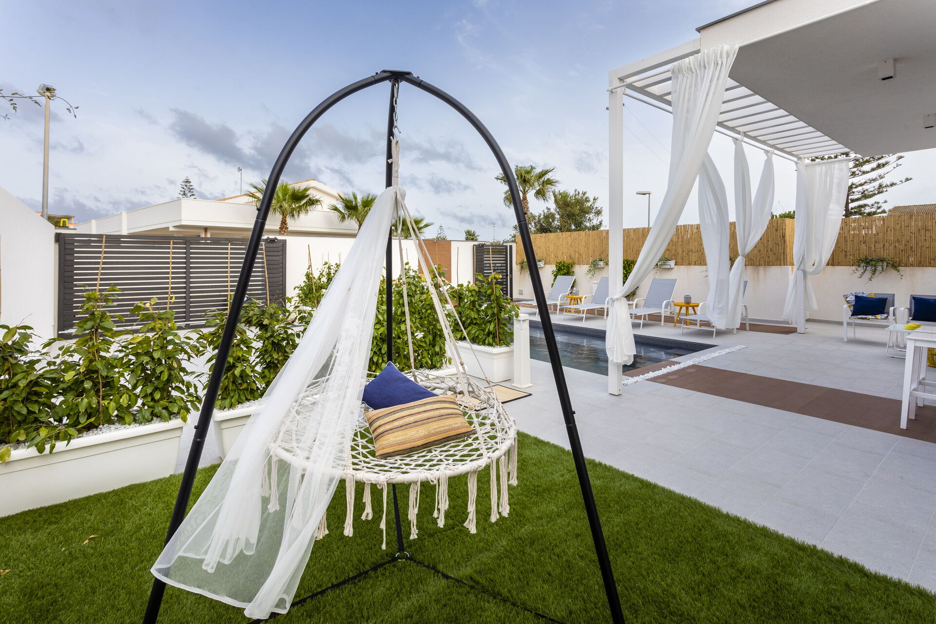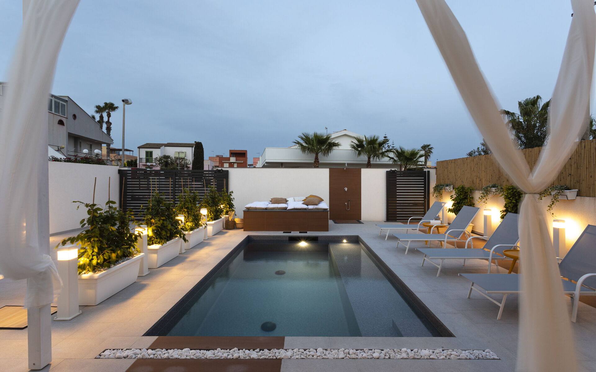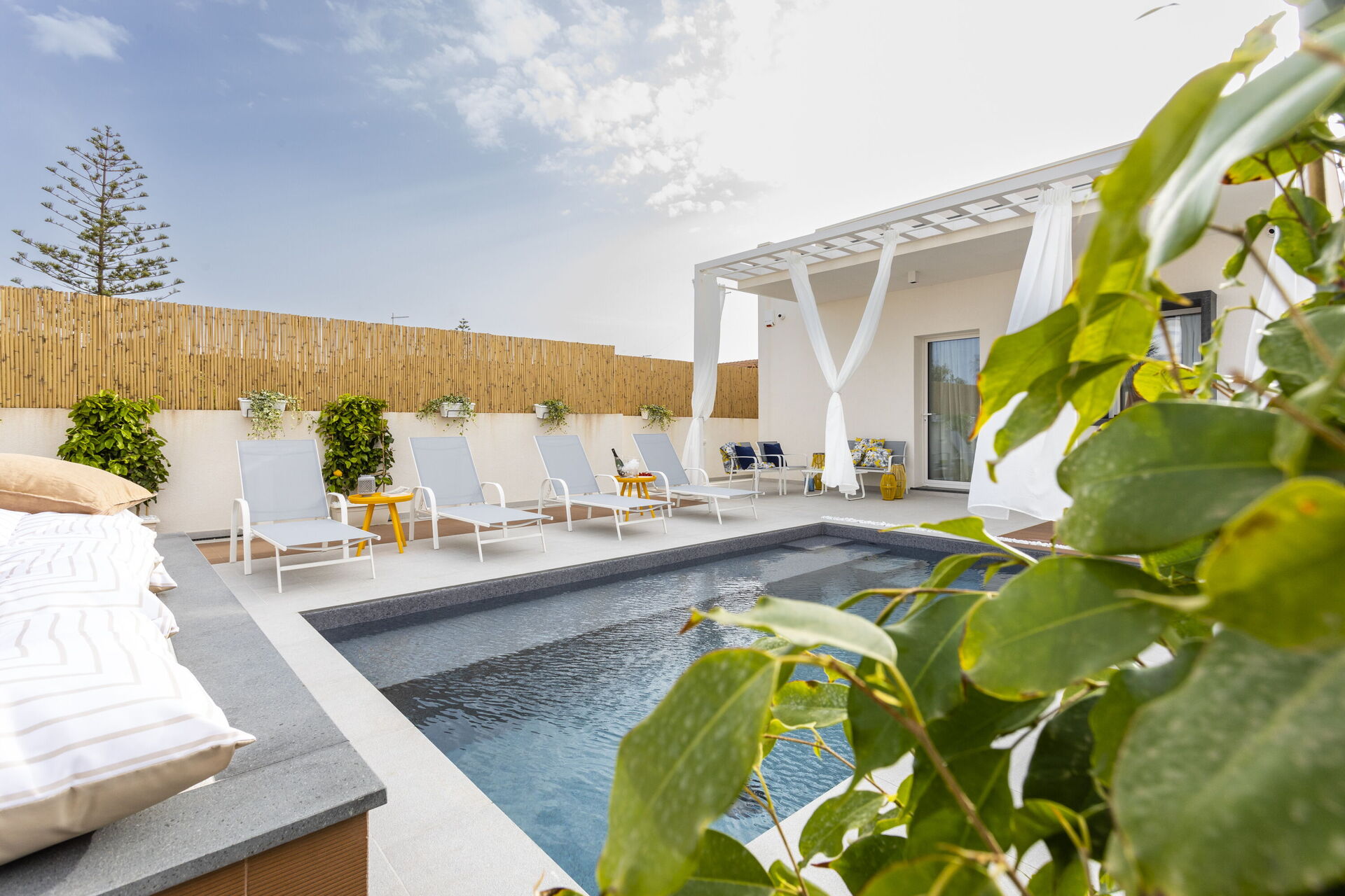 The holiday home in Sicily with pool is located in Santa Maria del Focallo, about 80 meters from the beach which, for its beauty, cleanliness and transparency of the sea, has been awarded the Blue Flag.