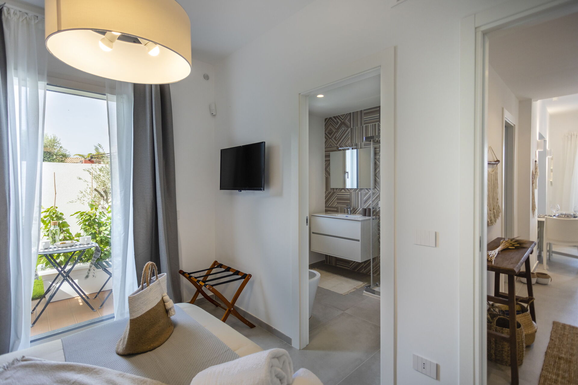 The rental property in sicily has, in fact, 2 double bedrooms with private bathroom, living room with open kitchen and a third bathroom for the living area which opens onto the welcoming outdoor veranda, perfect for having meals outside.