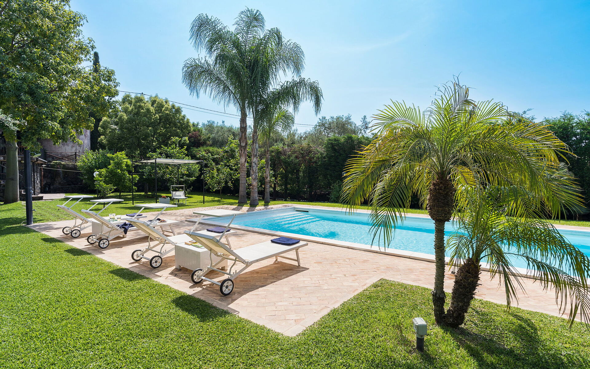 Oasi Verde - Santa Maria La Stella, Sicilia is gelegen in Santa Maria La Stella (Italië), en slechts 27 km van Catania in de streek "Taormina En Omgeving". Oasi Verde - Santa Maria La Stella, Sicilia is een prachtige accommodatie (200 m2) met privé zwembad, WiFi internet en air conditioning. De woning is comfortabel geschikt voor max. zes personen in drie slaapkamers en vier badkamers. De Italiaanse kust met prachtige stranden biedt u en uw reisgenoten een unieke ervaring en vele activiteiten zoals varen, duiken, zeilen, dineren en een schitterende zonsondergang, het is allemaal dichtbij (7 km).