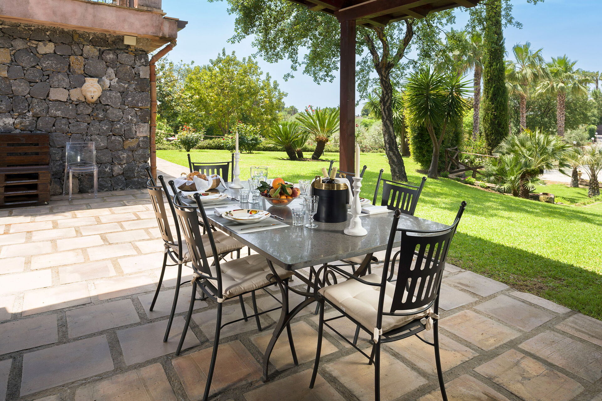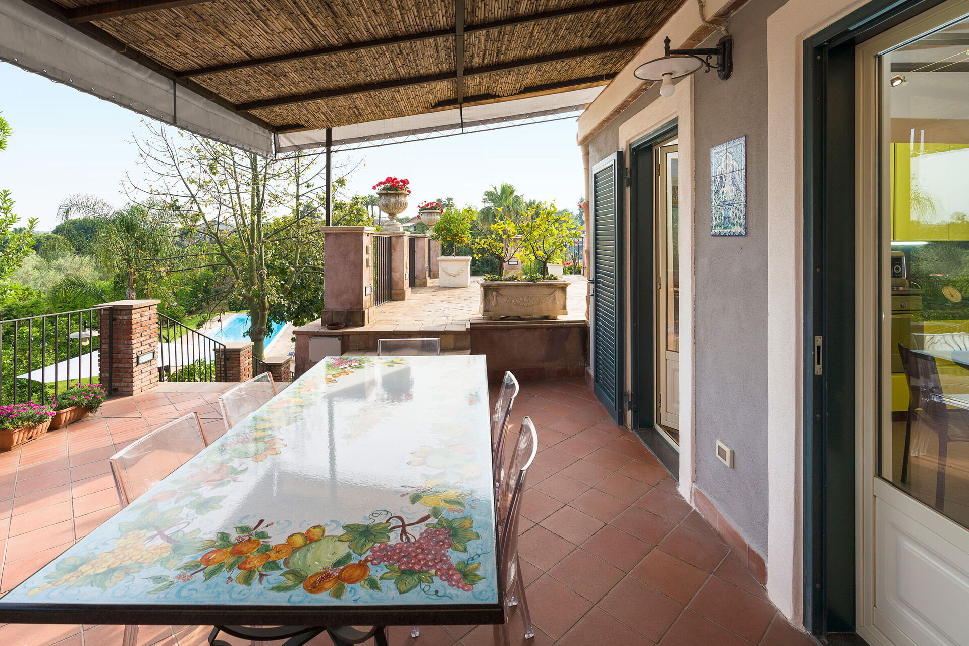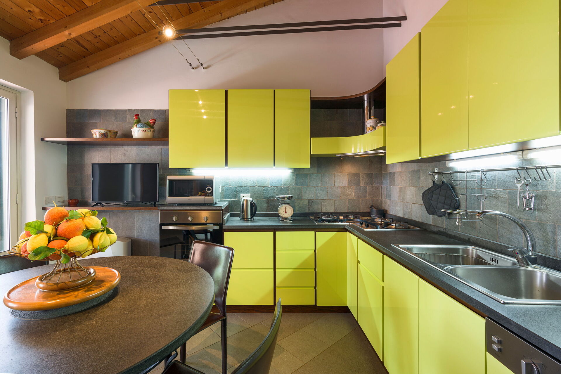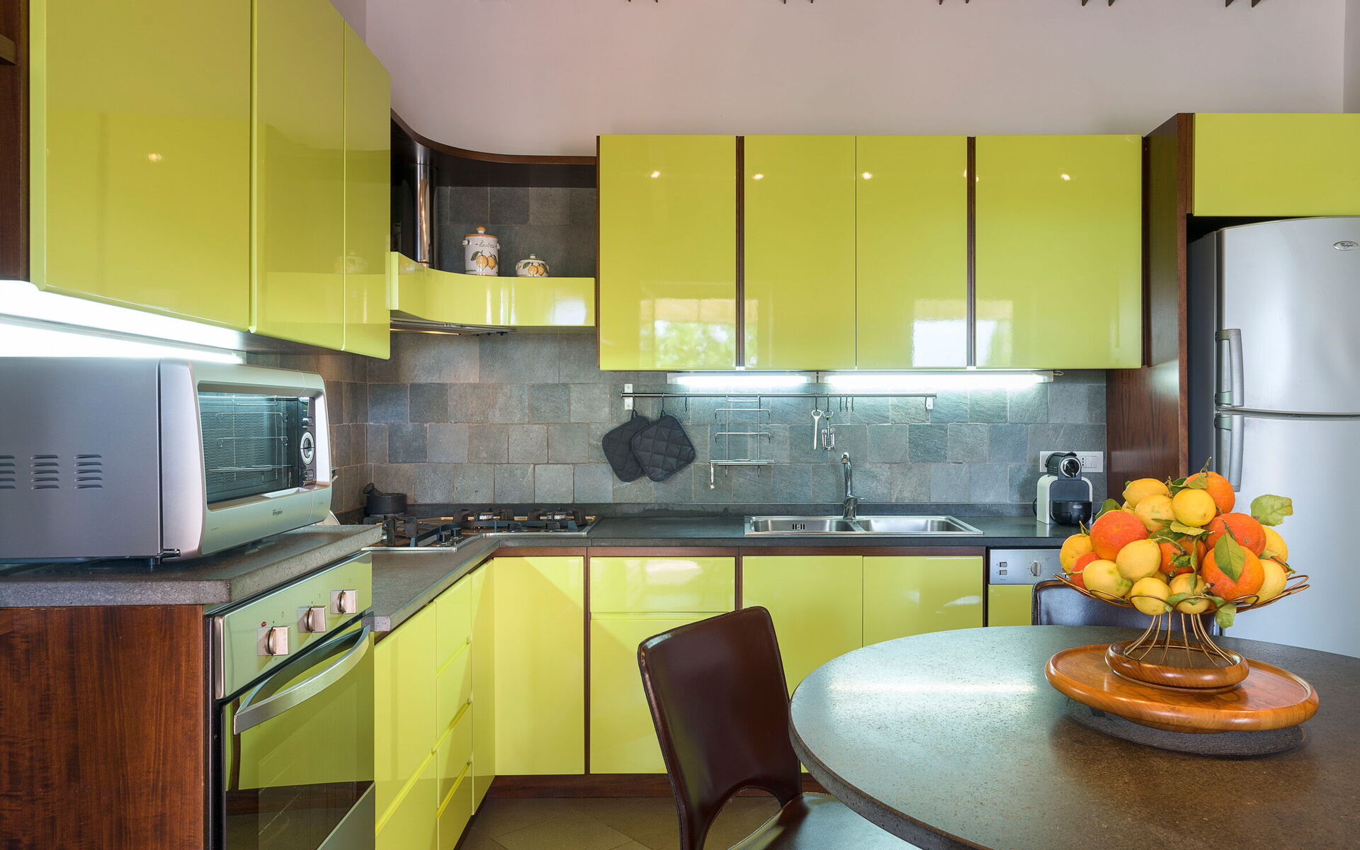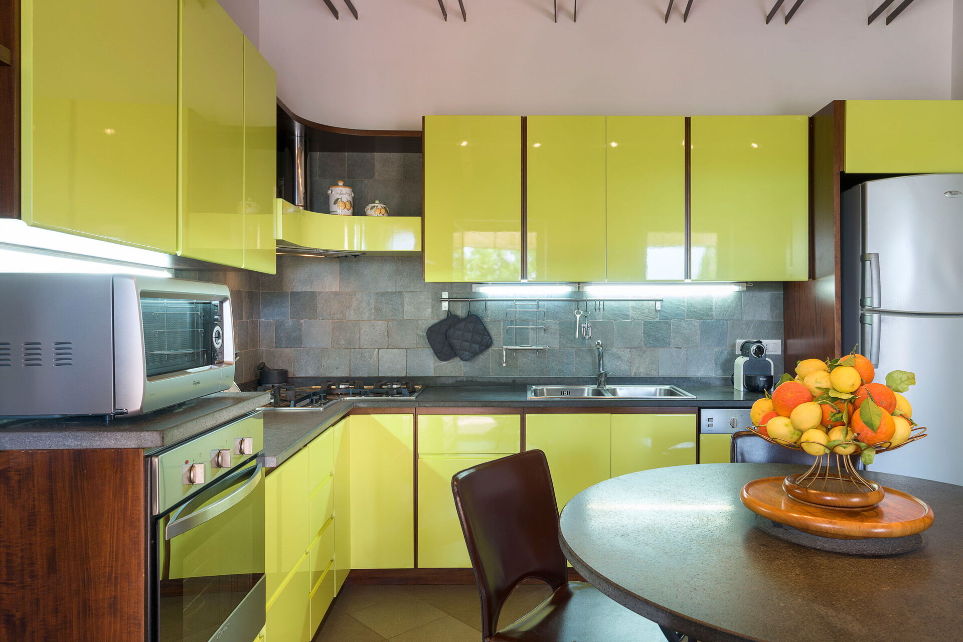 Wanneer u aankomt te Oasi Verde - Santa Maria La Stella, Sicilia vindt u een fraaie, schone en goed onderhouden woning perfect voor een ontspannen vakantie in Sicilië. Na een drukke dag winkelen kunt u de tijd doorbrengen met vrienden en familie bij het zwembad, en genieten van een glaasje wijn - een perfecte manier om te ontspannen aan het einde van de dag. Eten met vrienden en familie is een grote onderdeel van de Italiaanse cultuur. Maak gebruik van de goed uitgeruste keuken om maaltijden te bereiden met lokale producten terwijl u op vakantie bent. De keuken biedt o.a. een koffiezetapparaat, magnetron oven, broodrooster, fornuis en ijskast, en natuurlijk ook voldoende servies en bestek voor minstens zes personen.