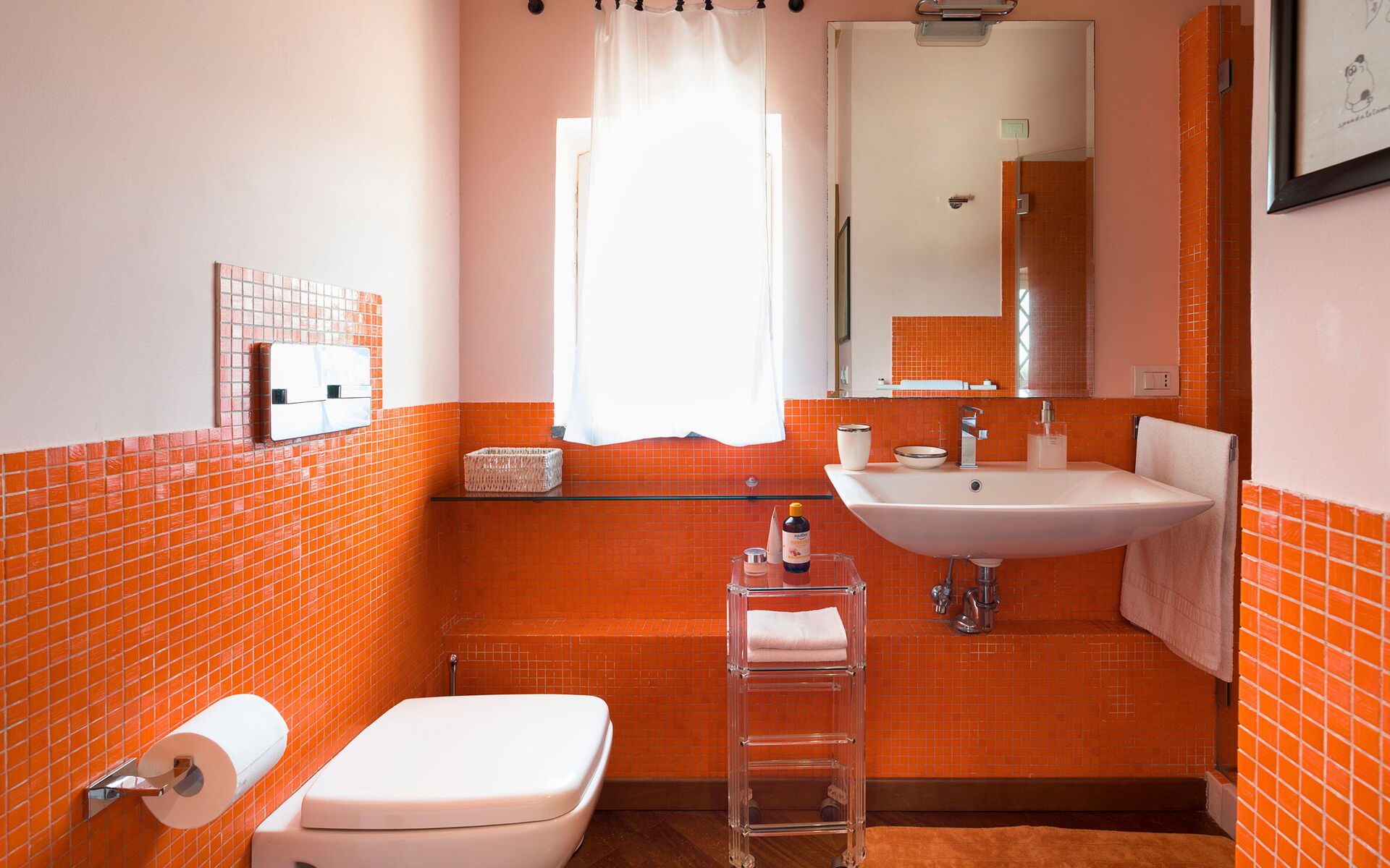 Badkamer: wastafel, toilet , bidet, douche, WIFI internet, internet.