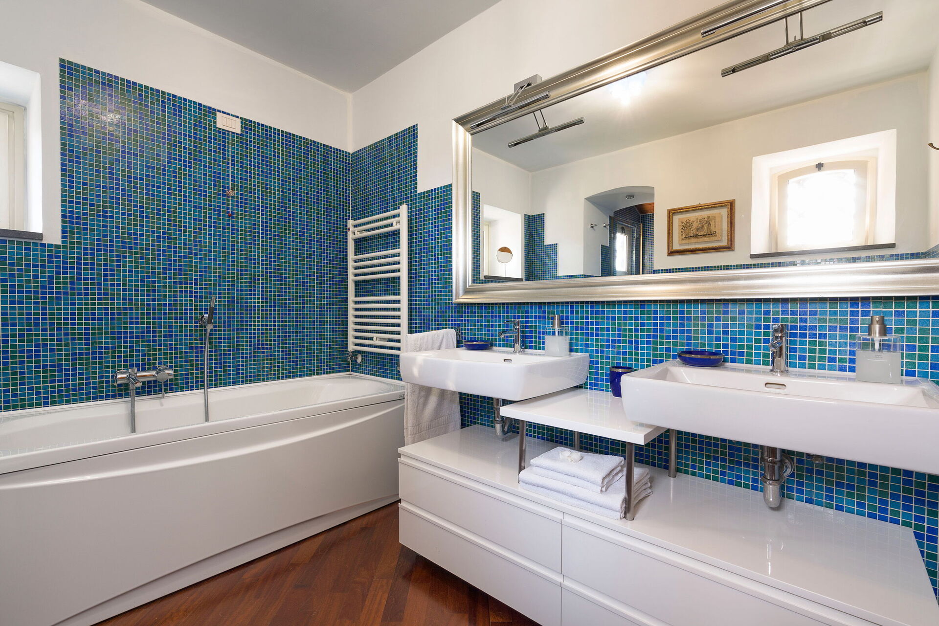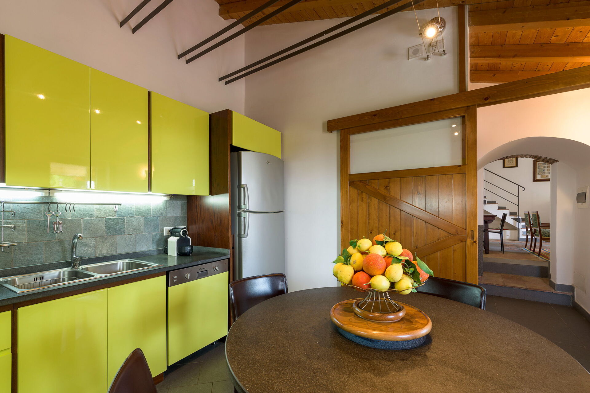 Keuken: goed uitgeruste keuken, vaatwasser, ijskast, diepvriezer, magnetron, kookplaat, oven, broodrooster, italiaans koffiezetapparaat, koffiezetapparaat, WIFI internet, internet, airconditioning, kinderstoel, rookmelder.