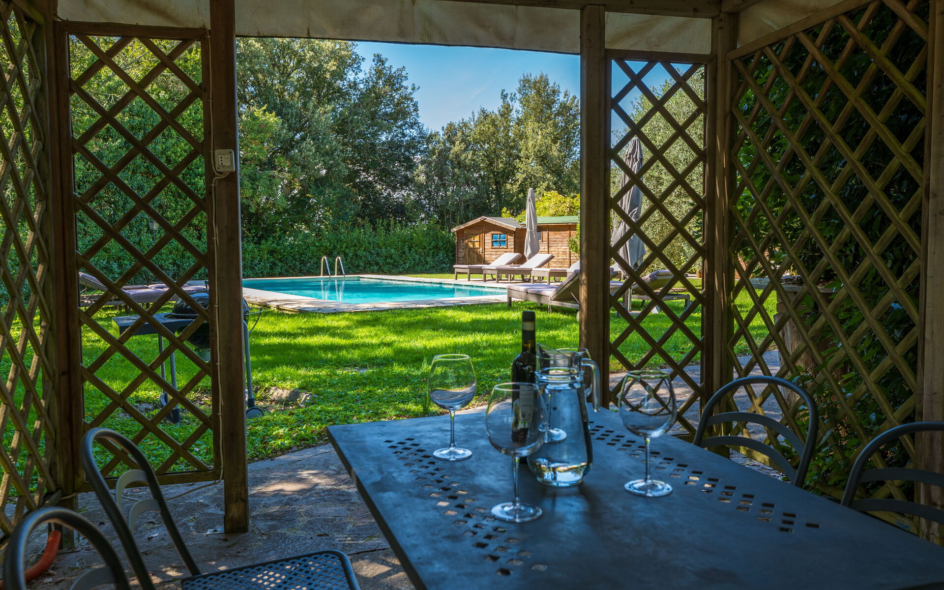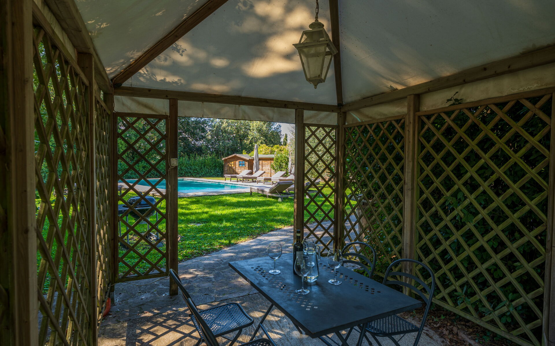 Tuin: zwembad (privé, buiten), douche, barbecue, dineren in de buitenlucht, eettafel, gazebo, tuinmeubilair, 12 ligstoelen, omheind, omheind grondstuk.