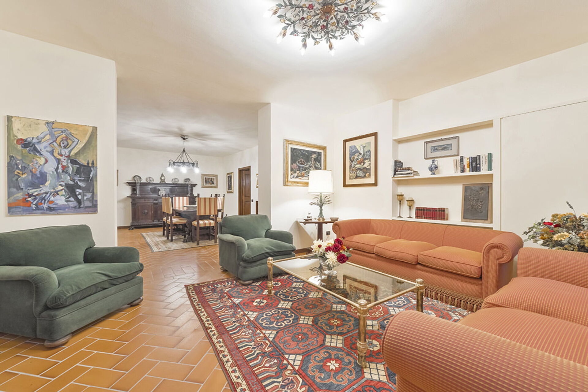 Woonkamer: bank, eettafel.