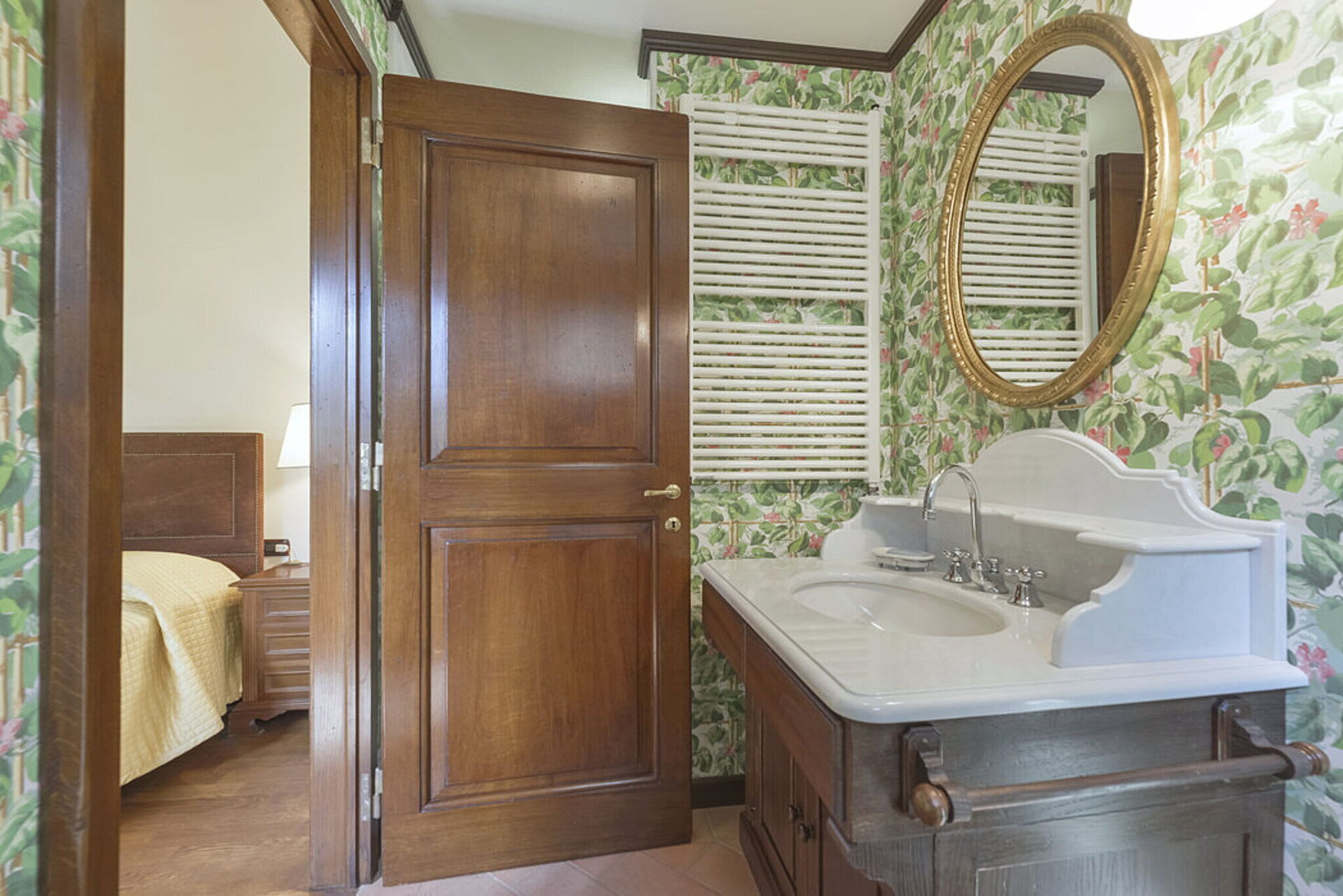 Slaapkamer met badkamer 1: tweepersoonsbed, WIFI internet, airconditioning, wastafel, toilet , bidet, bad.