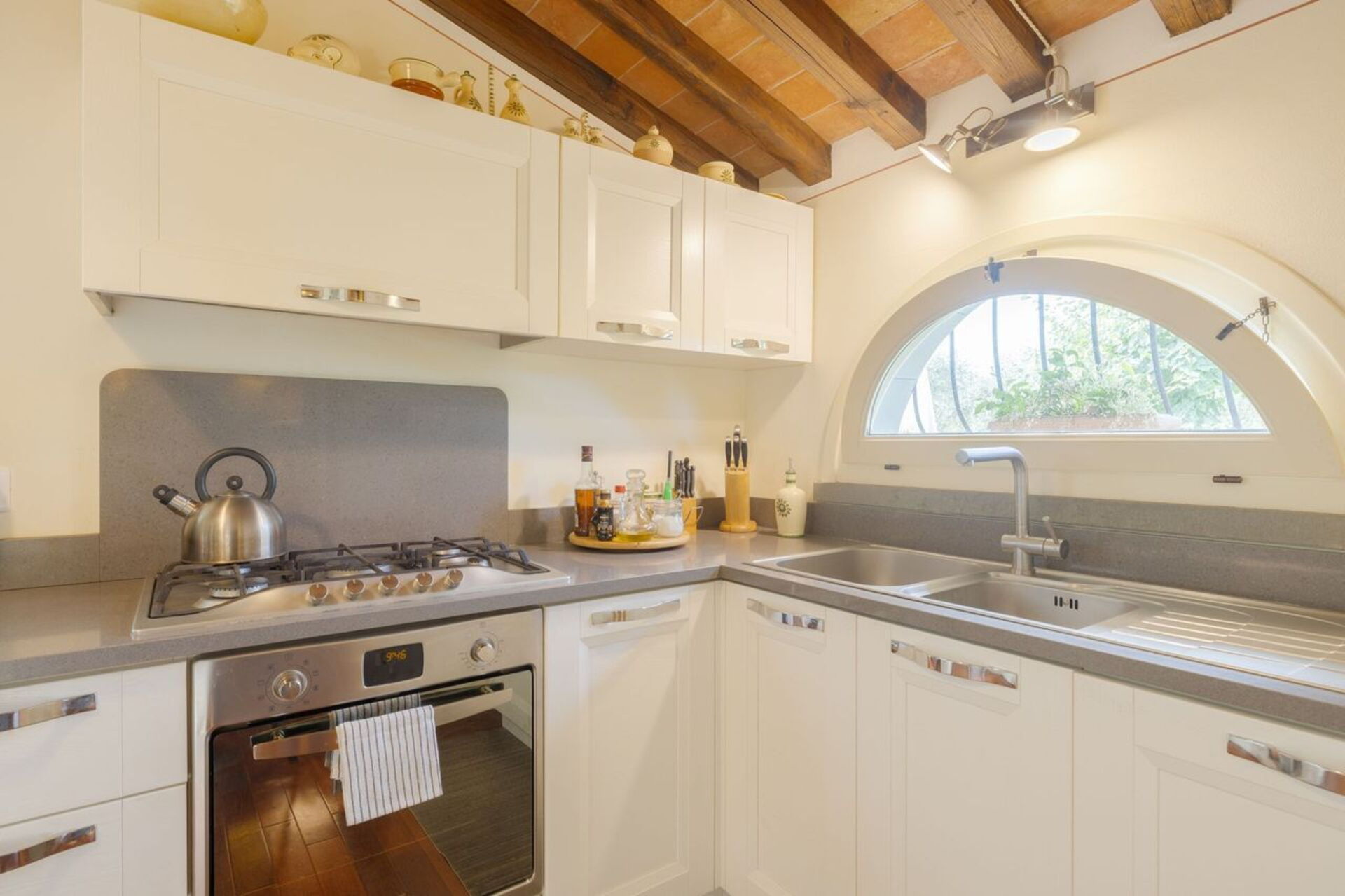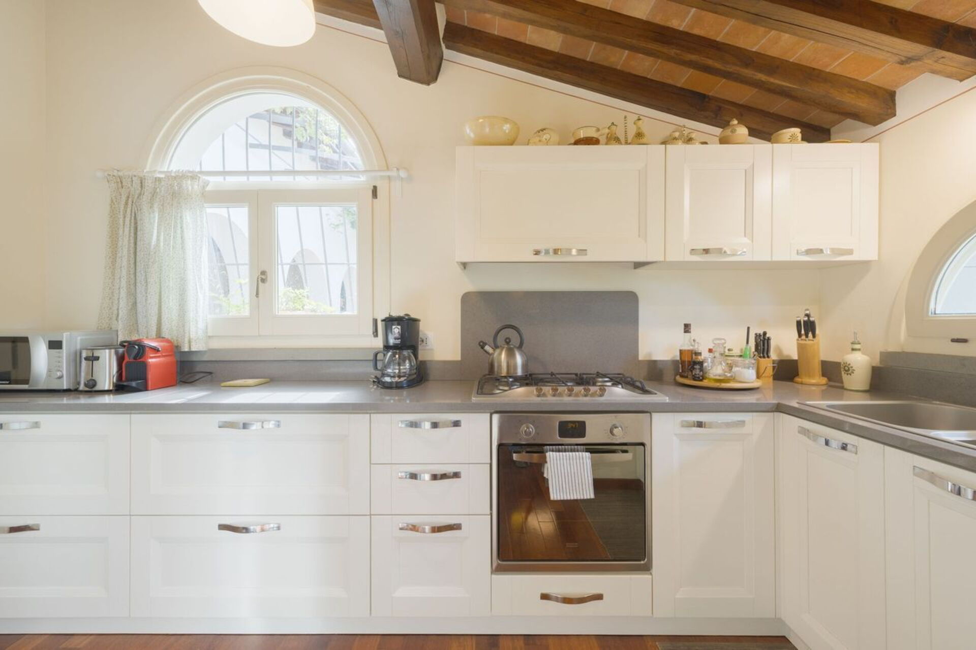 Keuken: goed uitgeruste keuken, vaatwasser, ijskast, diepvriezer, magnetron, kookplaat, oven, broodrooster, italiaans koffiezetapparaat, koffiezetapparaat, WIFI internet, uitgang naar de patio.