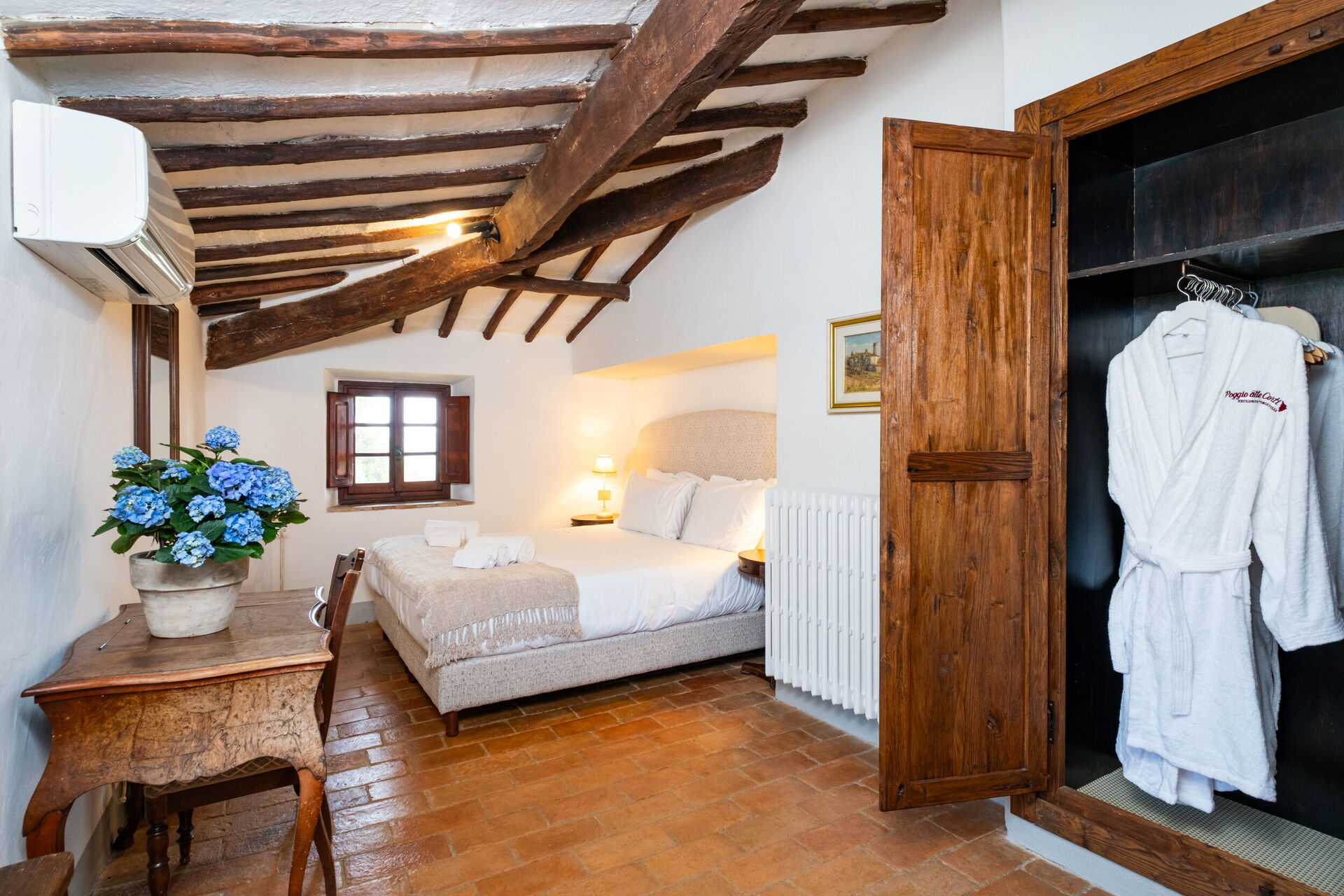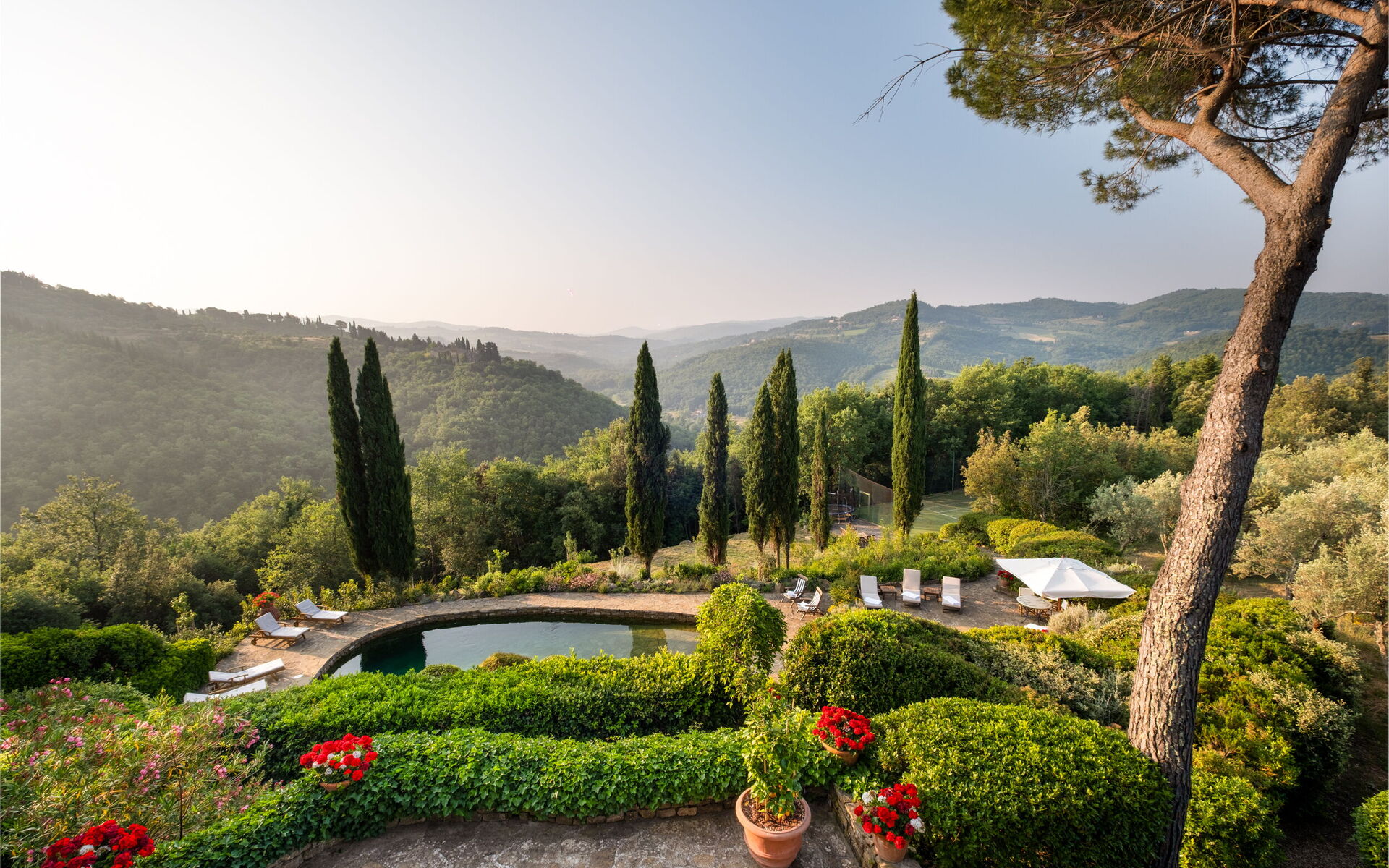Bij aankomst vindt u een mooie, schone en goed onderhouden woning perfect voor een rustige vakantie in Toscane. Na een hectische dag musea bezoeken kunt u de tijd doorbrengen met vrienden en familie bij het zwembad, en genieten van een glaasje wijn - een perfecte manier om te uitrusten aan het einde van de dag. Op het terrein is er voor uw genoegen een barbecue, tennisbaan en terras. Als u van koken houdt is er een goed uitgeruste keuken met o.a. koffiezetapparaat, magnetron oven, broodrooster en ijskast en natuurlijk voldoende servies en bestek voor tot 12 personen. Als u liever buiten eet is er een patio waar u van het weer kan genieten terwijl u buiten eet.