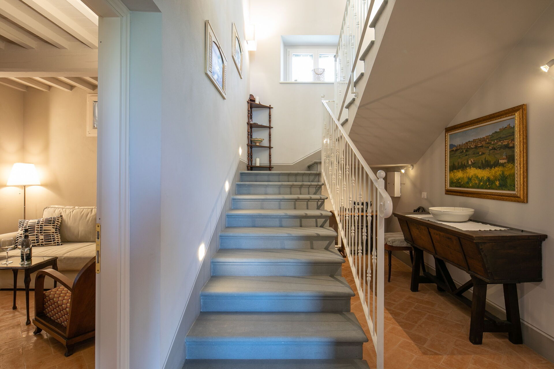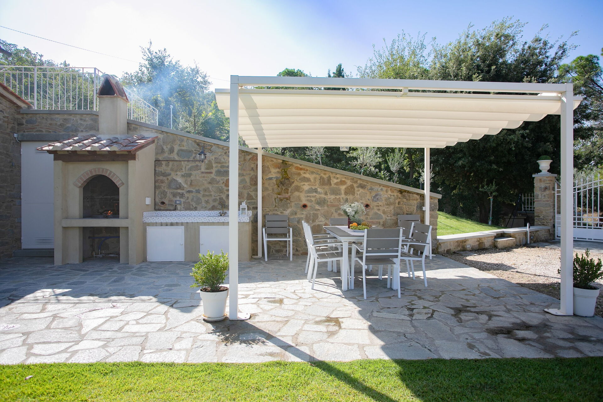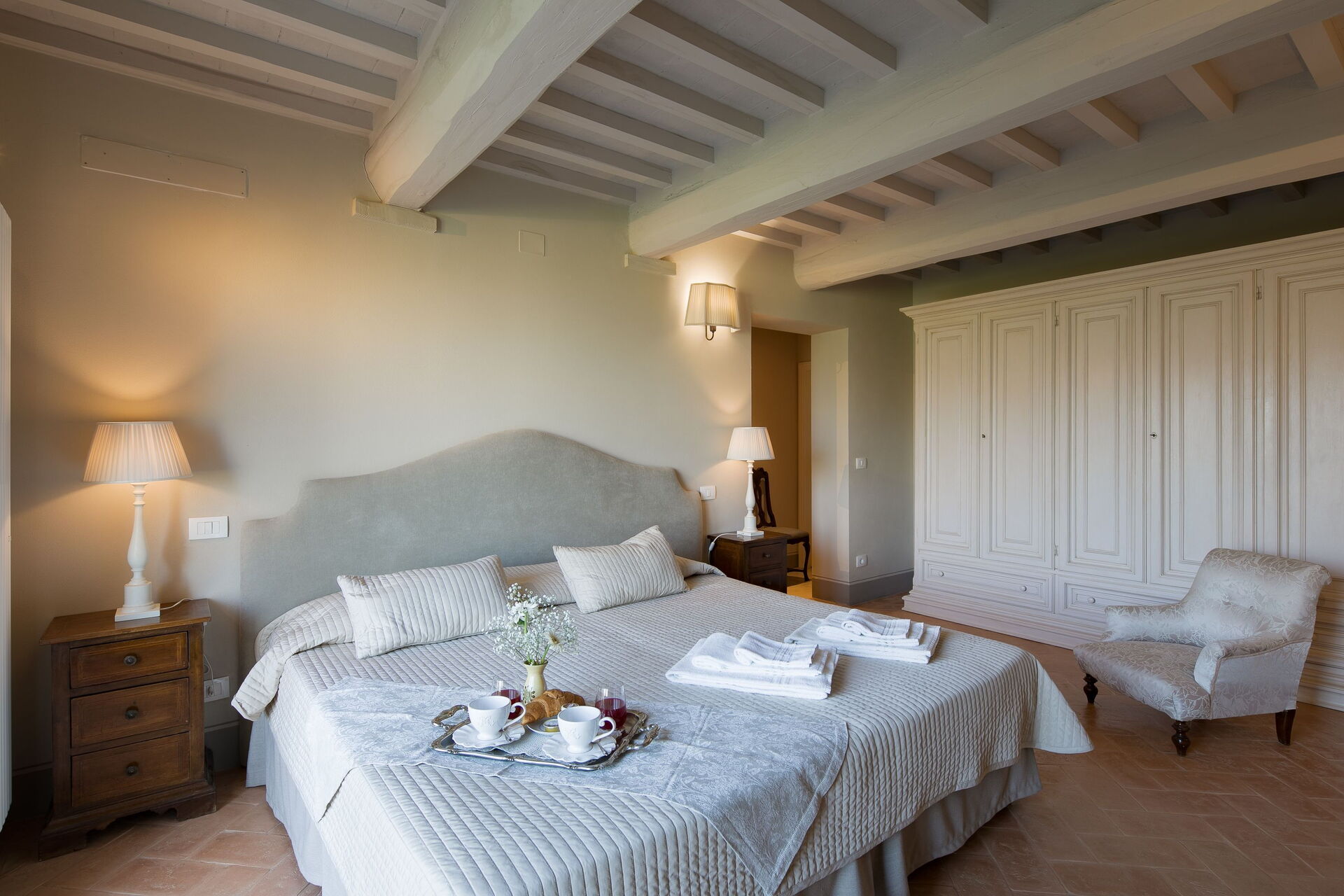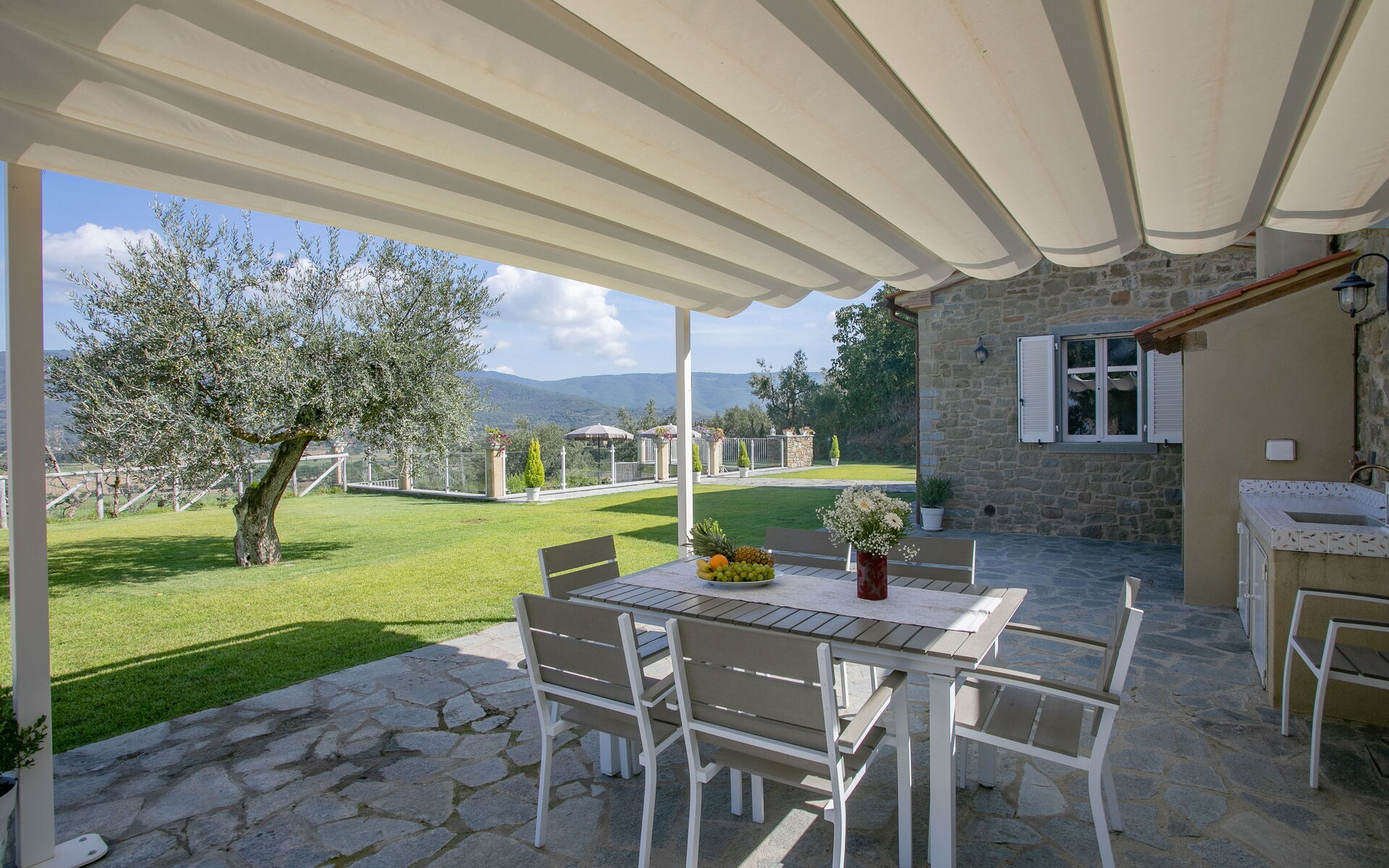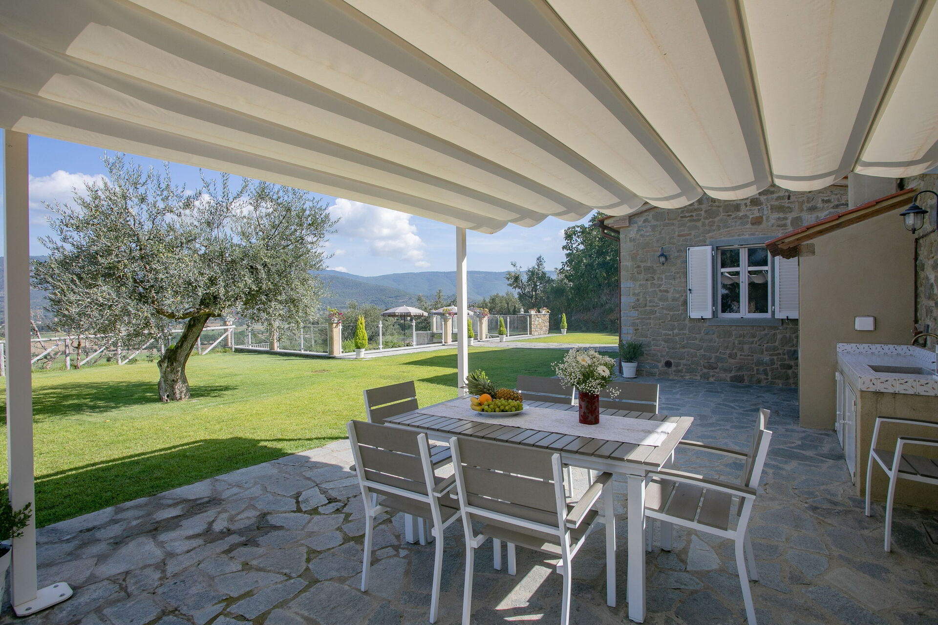 Wanneer u aankomt te Villa Giulietta vindt u een prachtige, schone en goed onderhouden woning met uitzicht over de heuvels perfect voor een geweldige vakantie in Toscane. Na een hectische dag toeren kunt u de tijd doorbrengen met vrienden en familie bij het zwembad, en genieten van een glaasje wijn - een perfecte manier om te ontspannen aan het einde van de dag. Dineren met vrienden en familie is een grote onderdeel van de Toscaanse cultuur. Maak gebruik van de goed uitgeruste keuken om maaltijden te bereiden met lokale producten terwijl u op vakantie bent. De keuken biedt o.a. een koffiezetapparaat, magnetron oven, broodrooster, fornuis en ijskast, en natuurlijk ook voldoende servies en bestek voor minstens acht personen. Eet buiten net zoals een echte Toskaan, een veranda met tuinmeubilair is perfect om te genieten van het heerlijke eten, de familie en het prachtige Toscaanse klimaat.