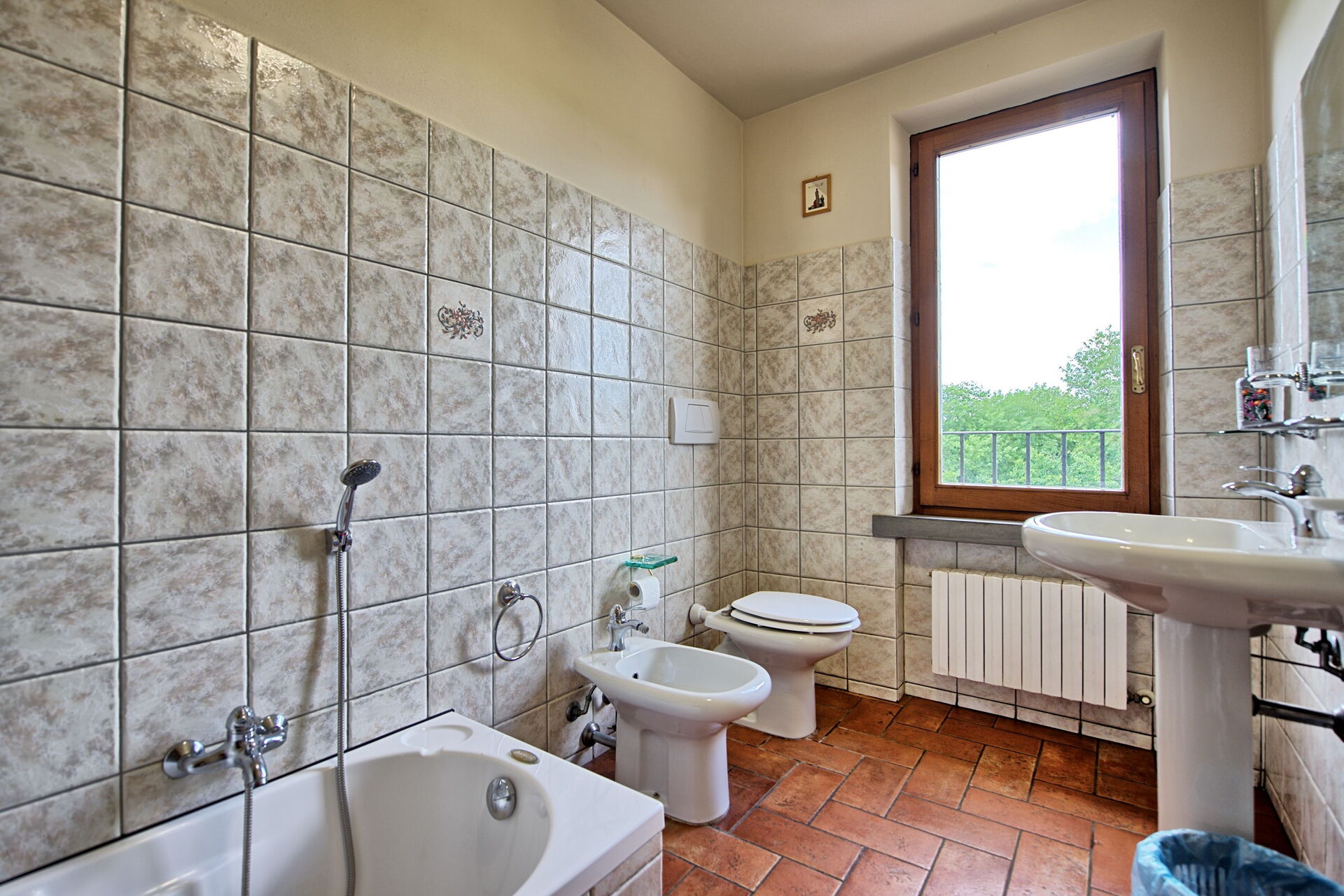 Begane grond: ingang tot de ontbijtruimte met Sat-TV en houtkachel, keuken (fornuis, koelkast, vaatwasser, magnetron, koffiezet apparaat, waterkoker) met uitgang naar buiten, slaapkamer (airconditioning) met tweepersoonsbed, slaapkamer (airconditioning) met tweepersoonsbed en privé balkon, badkamer met douche, badkamer met badkuip, slaapkamer (airconditioning) met 2 eenpersoonsbedden.