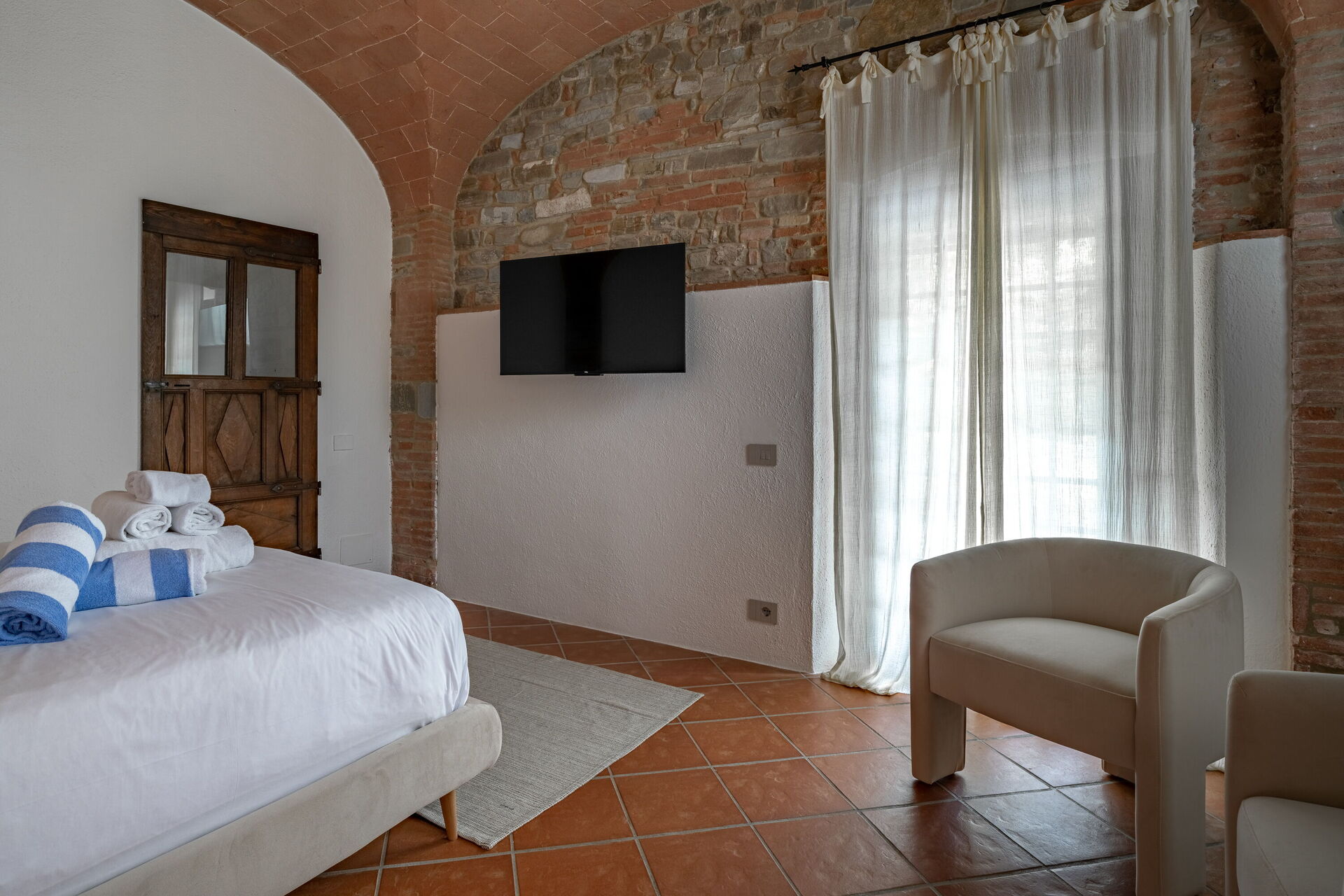 Wanneer u aankomt vindt u een fraaie, schone en goed onderhouden woning met uitzicht over de heuvels ideaal voor een ontspannen vakantie in Toscane. Na een hectische dag musea bezoeken kunt u de tijd doorbrengen met vrienden en familie bij het zwembad, en genieten van een glaasje wijn - een perfecte manier om te uitrusten aan het einde van de dag. Dineren met vrienden en familie is een grote onderdeel van de Toscaanse cultuur. Maak gebruik van de goed uitgeruste keuken om maaltijden te bereiden met lokale producten terwijl u op vakantie bent. De keuken biedt o.a. een koffiezetapparaat, magnetron oven, broodrooster, fornuis en ijskast, en natuurlijk ook voldoende servies en bestek voor minstens 18 personen. Eet buiten net zoals een echte Toskaan, een tuin met tuinmeubilair is ideaal om te genieten van het heerlijke eten, de familie en het mooie Toscaanse klimaat.
