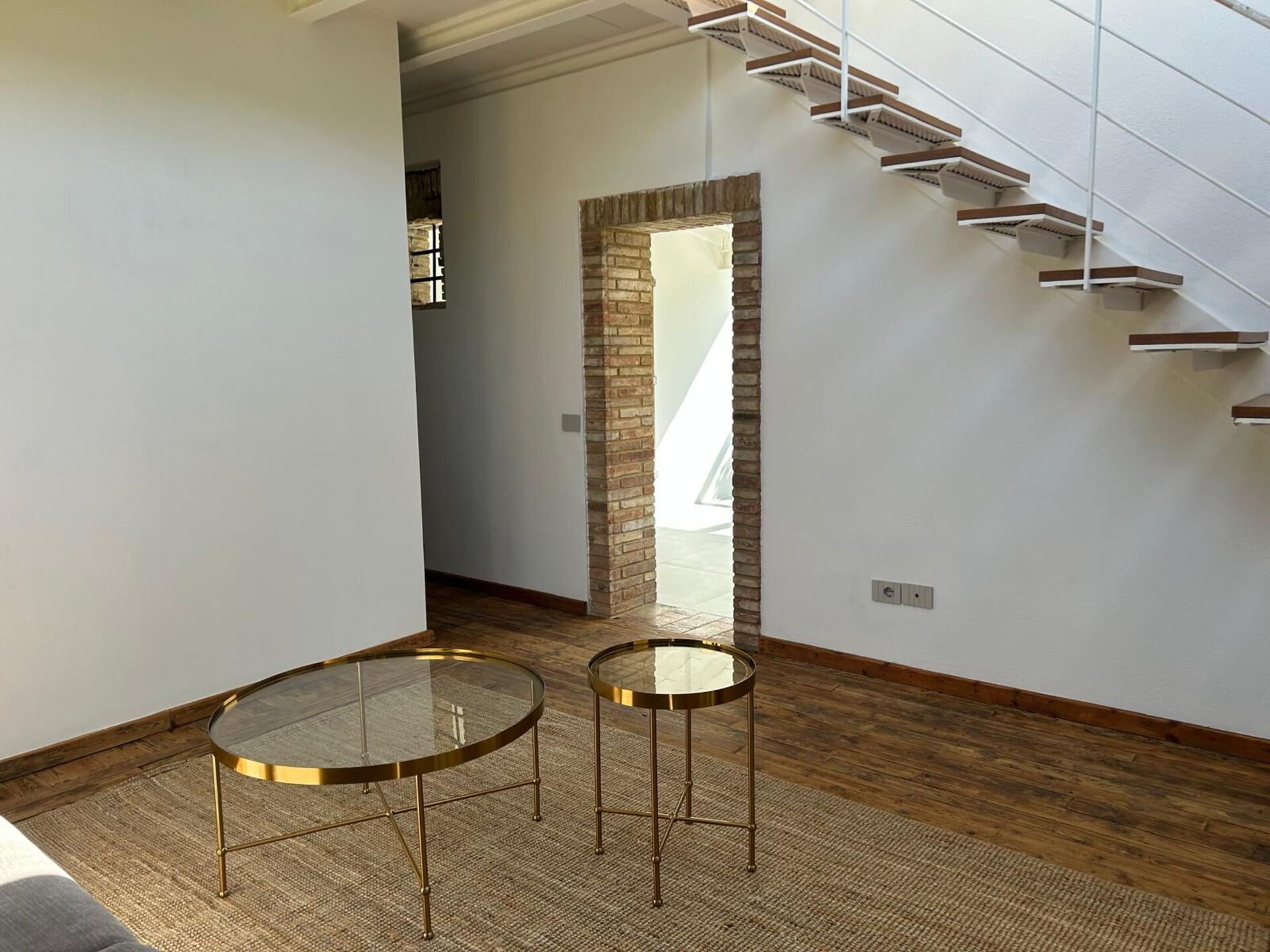 Woonkamer: twee banken (personen: 8), fauteuil, WIFI internet, tv, twee plafondventilatoren, uitgang naar de tuin.