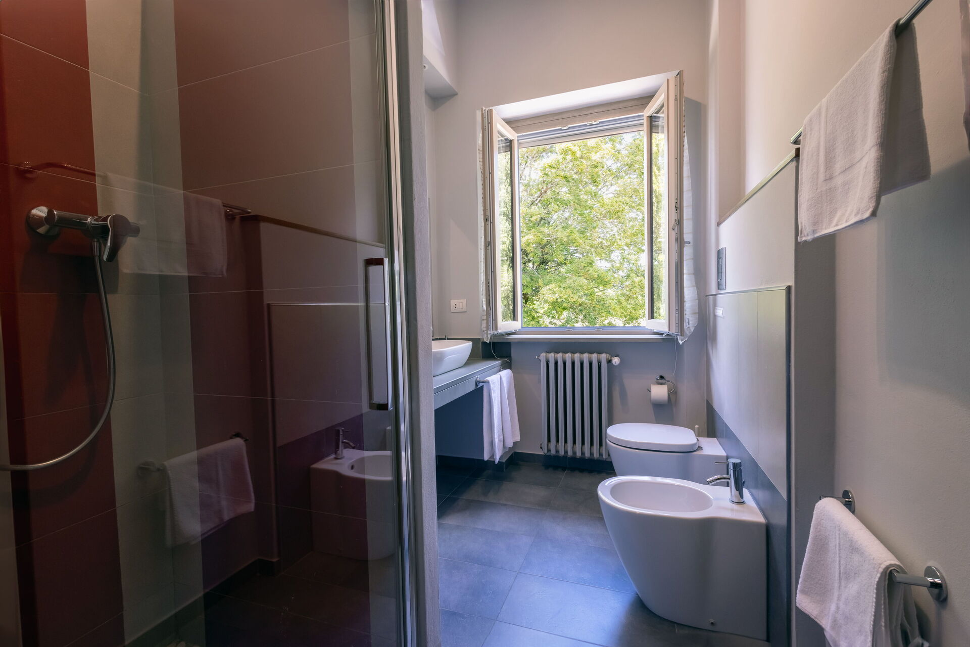 Slaapkamer met badkamer 3 (14 m2): twee eenpersoonsbedden (breedte: 1.6m, lengte: 2m), WIFI internet, airconditioning, hor, bureau, wastafel, toilet , bidet, douche, haardroger.
