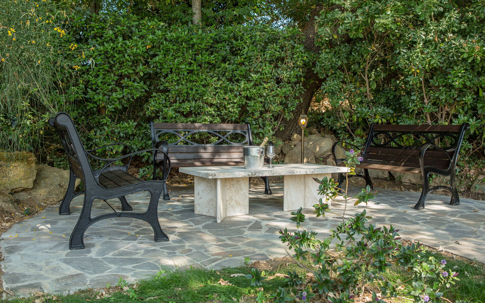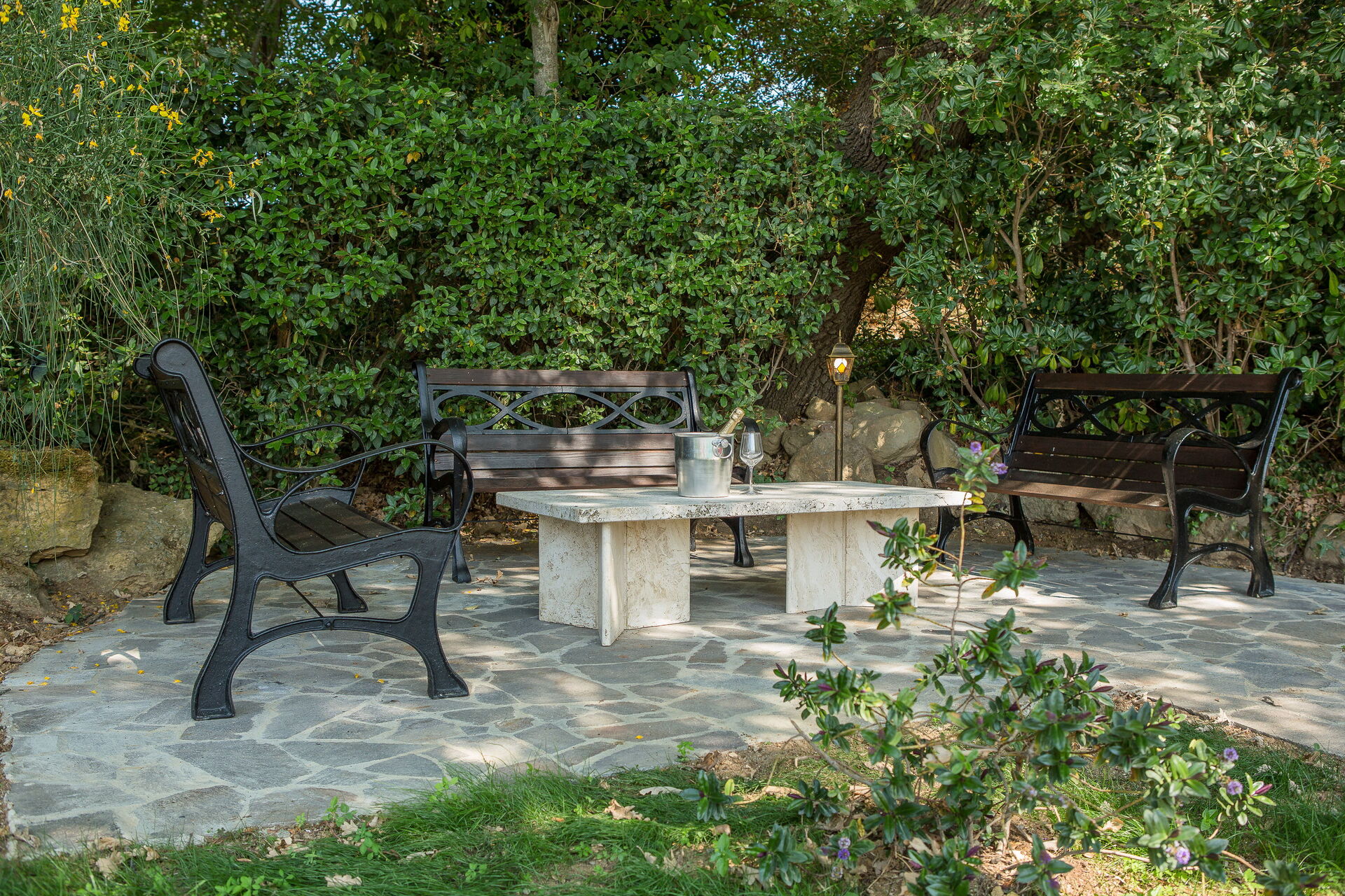 Naast de hoofdvilla en het bijgebouw is er nog een derde vrijstaand gebouw waar de beheerders wonen.