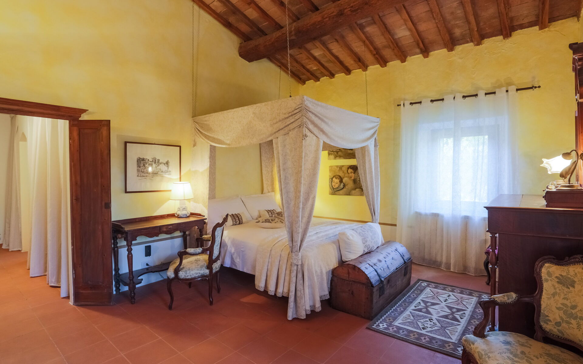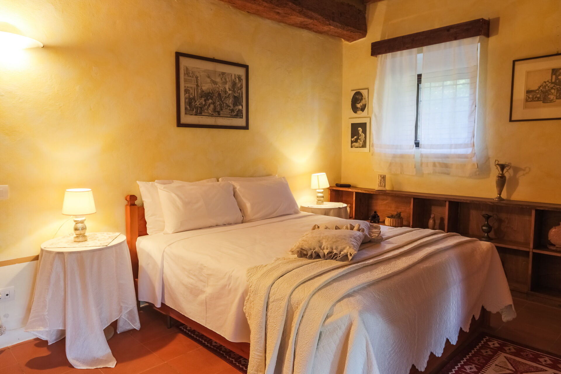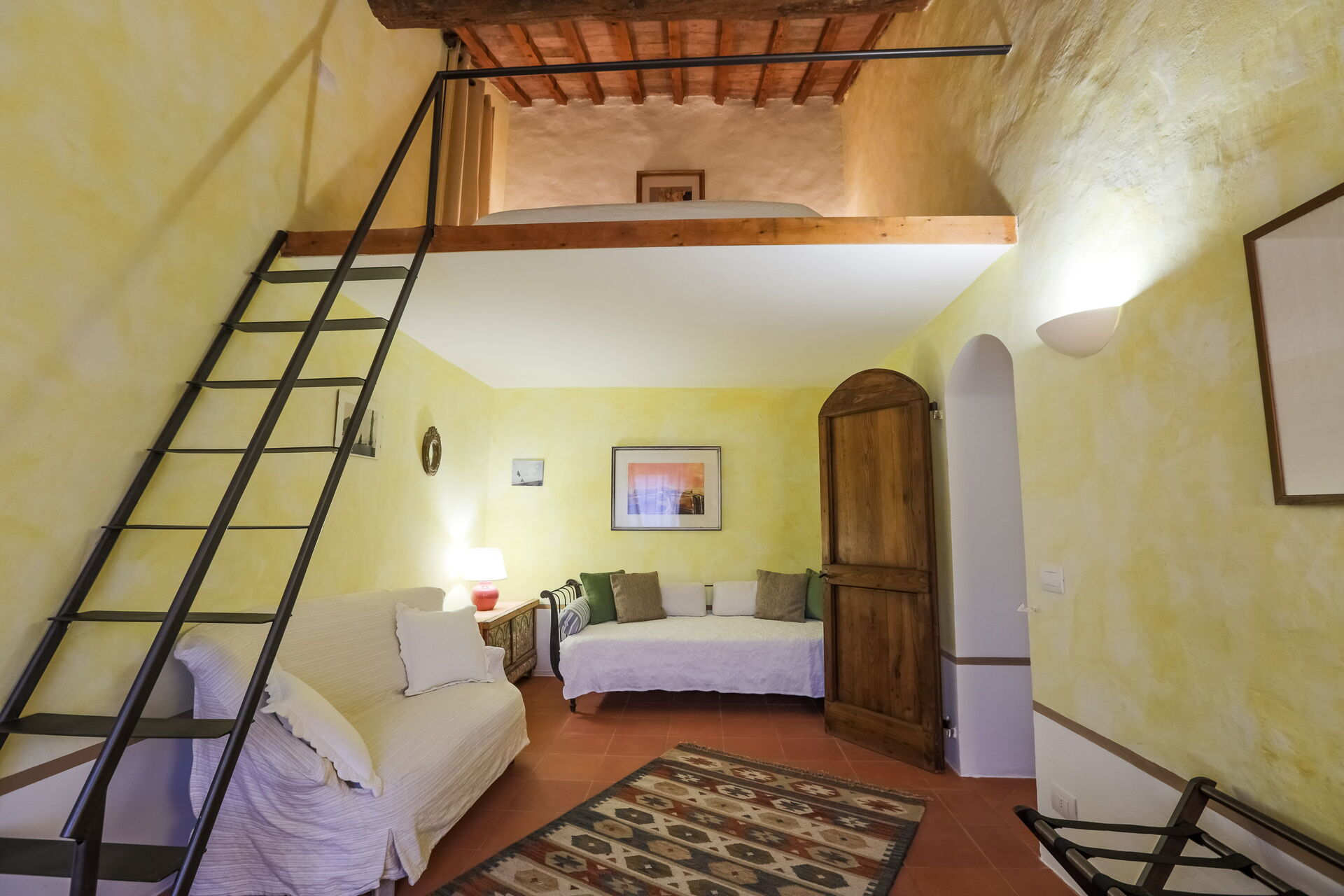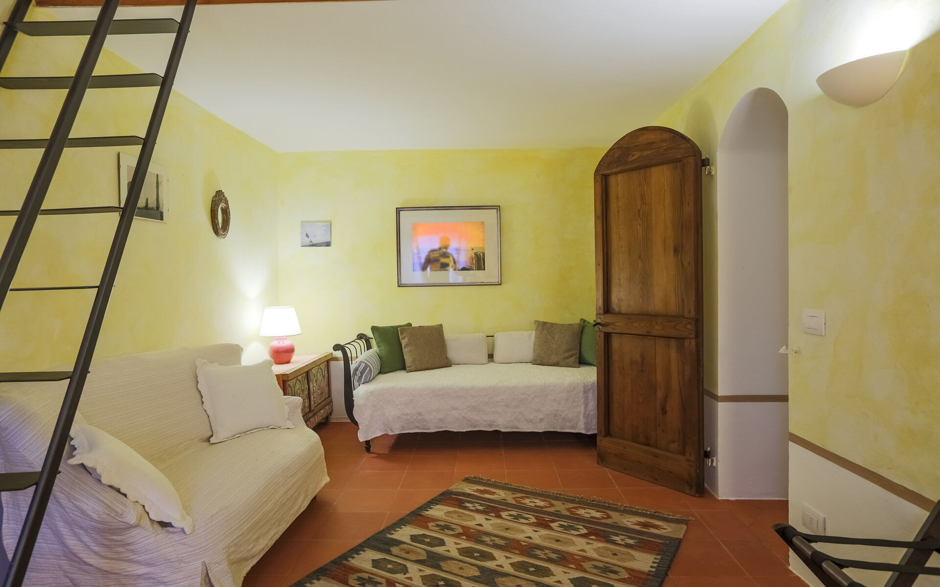 - Verdieping 1 (Afhankelijkheid B) - Onafhankelijke ingang vanuit de Hoofdvilla in de binnenplaats op de eerste verdieping, bestaande uit een woonkamer, een keuken, een slaapkamer en een badkamer.
