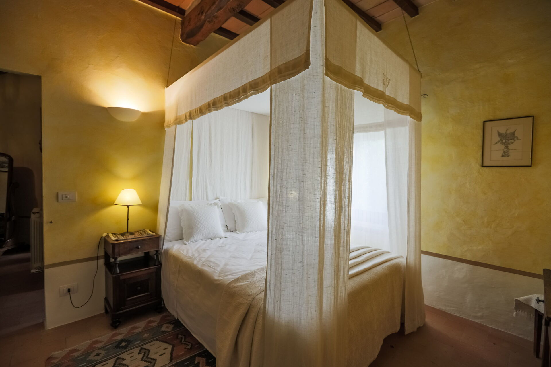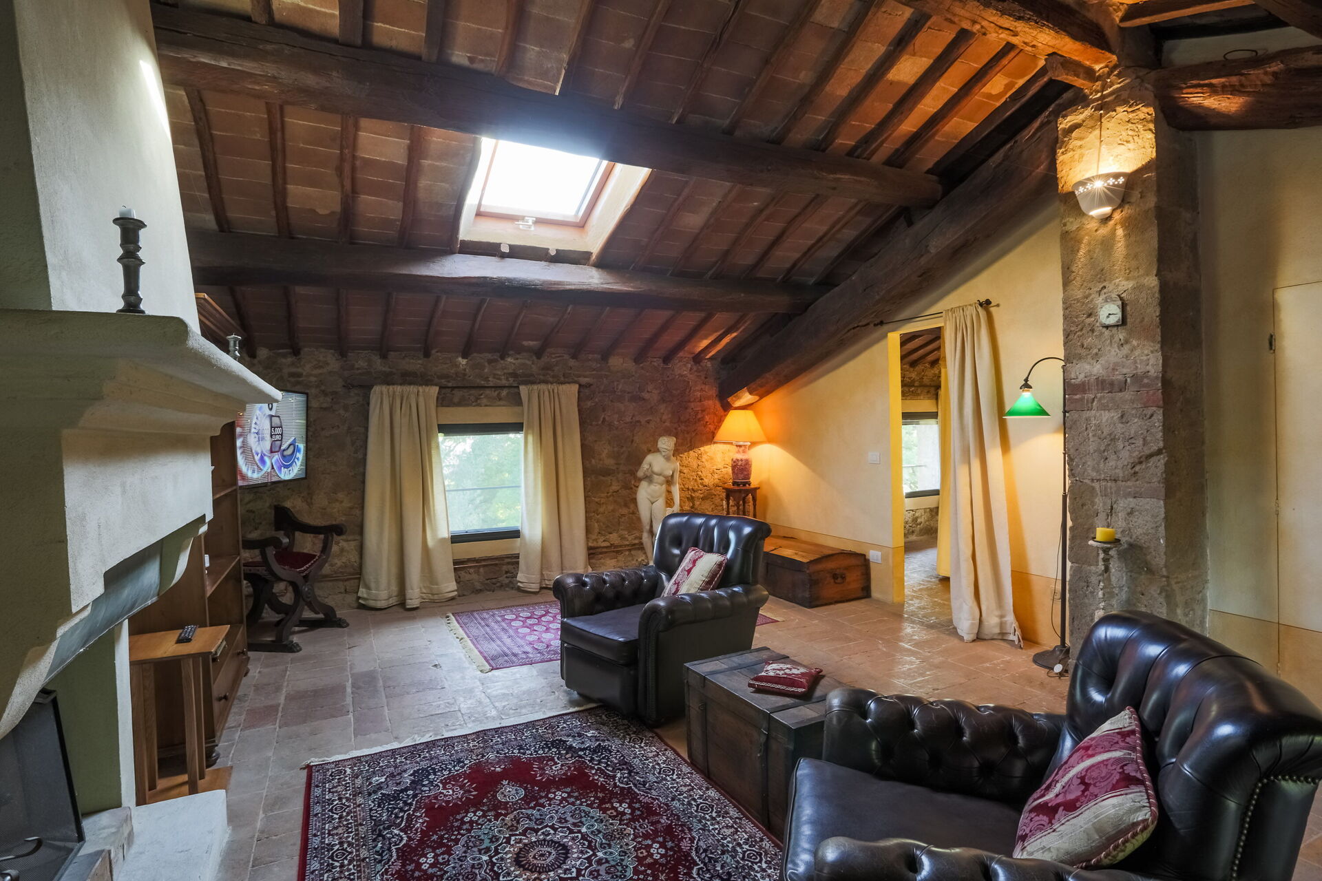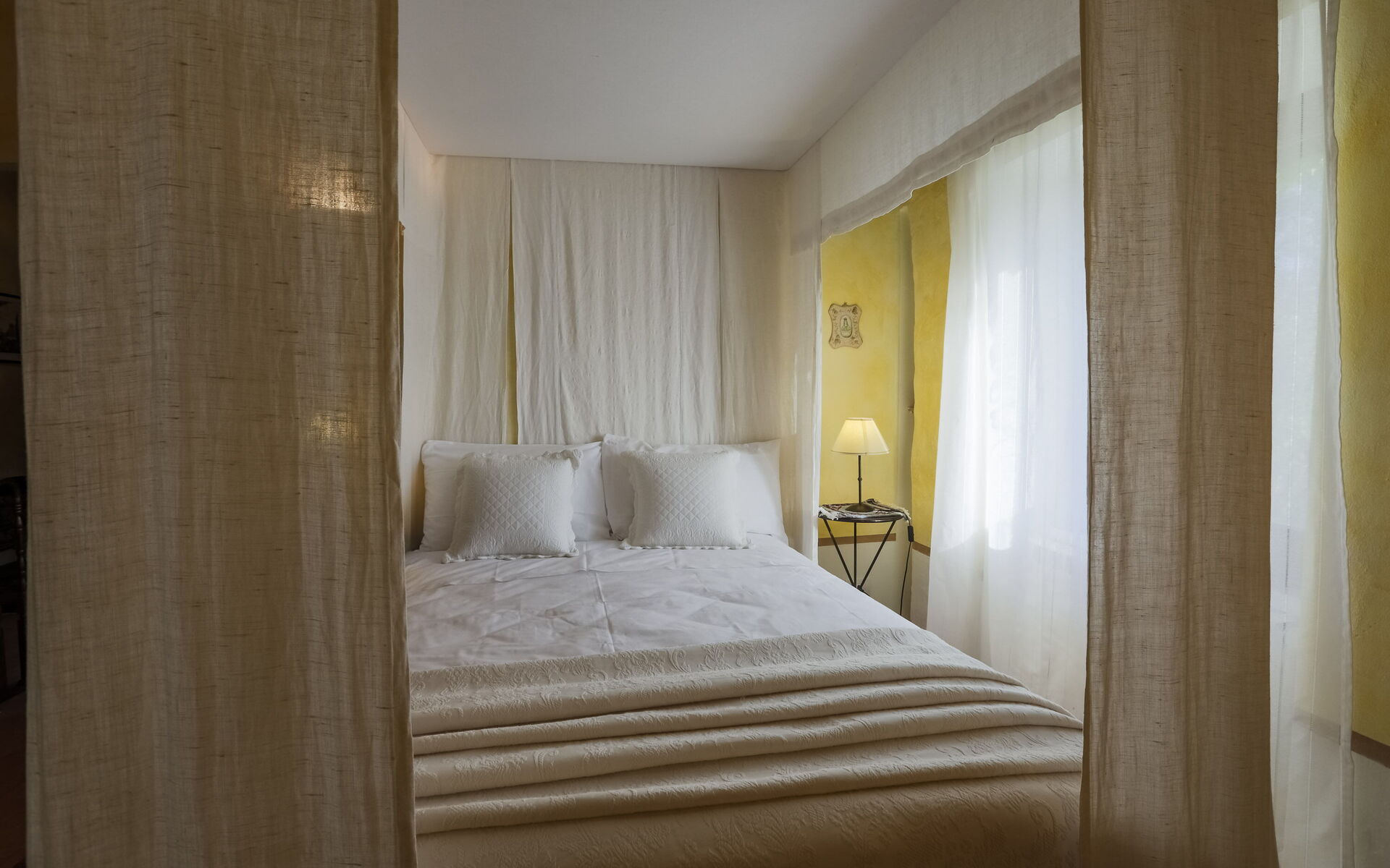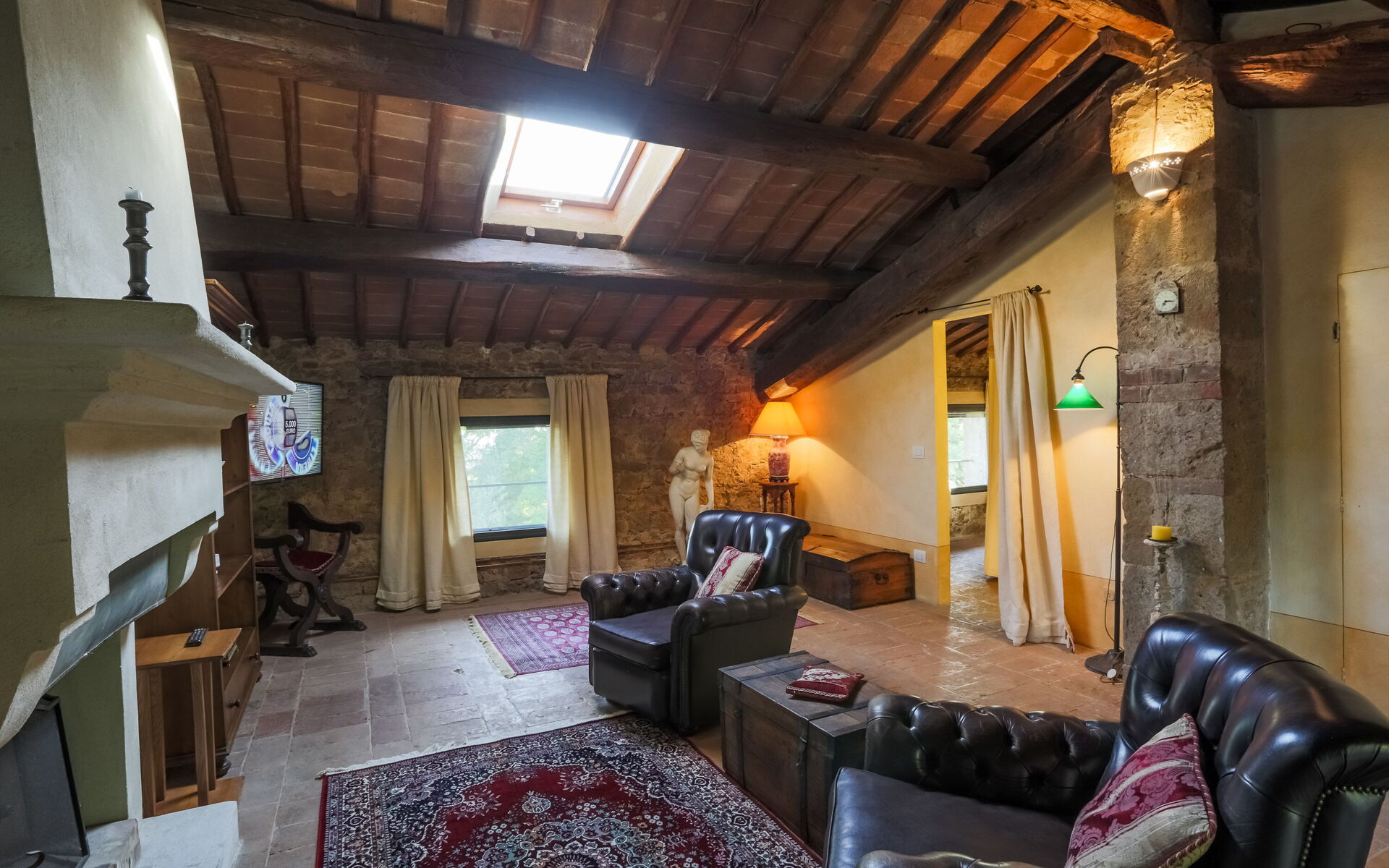 - Verdieping 1 (Afhankelijkheid B) - Onafhankelijke ingang vanuit de Hoofdvilla in de binnenplaats op de eerste verdieping, bestaande uit een woonkamer, een keuken, een slaapkamer en een badkamer.