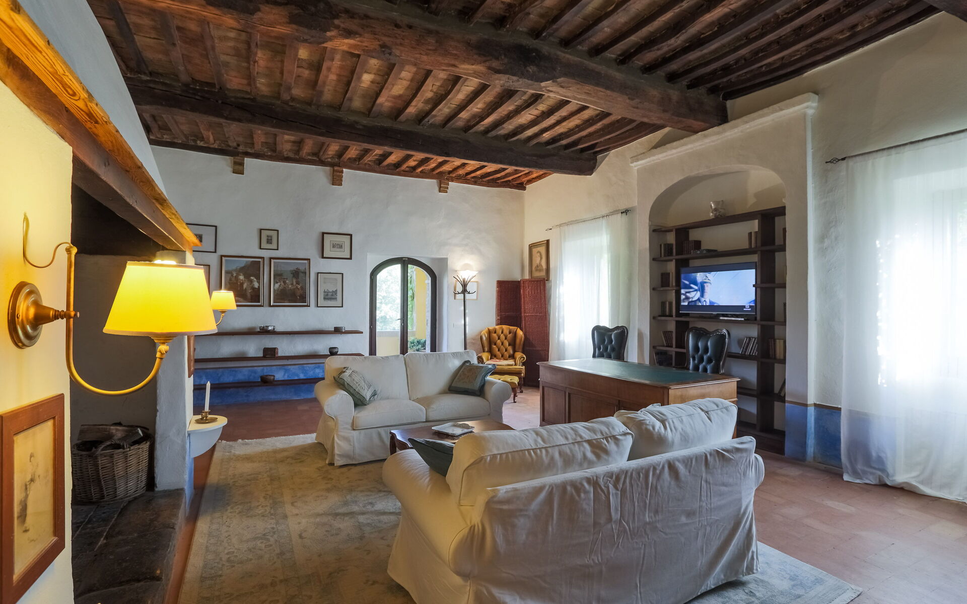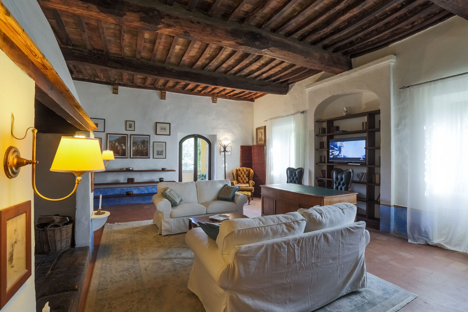 Woonkamer (40 m2): bank, bureau, WIFI internet, airconditioning, uitgang naar het terras.