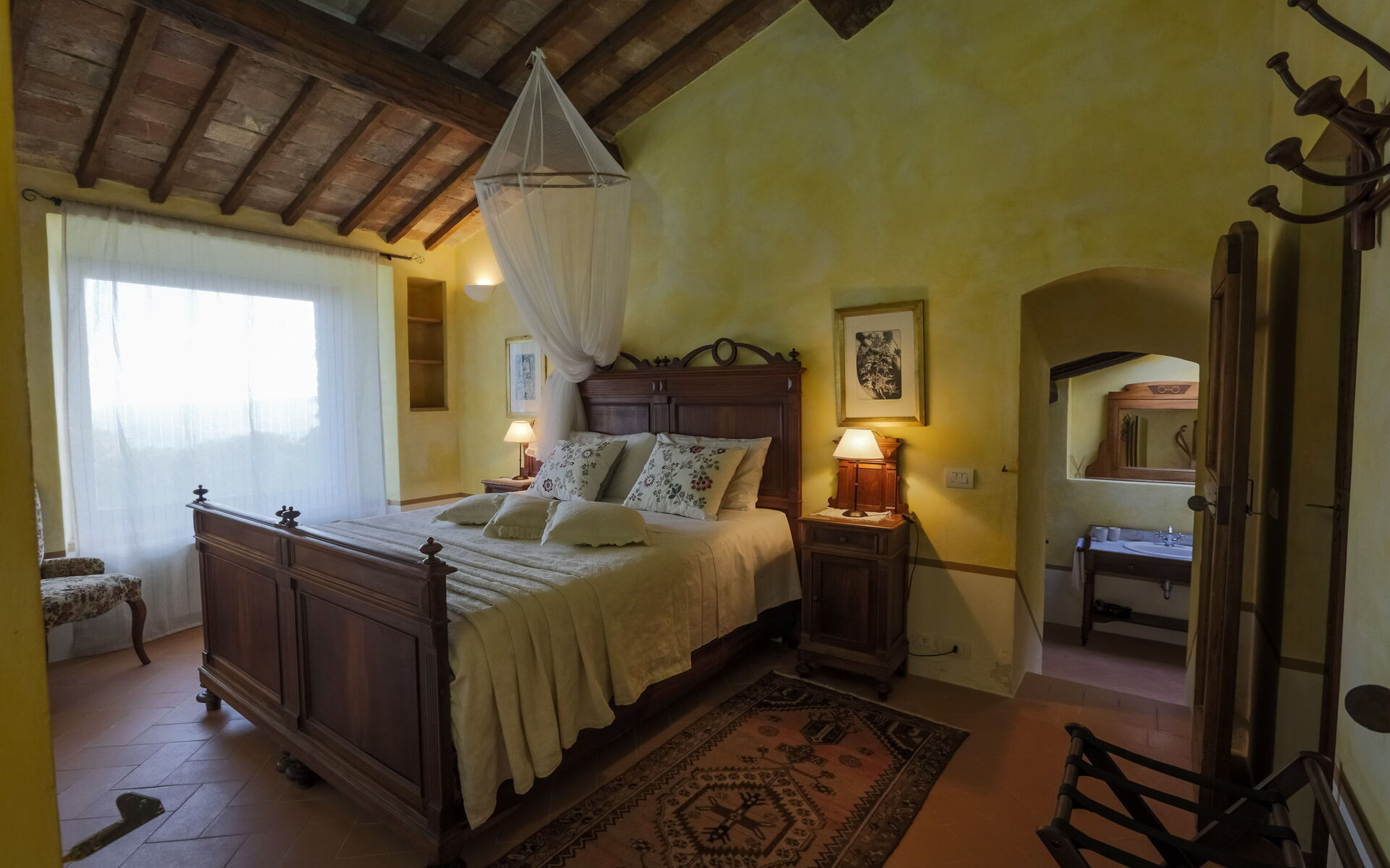Slaapkamer met badkamer (25 m2): tweepersoonsbed (breedte: 160m, lengte: 190m), WIFI internet, airconditioning, bureau, wastafel, toilet , bidet, douche, haardroger.
