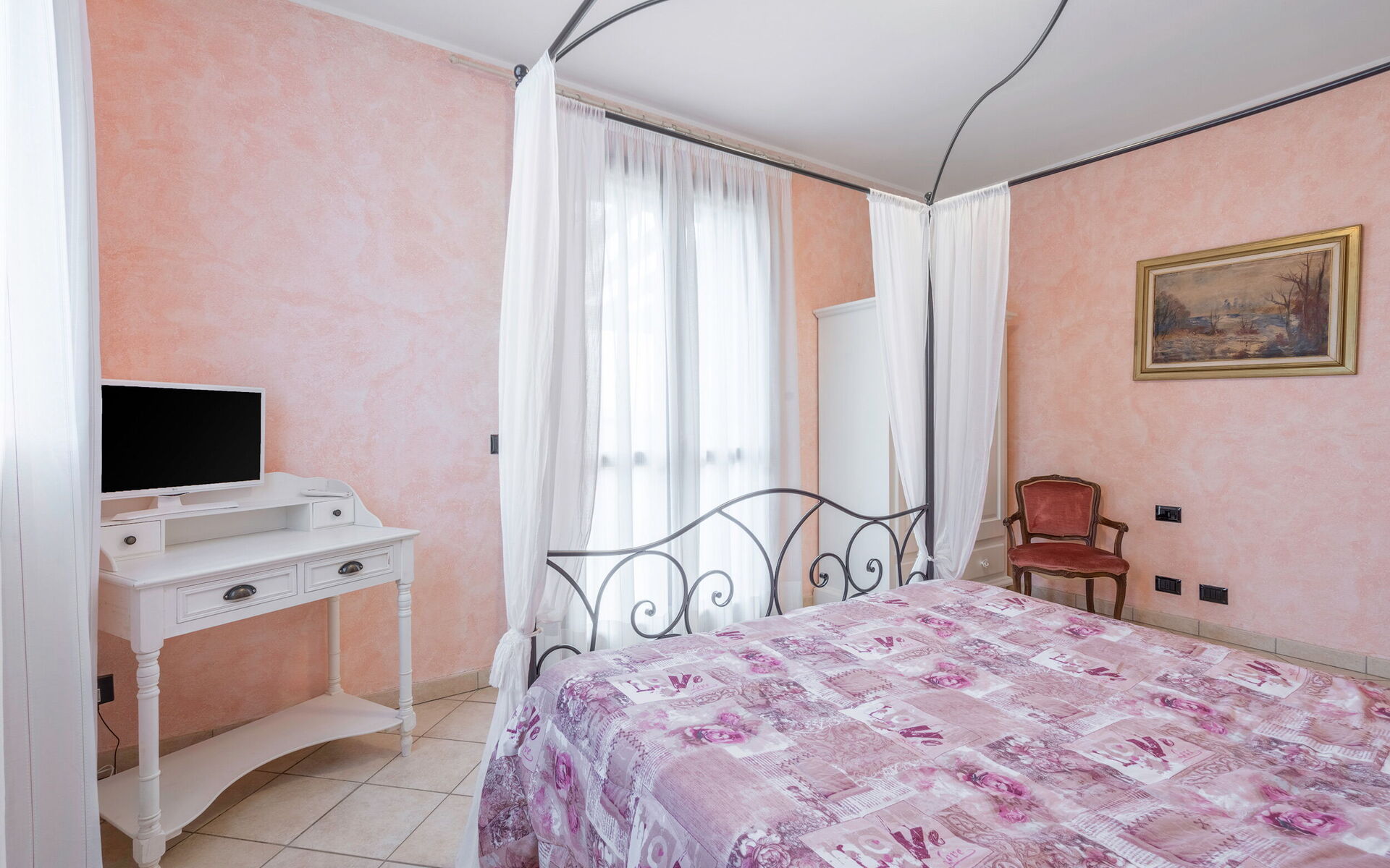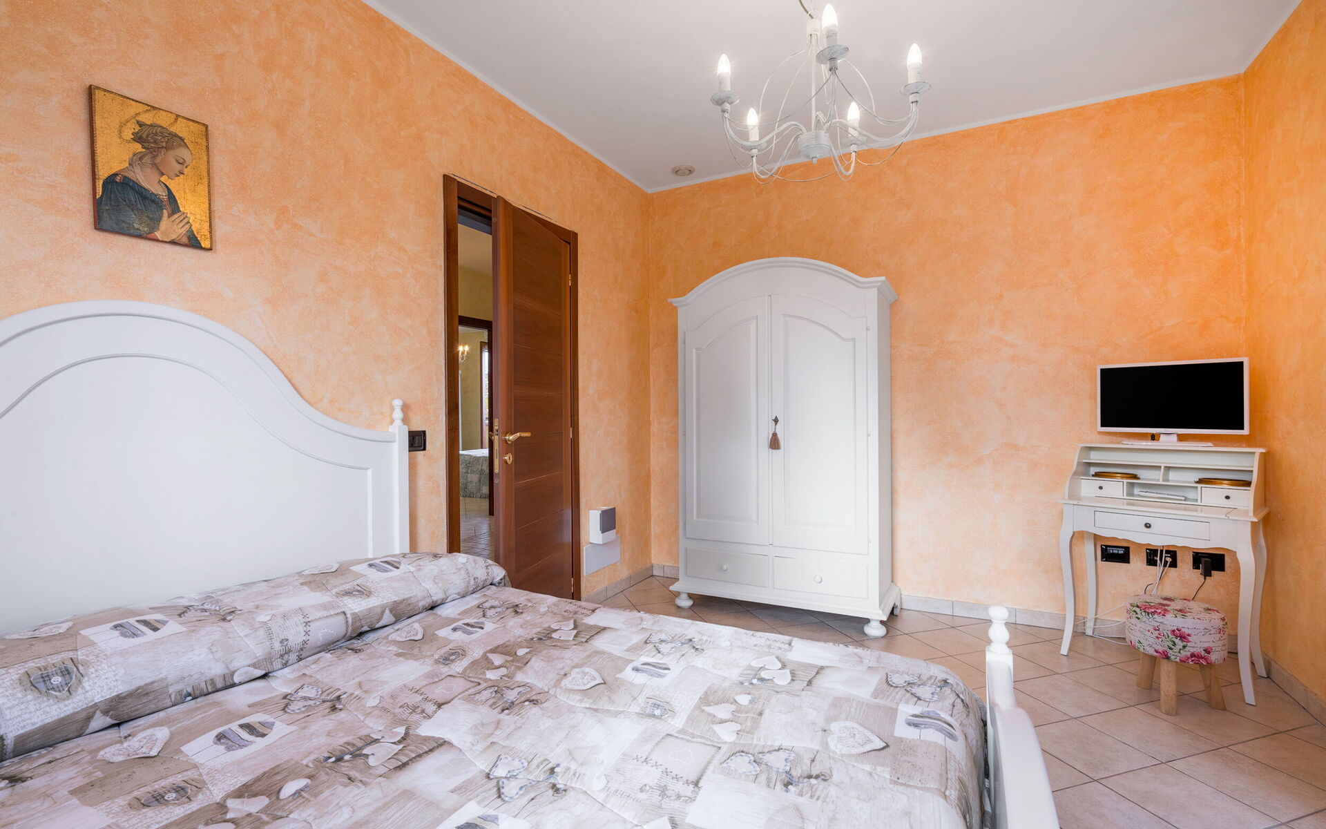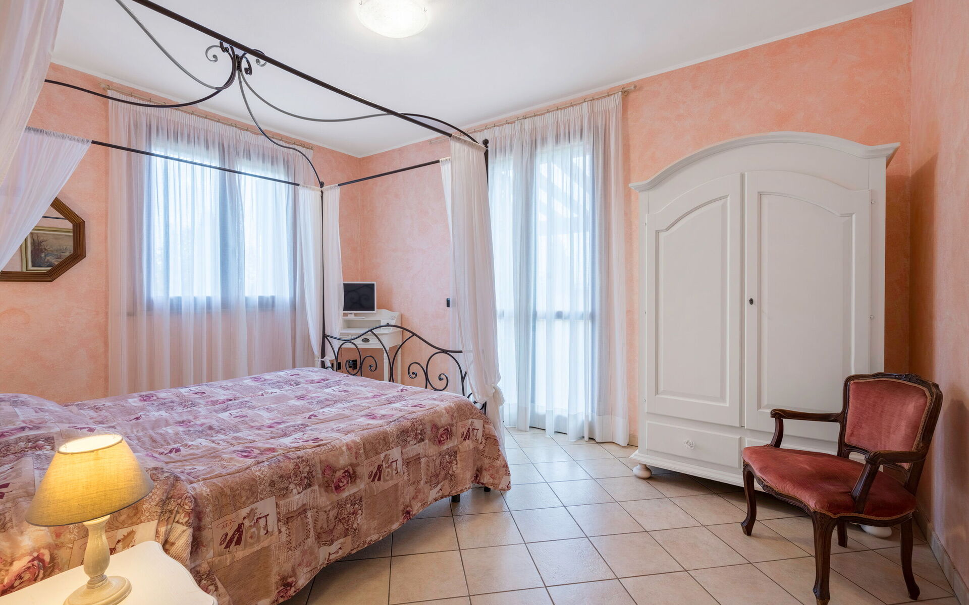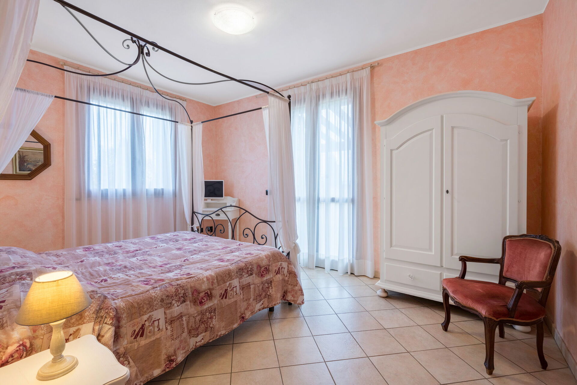 Slaapkamer: tweepersoonsbed, WIFI internet, satelliet tv, uitgang naar de tuin.