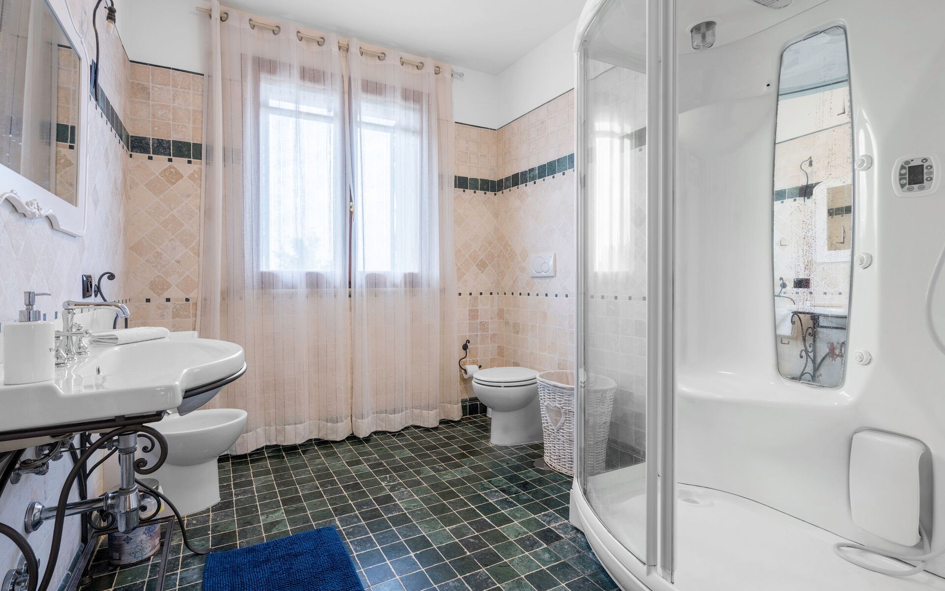 Badkamer: wastafel, toilet , bidet, douche, haardroger, wasmachine, WIFI internet.