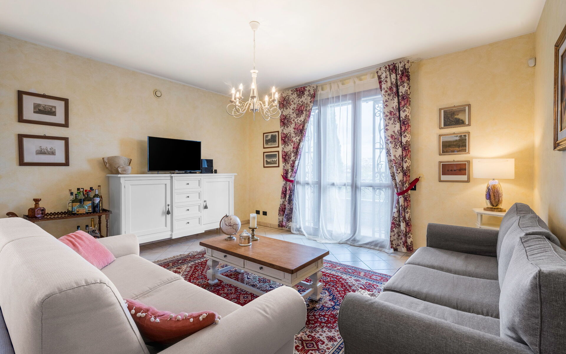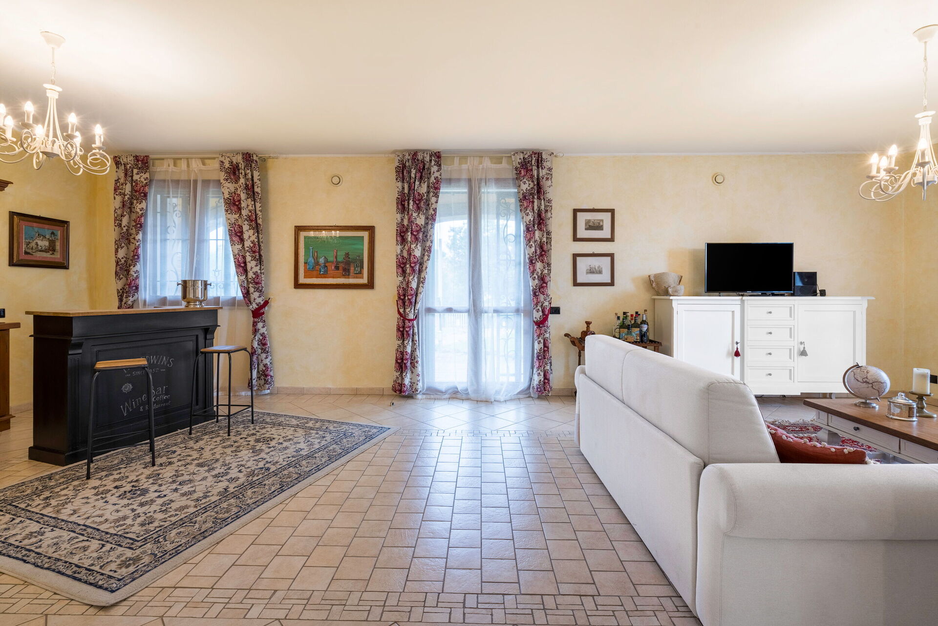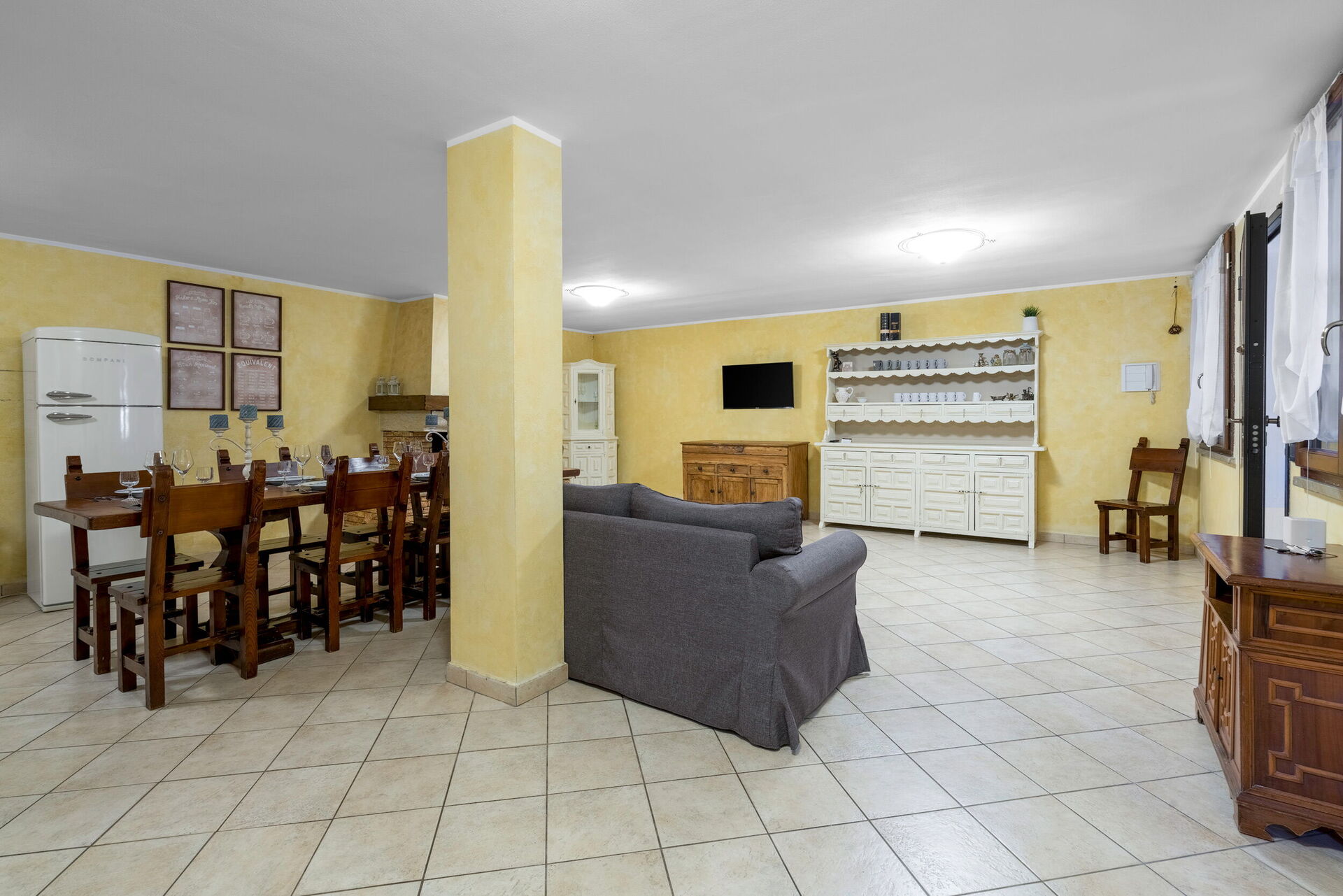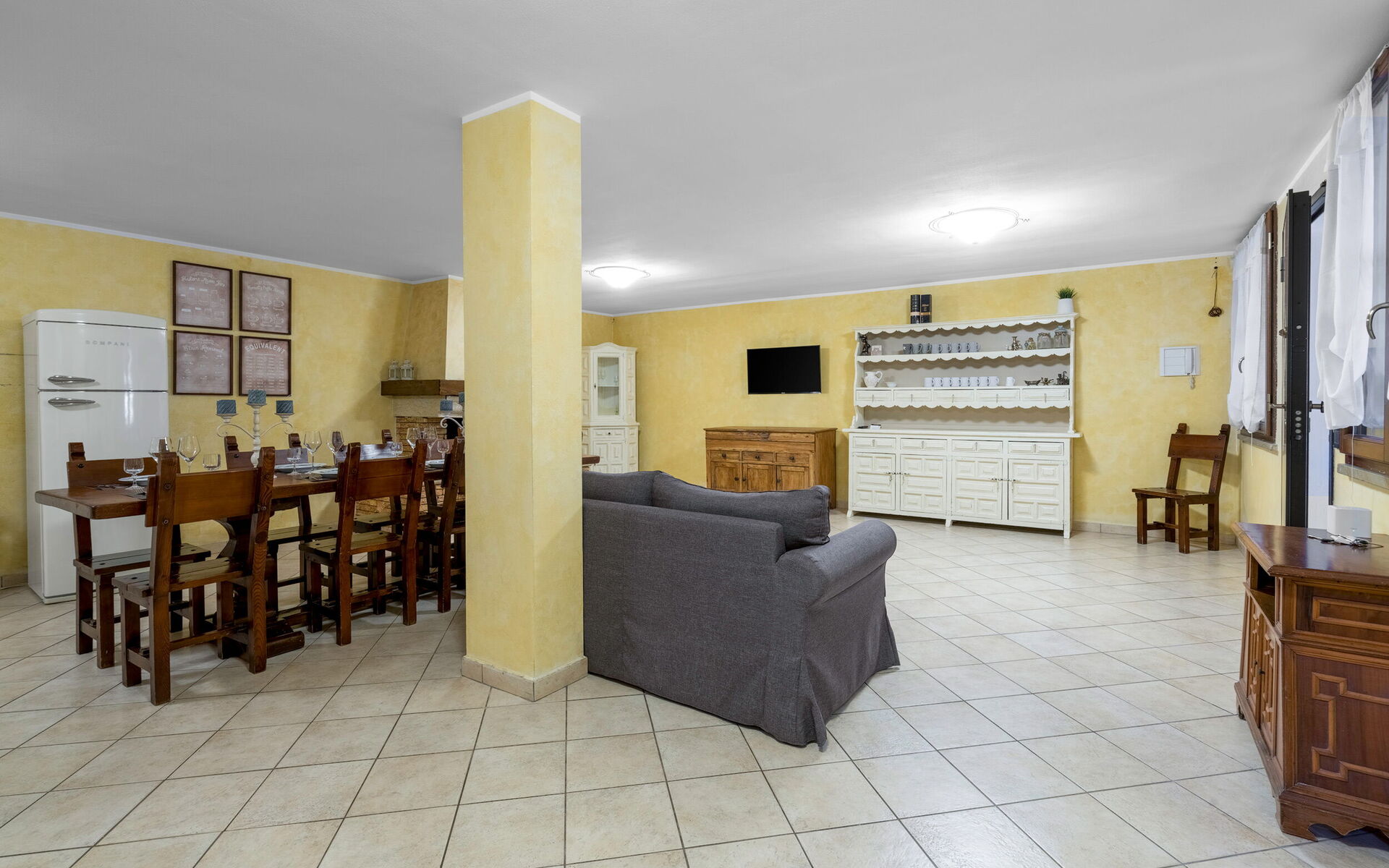 Keuken – woonkamer: goed uitgeruste keuken, eettafel, vaatwasser, ijskast, diepvriezer, magnetron, kookplaat, oven, italiaans koffiezetapparaat, bank, WIFI internet, tv.