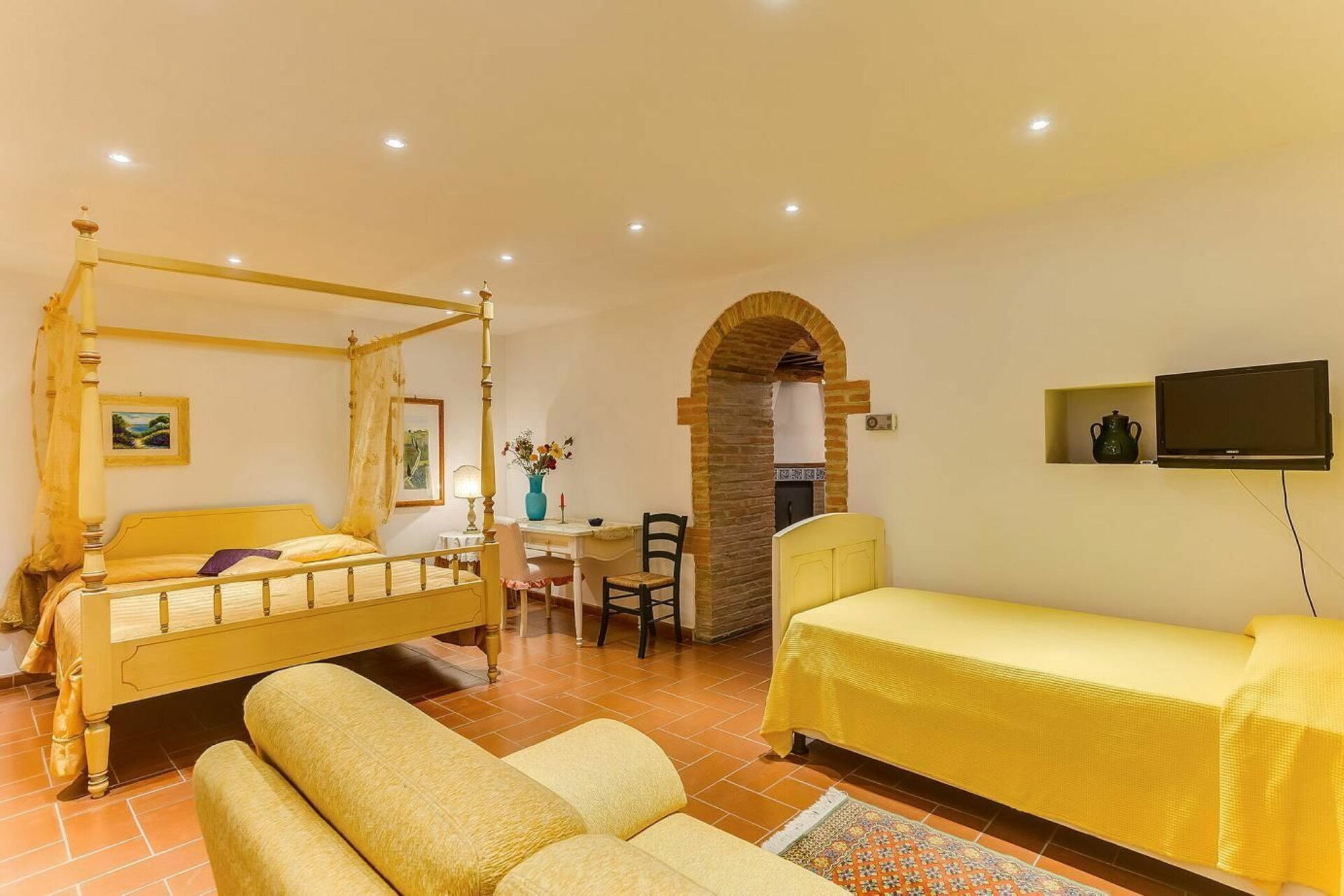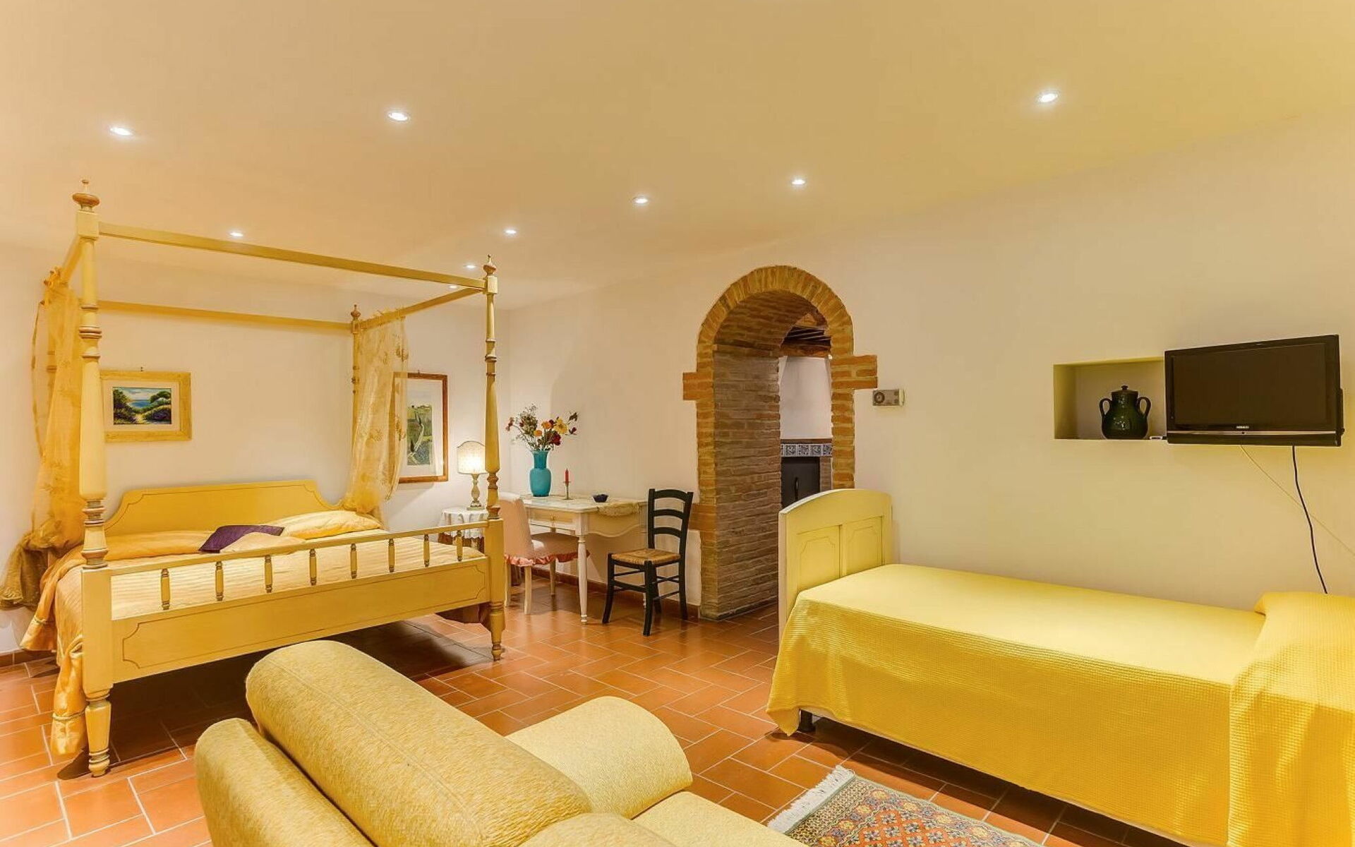Slaapkamer: tweepersoonsbed, eenpersoonsbed, WIFI internet, airconditioning, tv, bank (personen: 2), bureau.